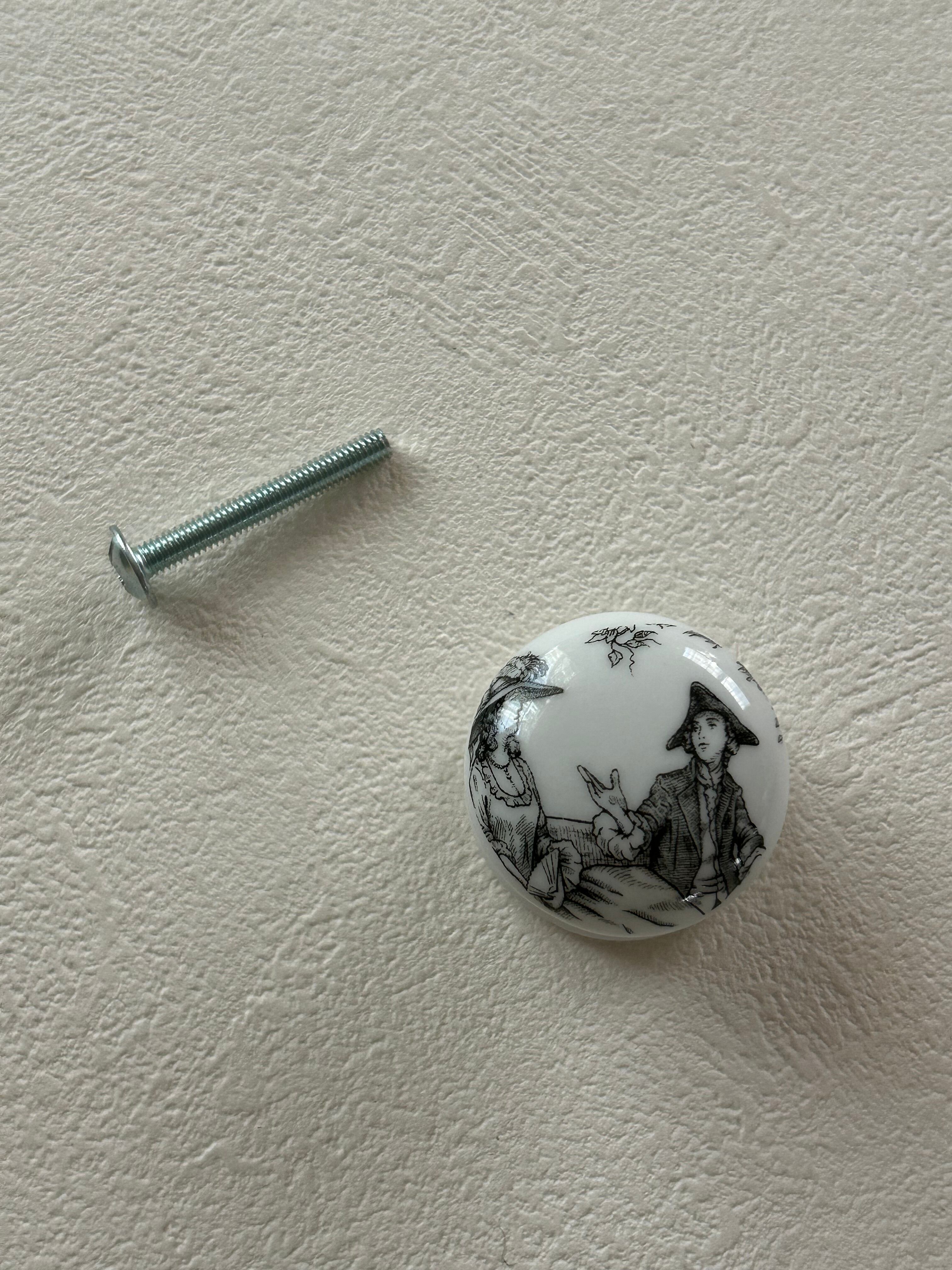 フランス 陶器製の取っ手 つまみ トワルドジュイ ブラック パーツ ハンドメイド リメイク カルトナージュ