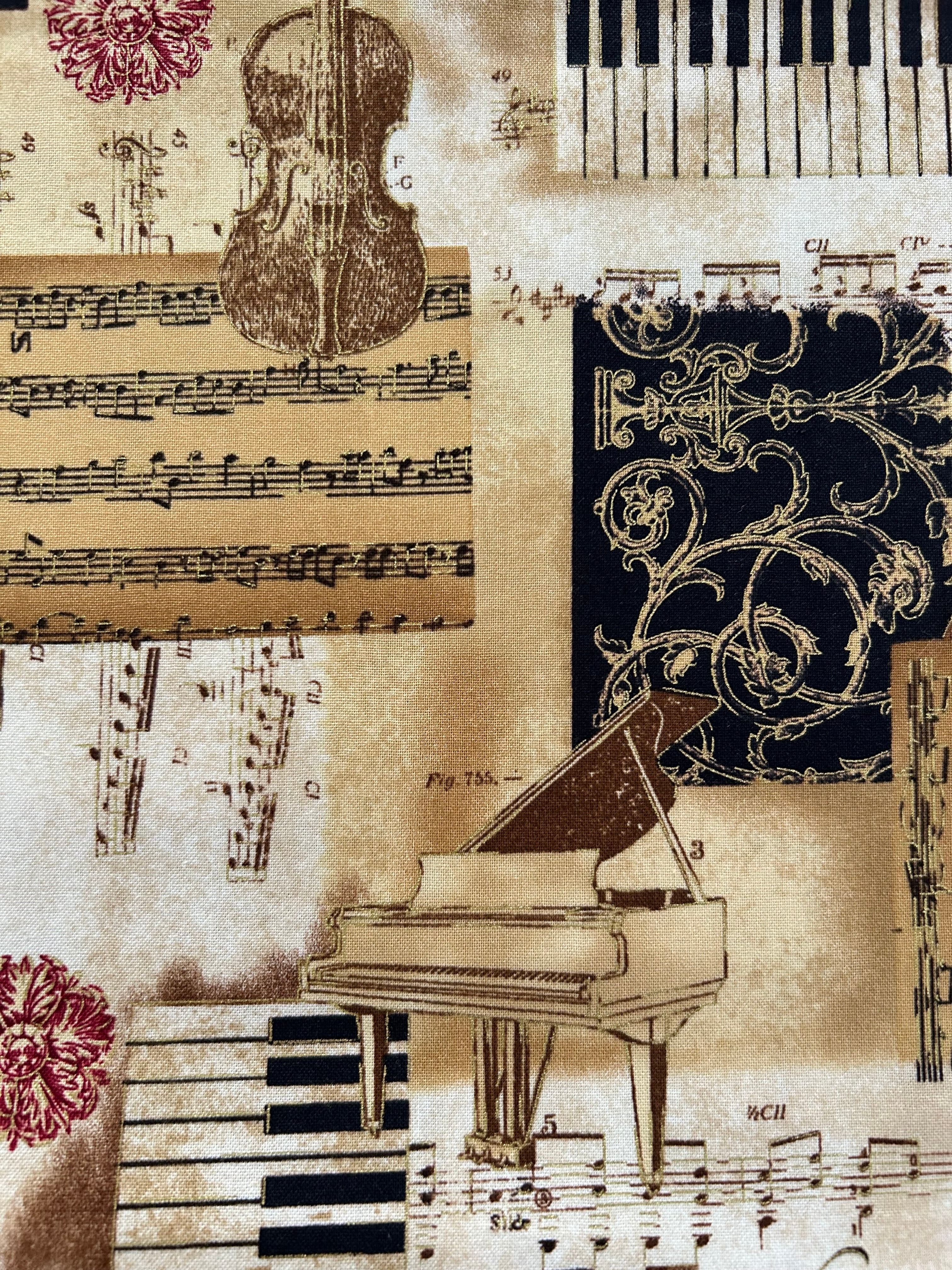 一面に譜面や楽器のデザインがプリントされたコットンファブリックになります。