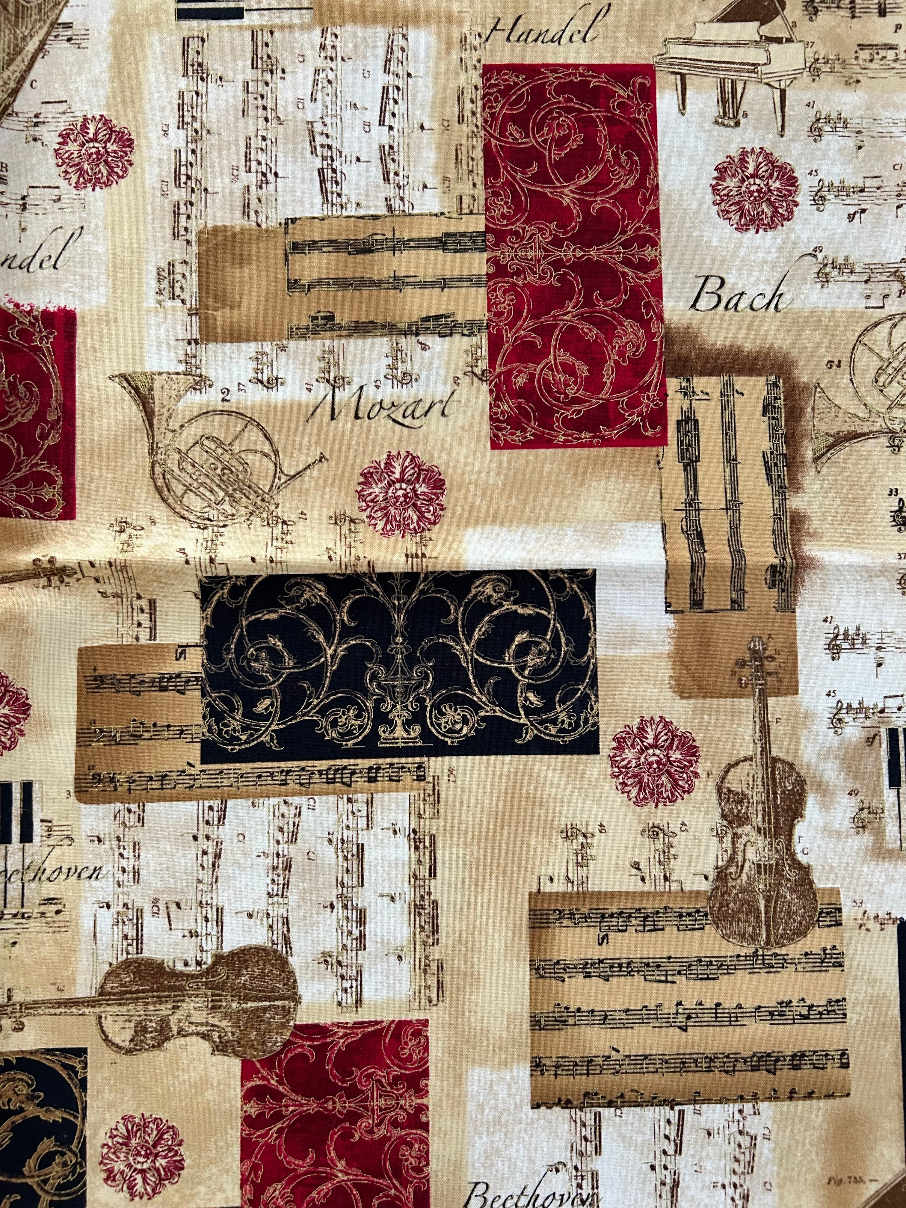 輸入コットンファブリック 譜面柄 楽器柄 クラシカル All That Jazz ロバートカフマン USAファブリック カルトナージュ