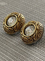 中央にガラスのカボション、周囲をゴールドの彫り模様がクラシカルなデザイン。
