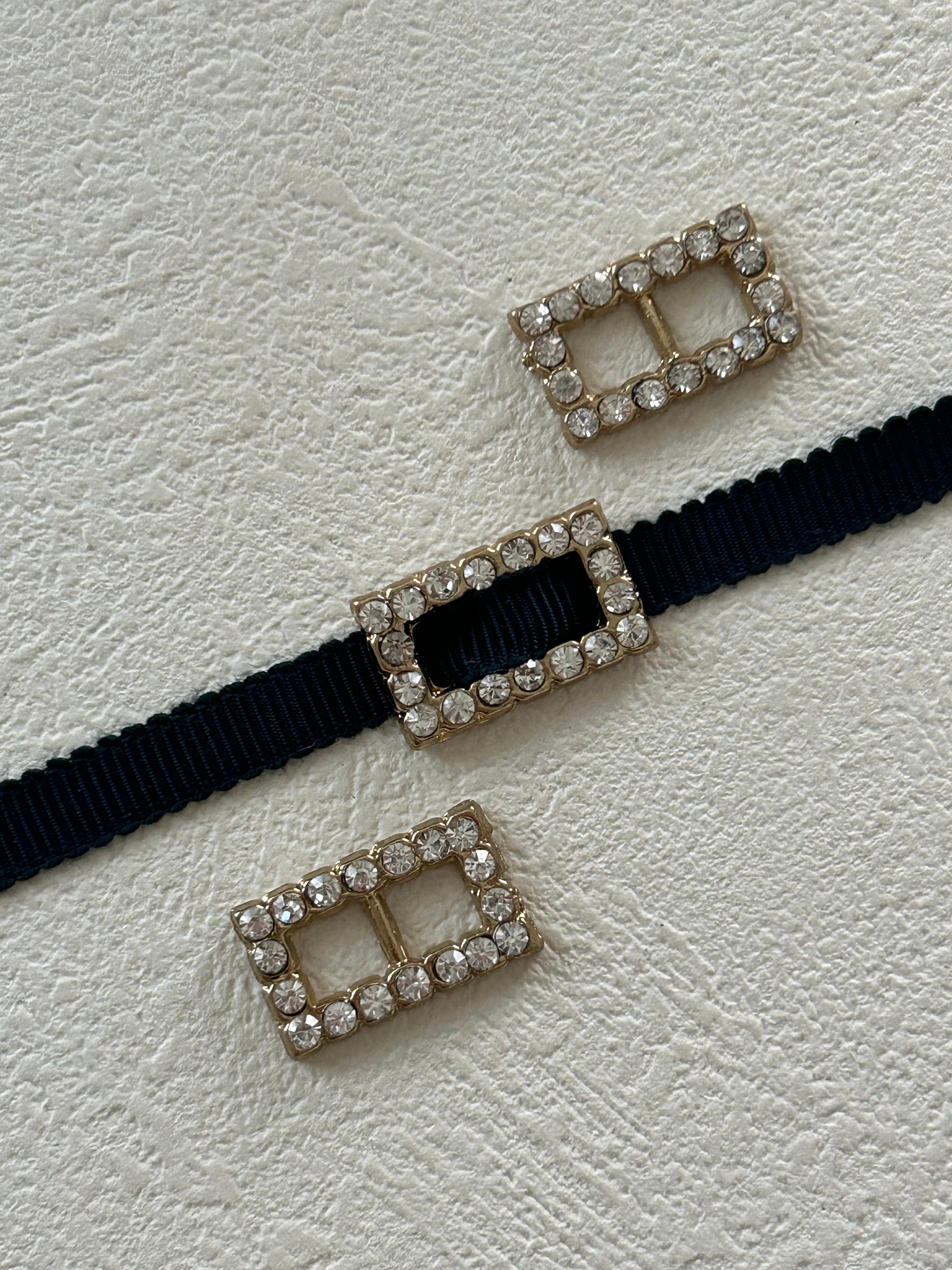 輸入デザインパーツ バックルパーツ レクタングル ゴールド×ストーン 12mm×20mm カルトナージュ デコレーション材