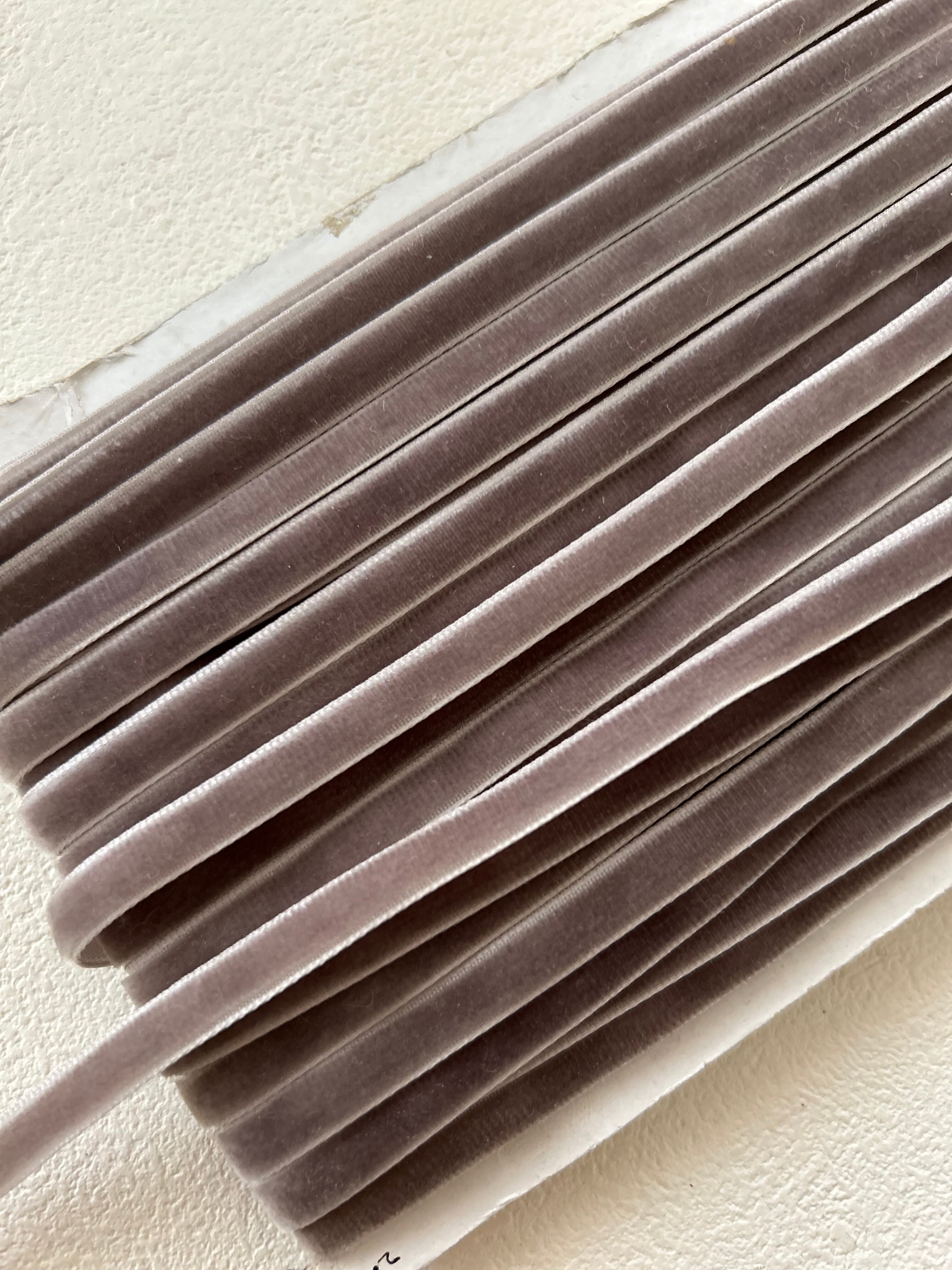 輸入デザインリボン ベルベットリボン 片面 グレージュ 7mm 100cm /カット カルトナージュ デコレーション材