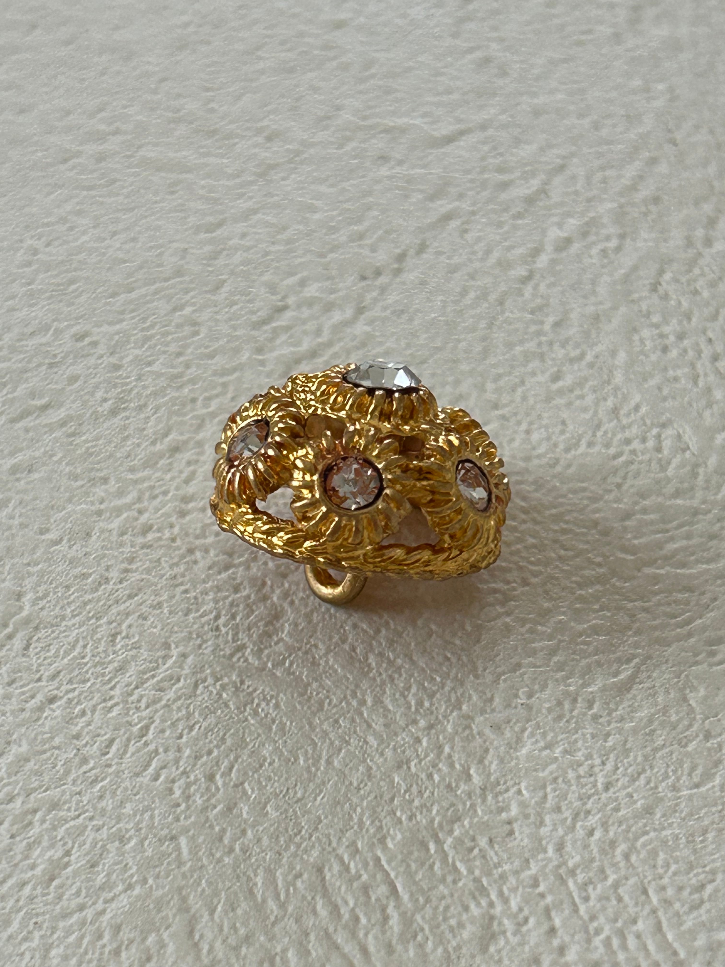 マットゴールドのメタルの台座に7粒のストーンがエレガントで美しい輝き。