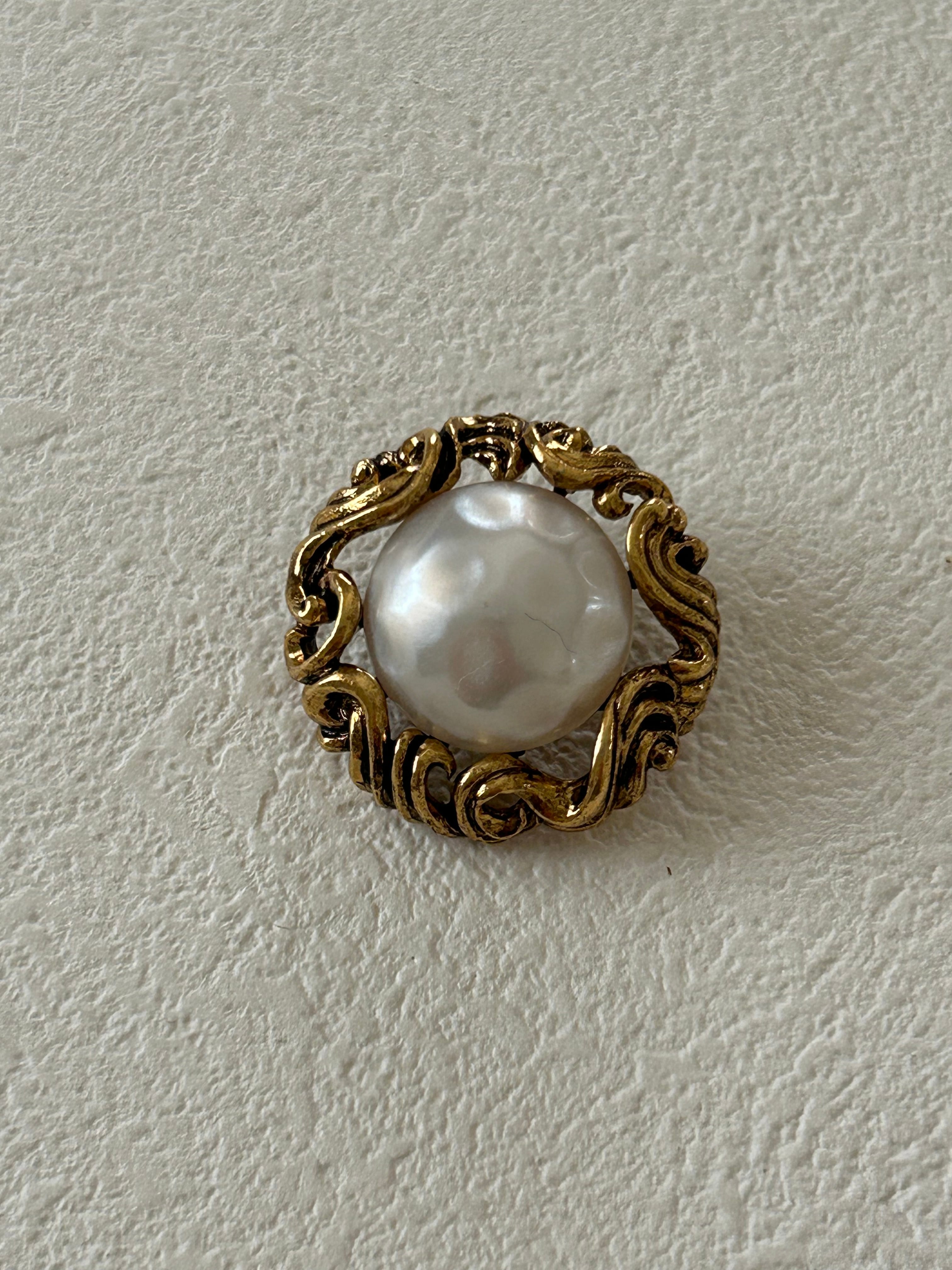 中央にパール調のカボション。ゴージャスなゴールドの透かしの台座