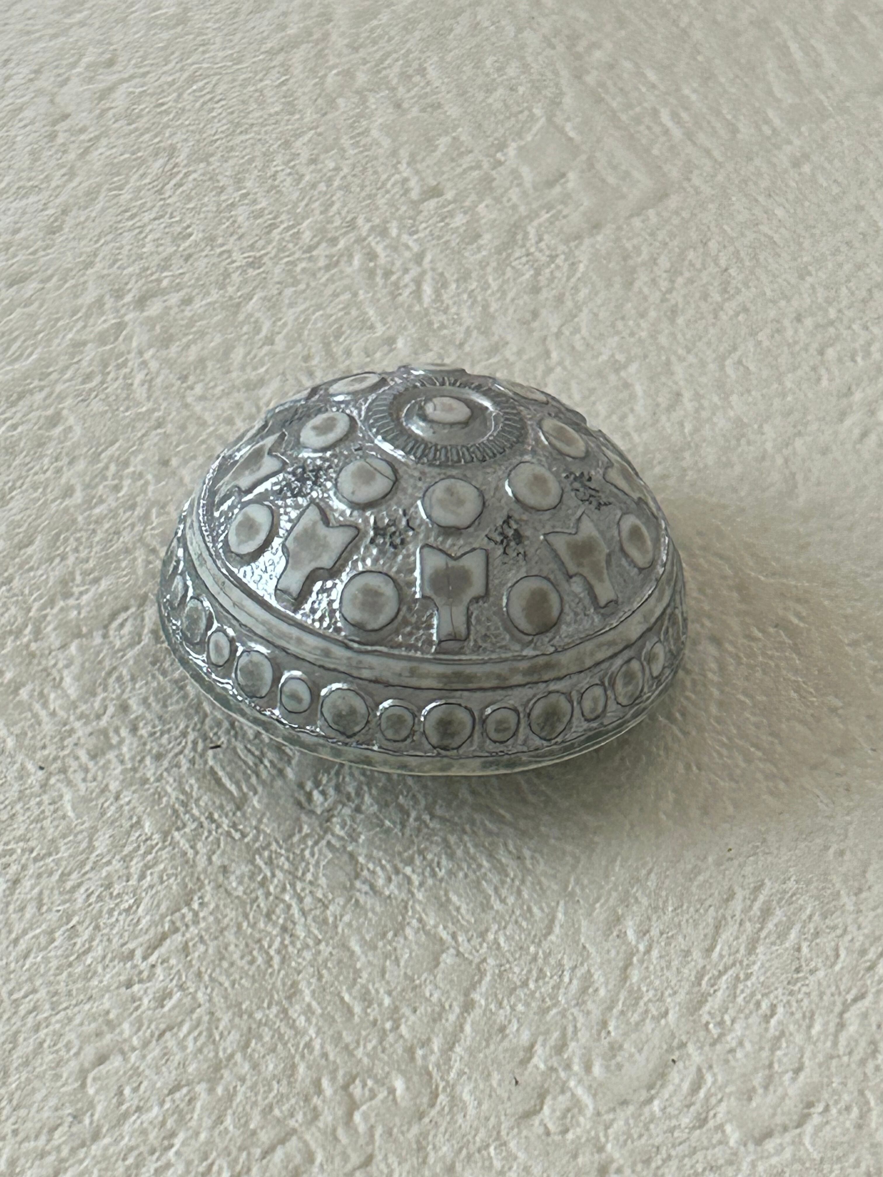 表面に個性的なデザイン、ドーム型のヴィンテージボタンです。
