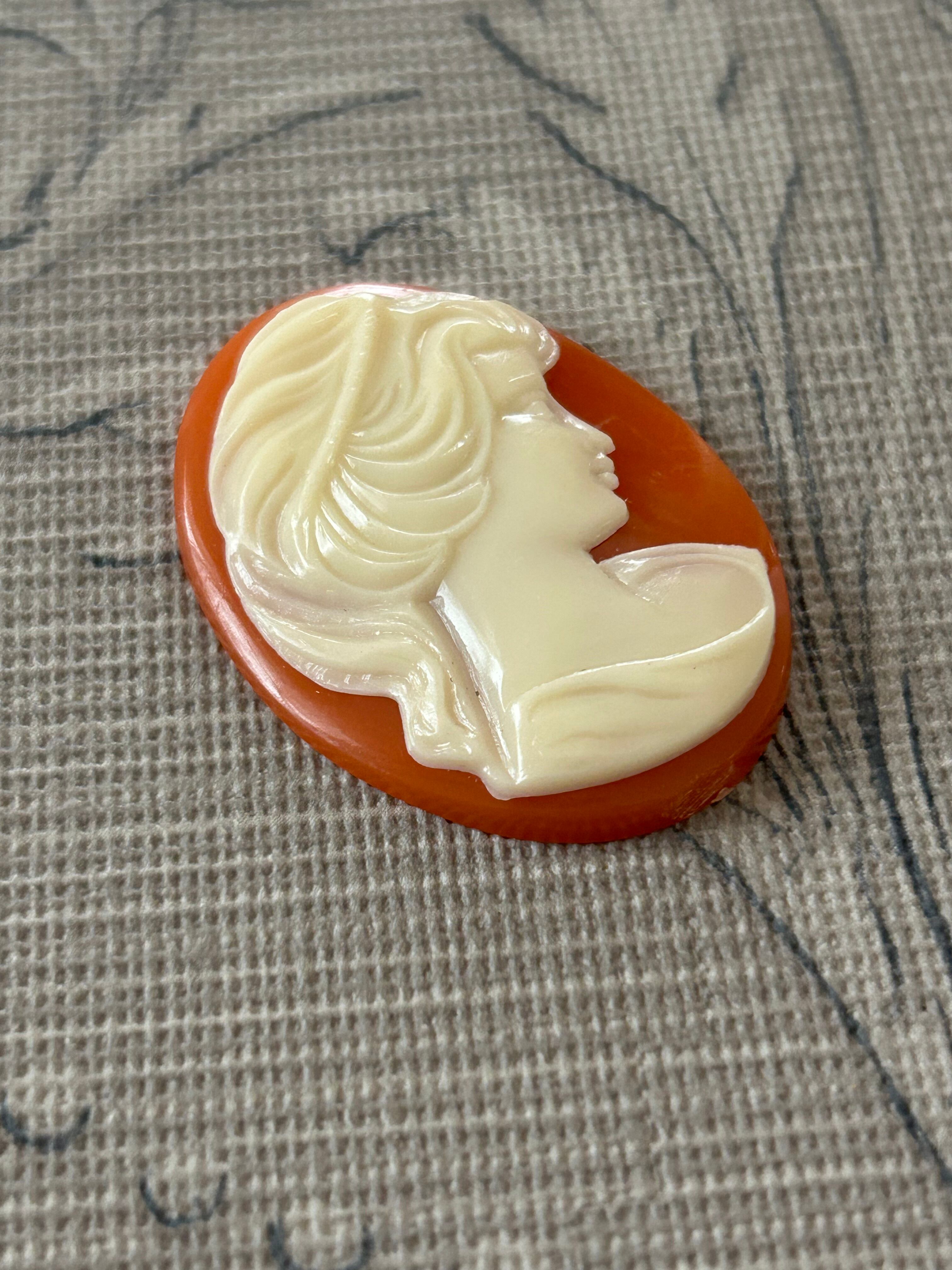ドイツVintageカメオパーツ 女性の横顔 40mm カルトナージュ アクセサリーパーツ デコレーション材