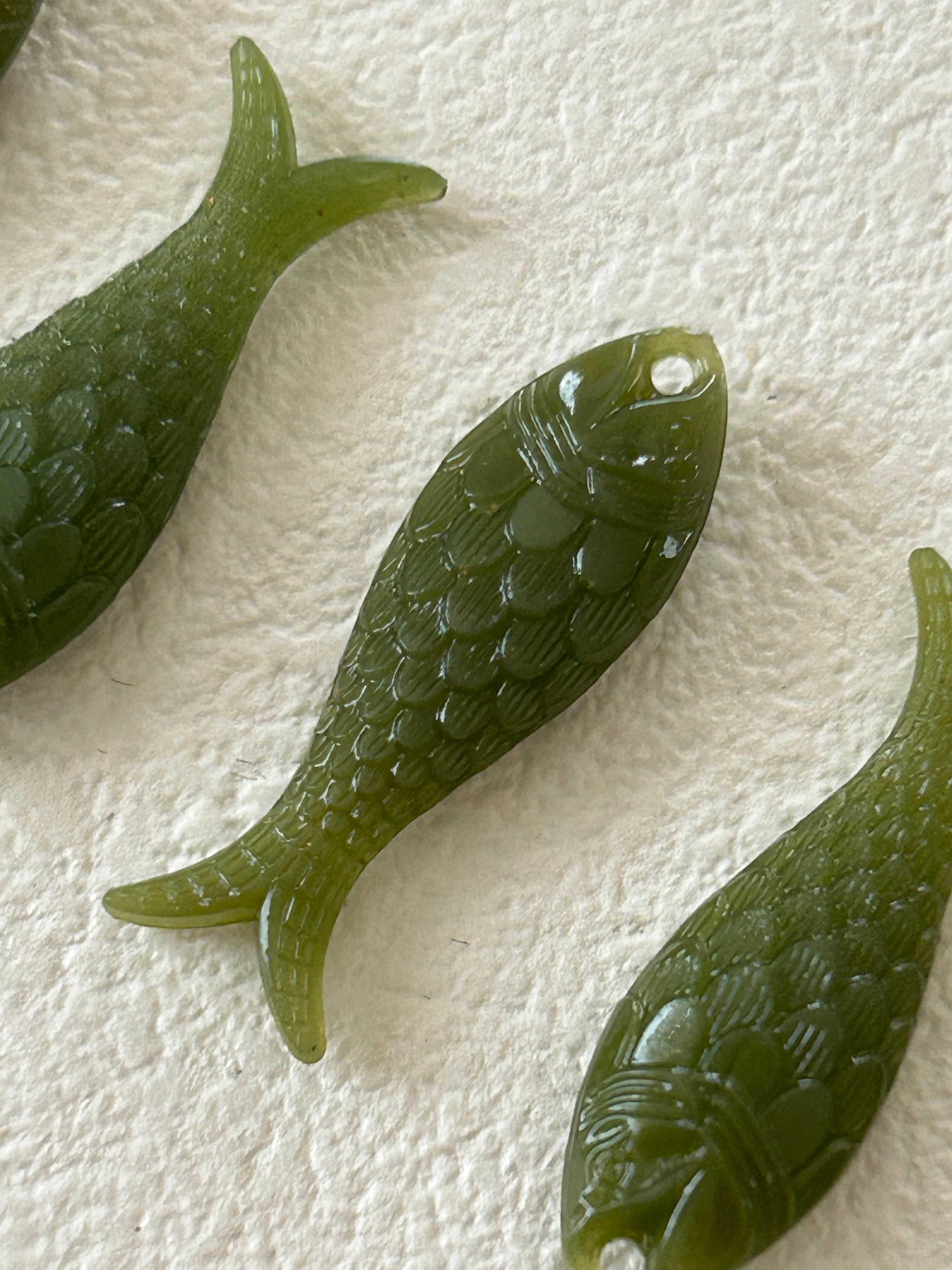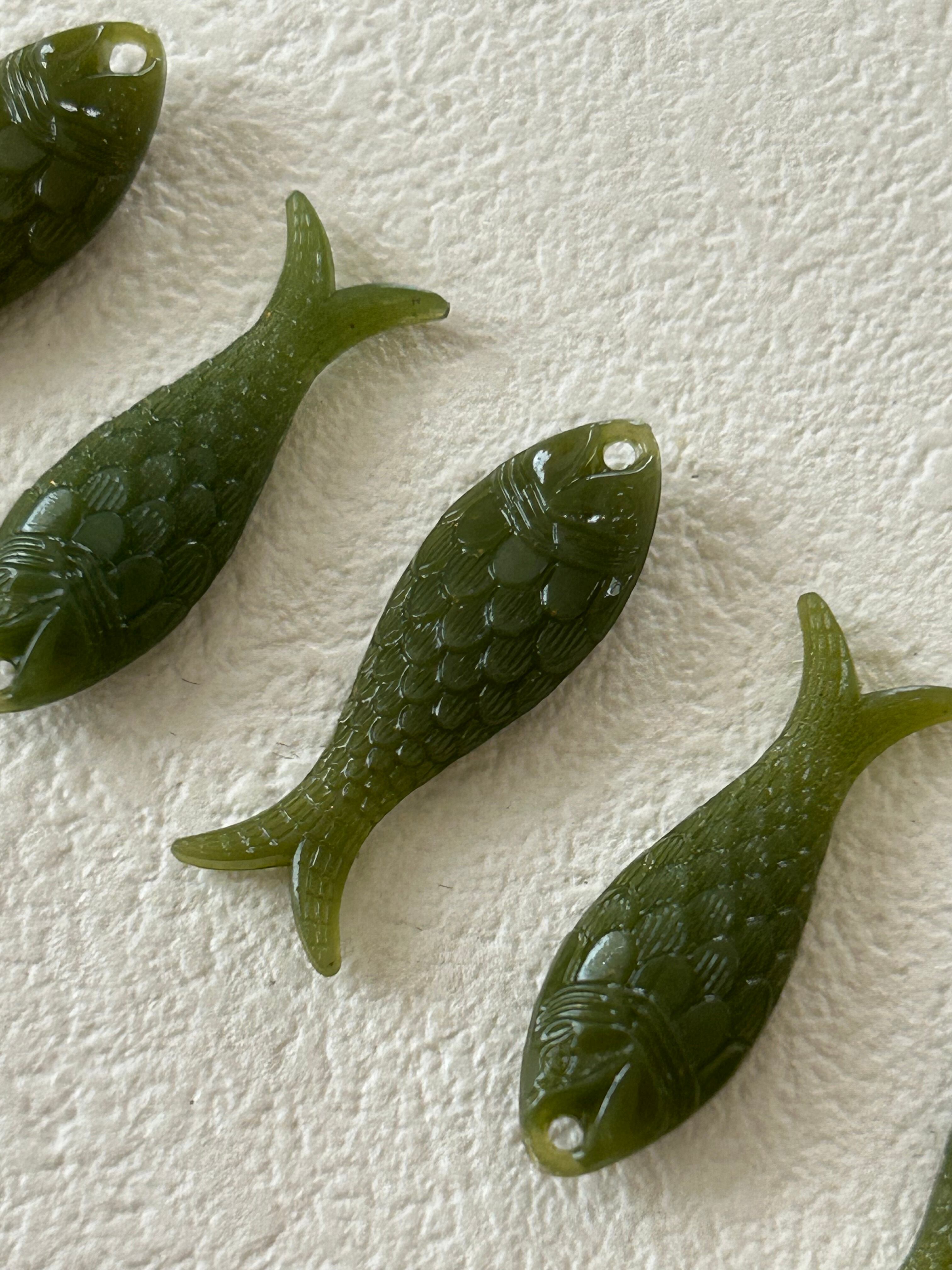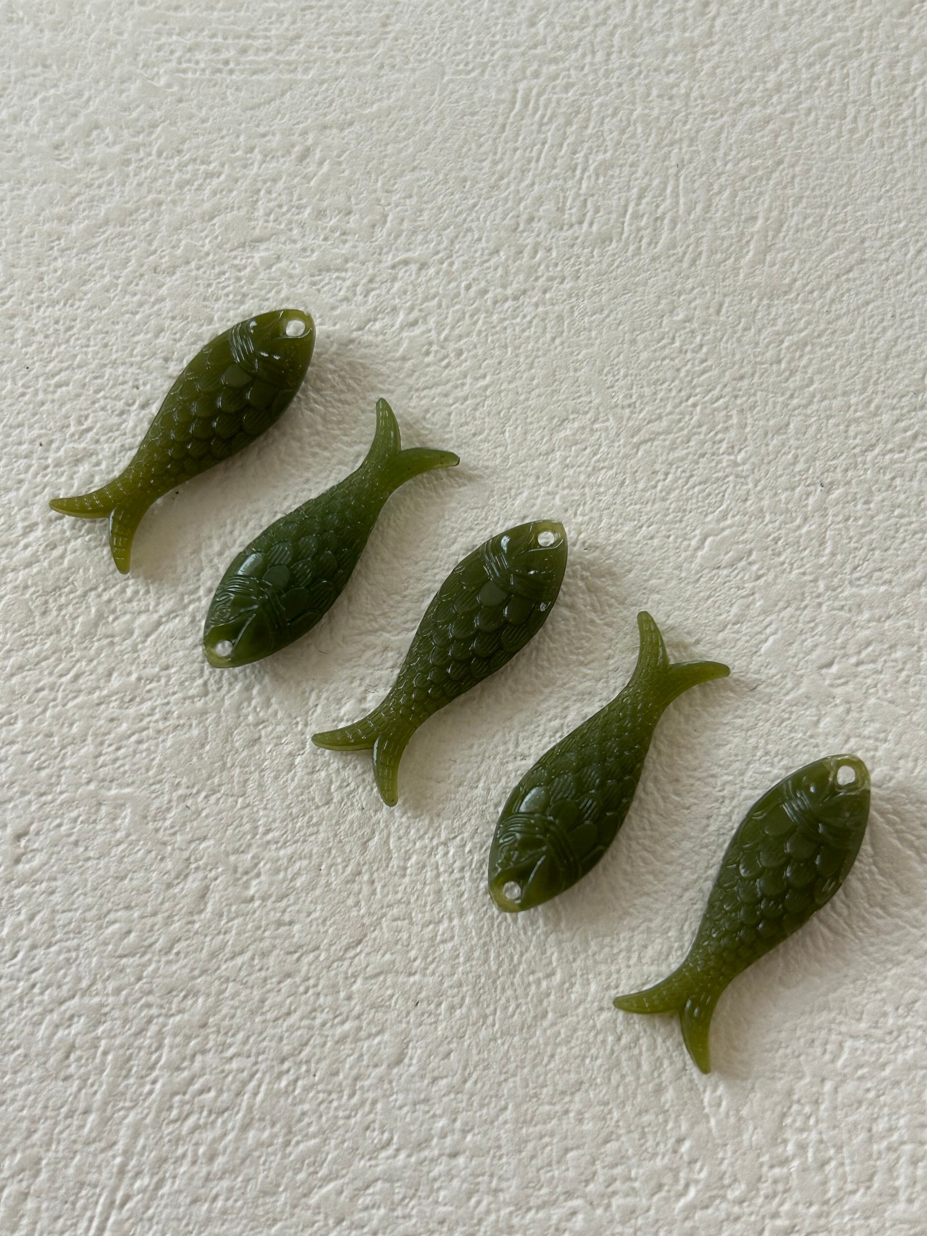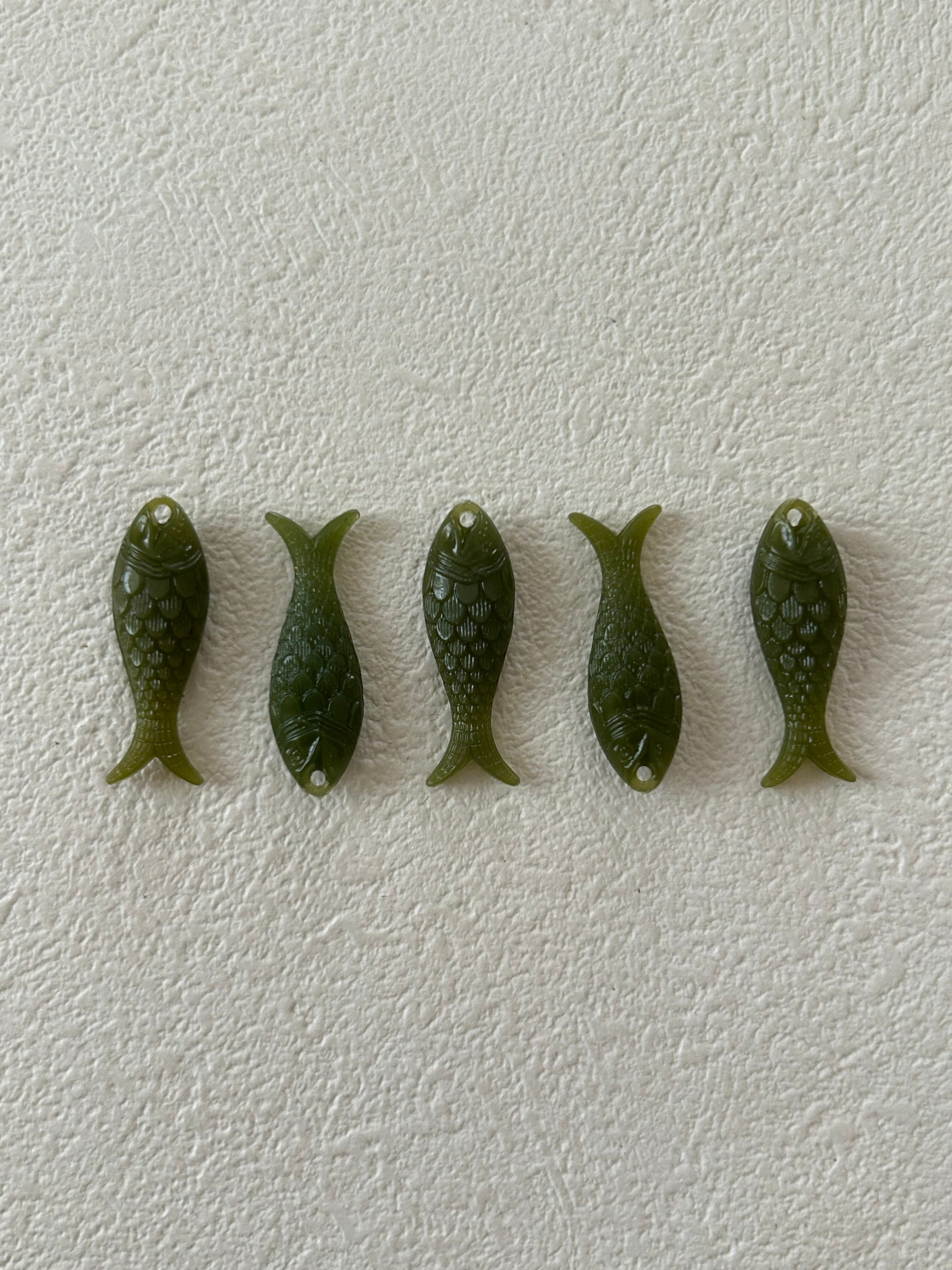 ドイツVintage ルーサイト ポワソンパーツ poisson 魚型 カーキ デッドストック アクセサリーパーツ デコレーション材