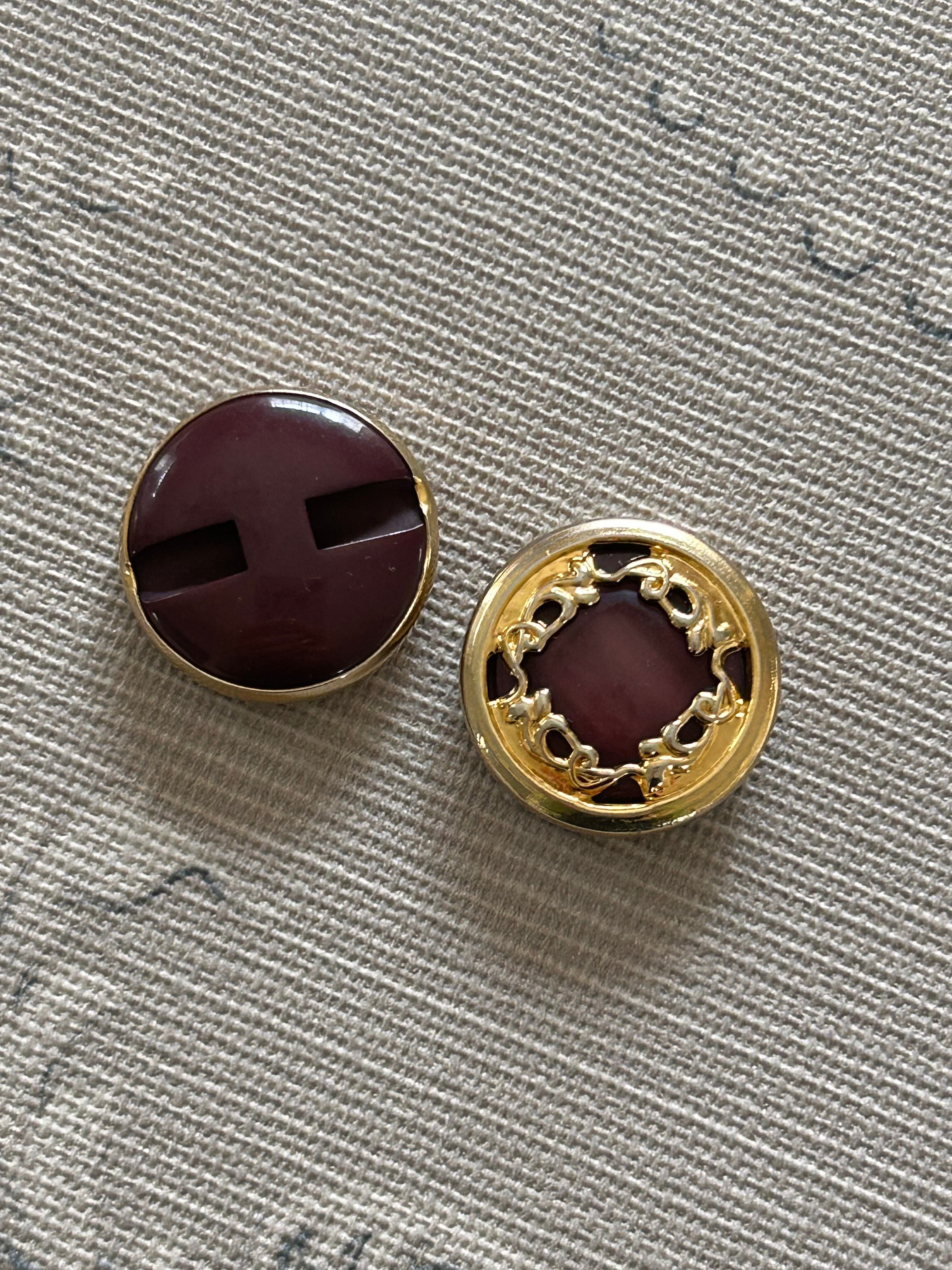 Japanese Vintage ボタン 24mm 赤紫×ゴールド アクセサリーパーツ 装飾材 デッドストック カルトナージュ