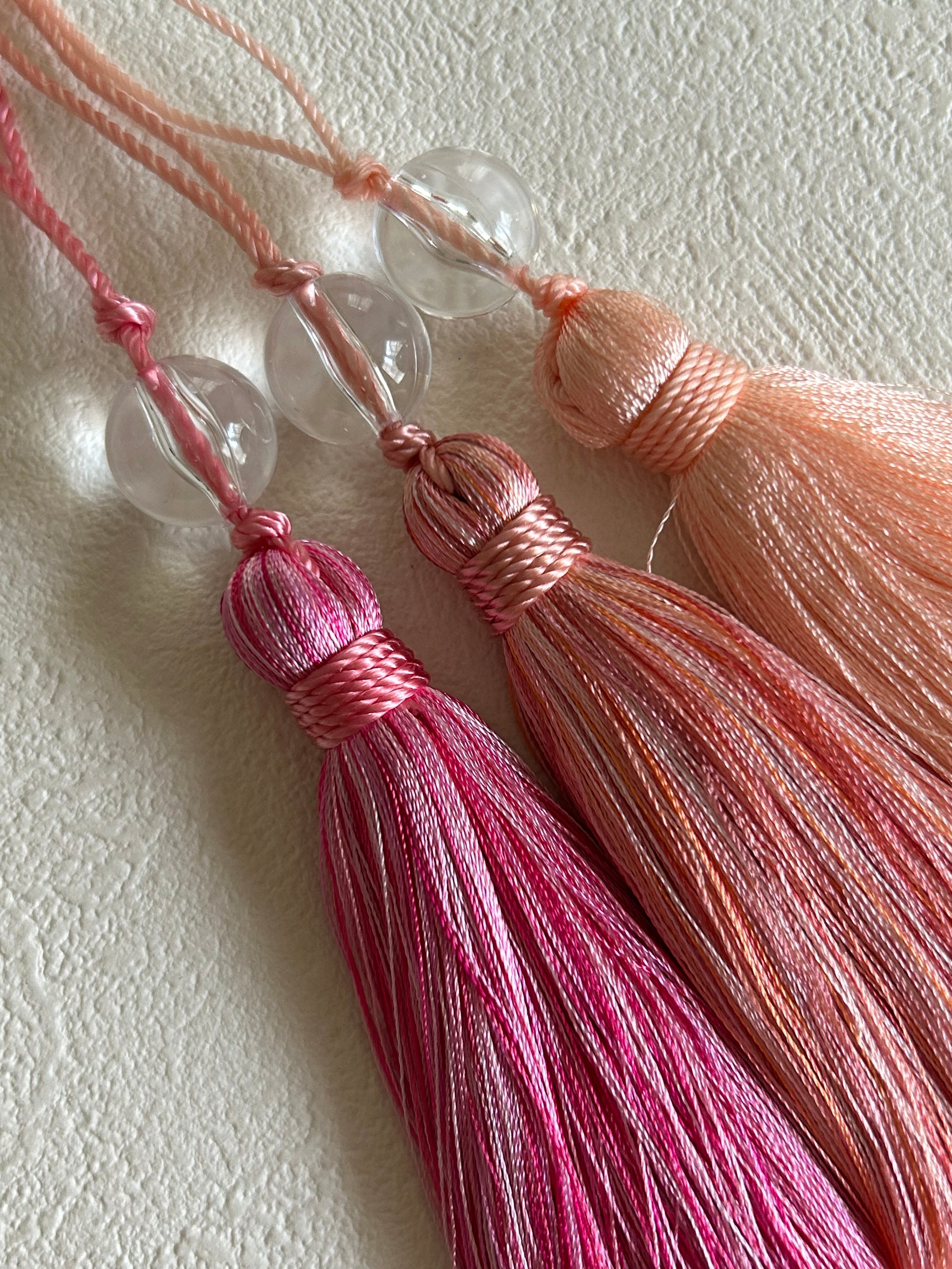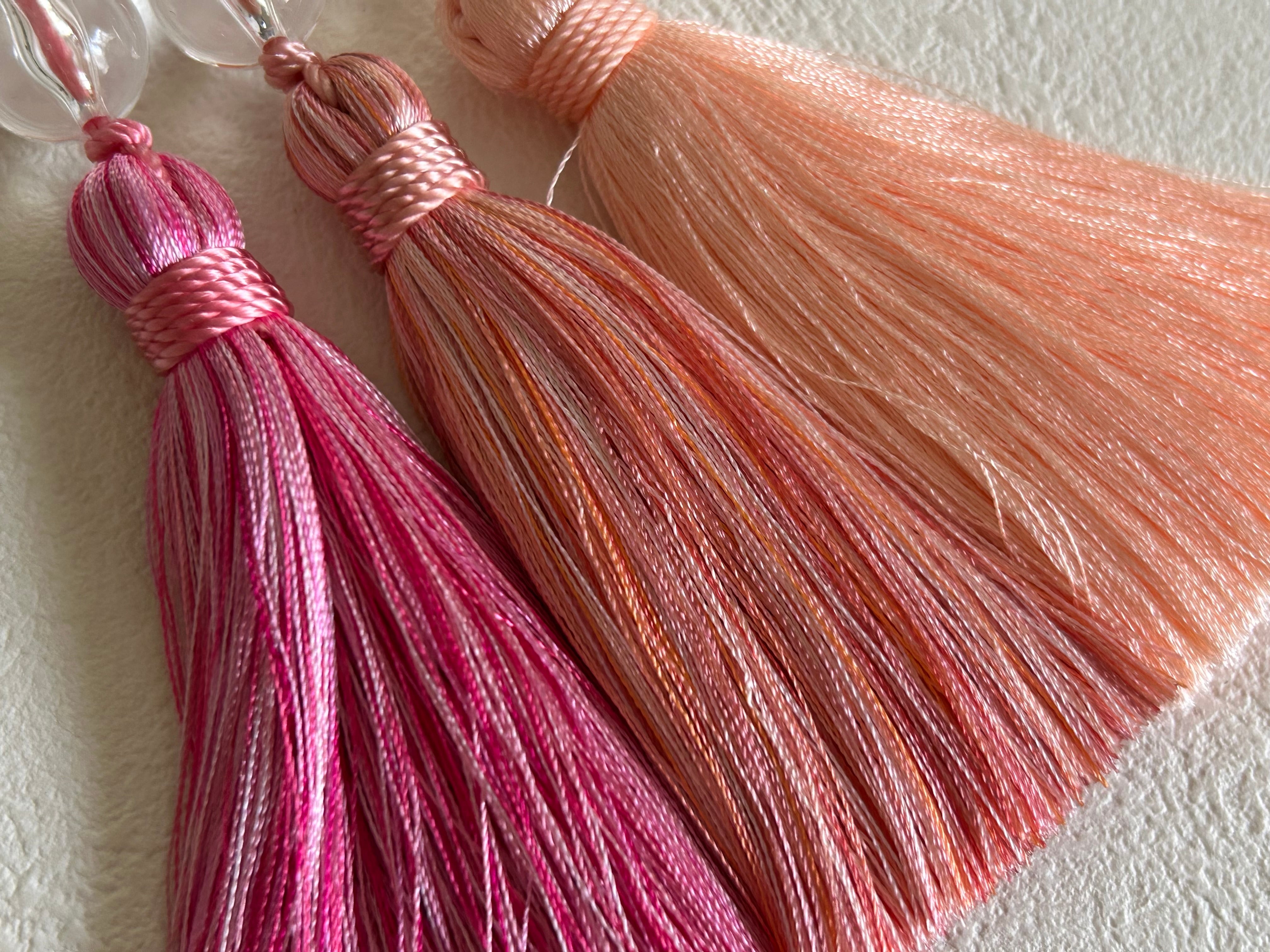 輸入デザインタッセル ピンクMIX/オレンジピンクMIX/サーモンピンク クリアビーズ 9.5cm カルトナージュ デコレーション材 インテリア小物 チャーム