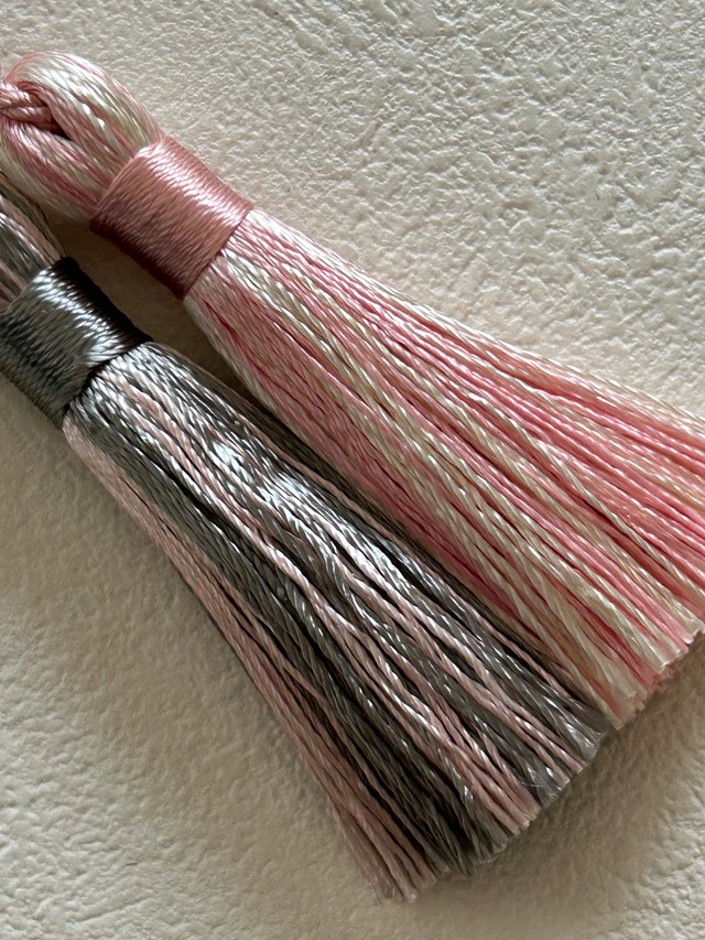輸入デザインタッセル シンプルタッセル ピンク×アイボリー/ピンク×グレー 6.5cm カルトナージュ チャーム