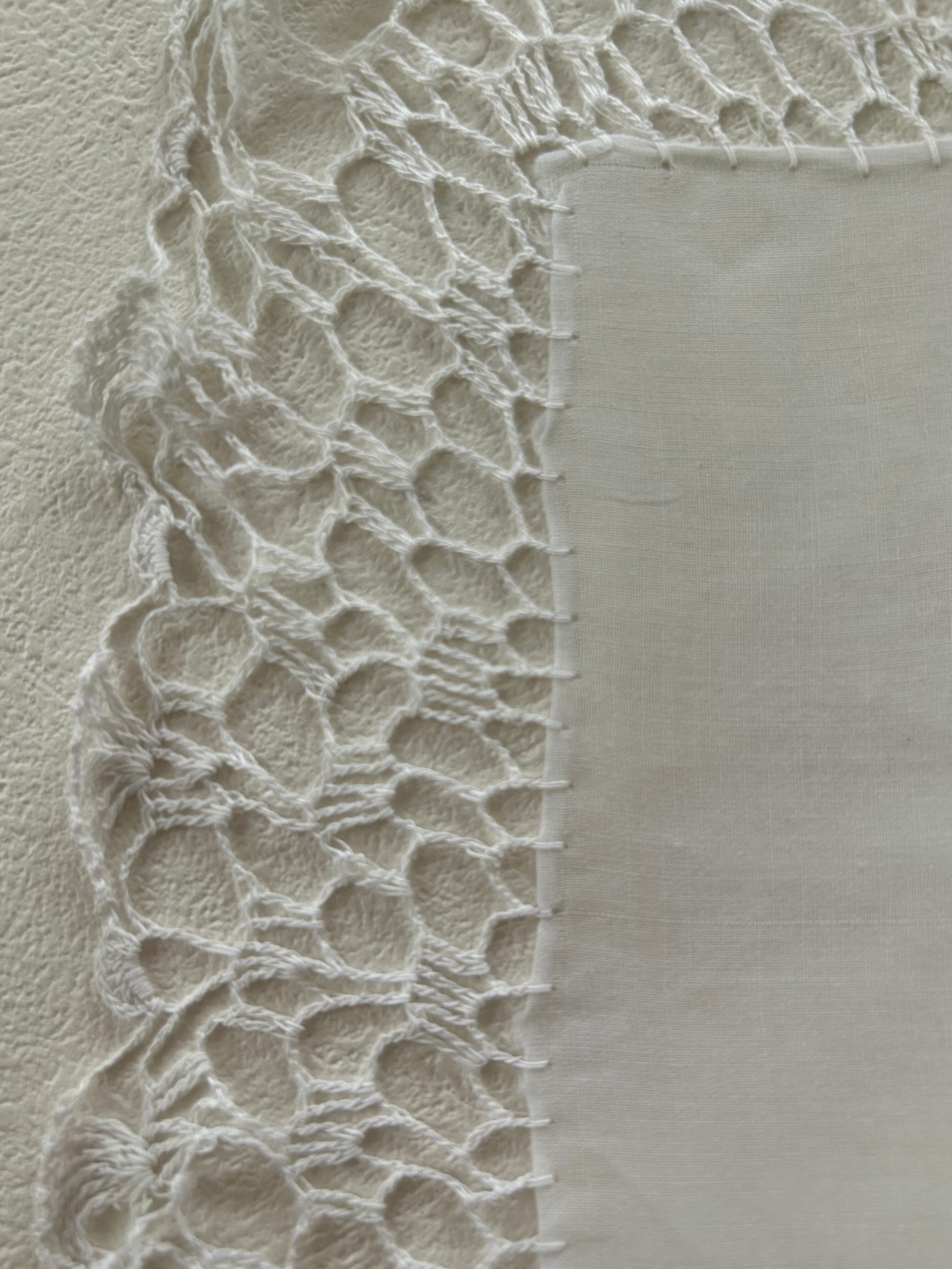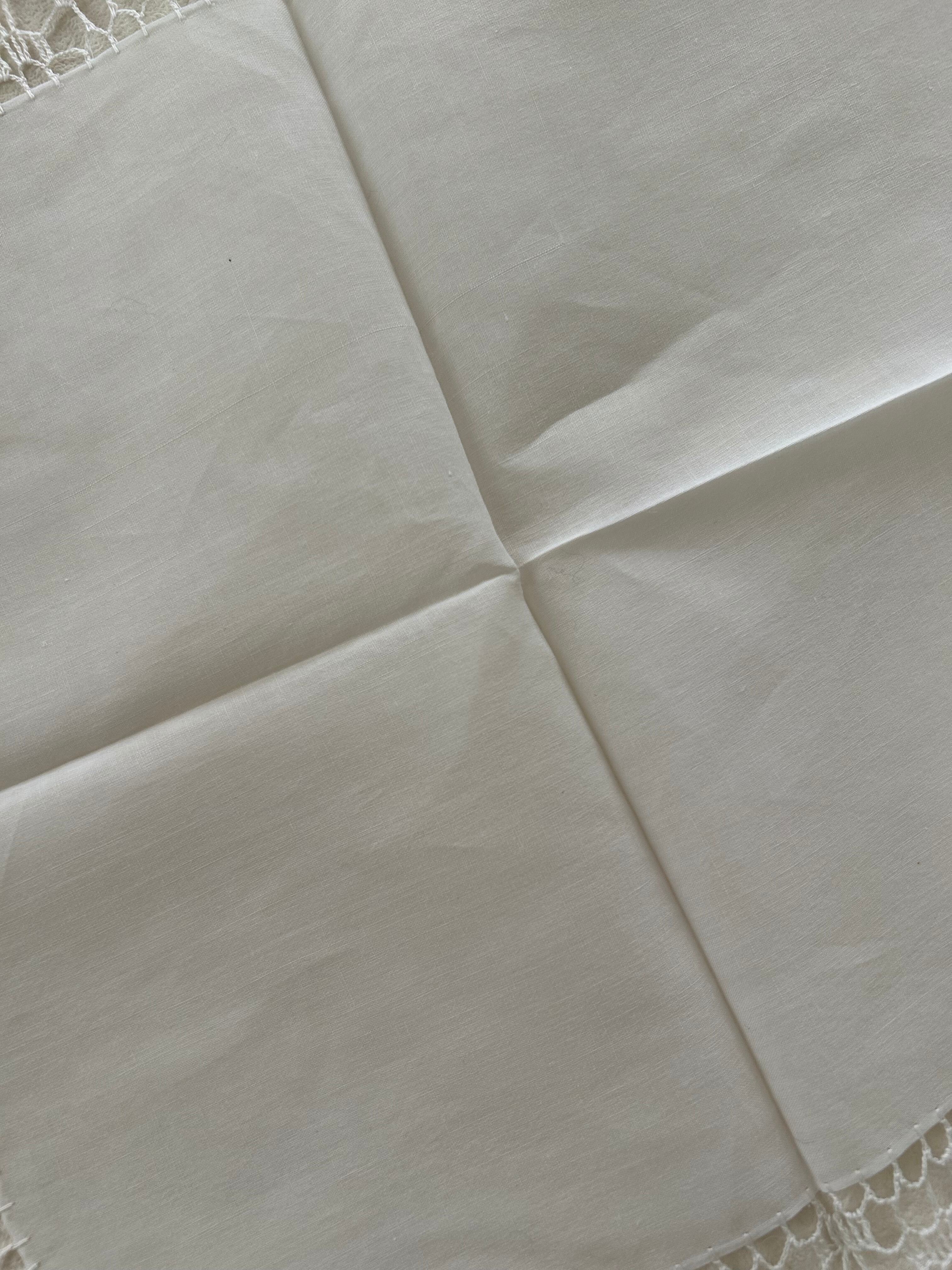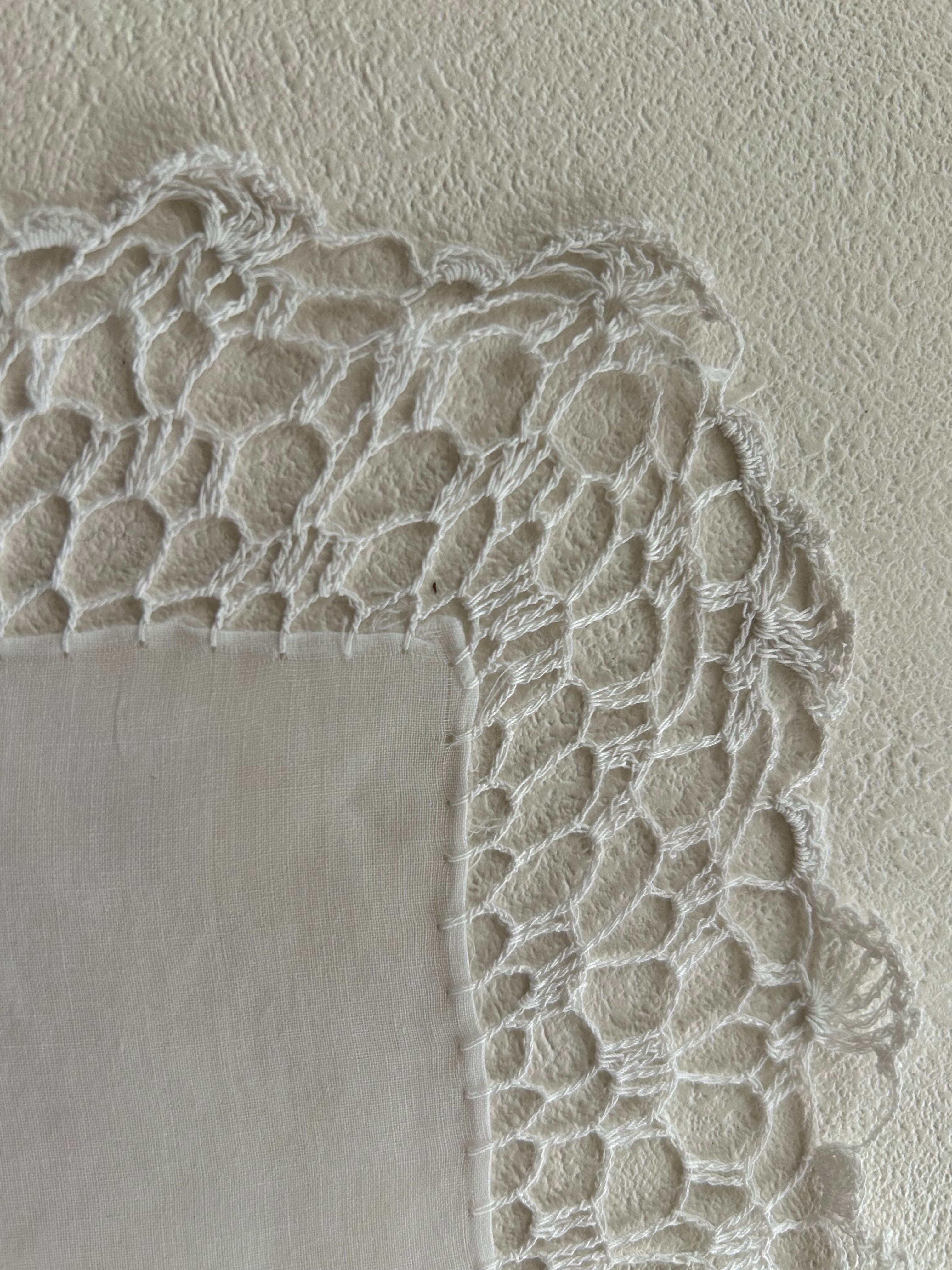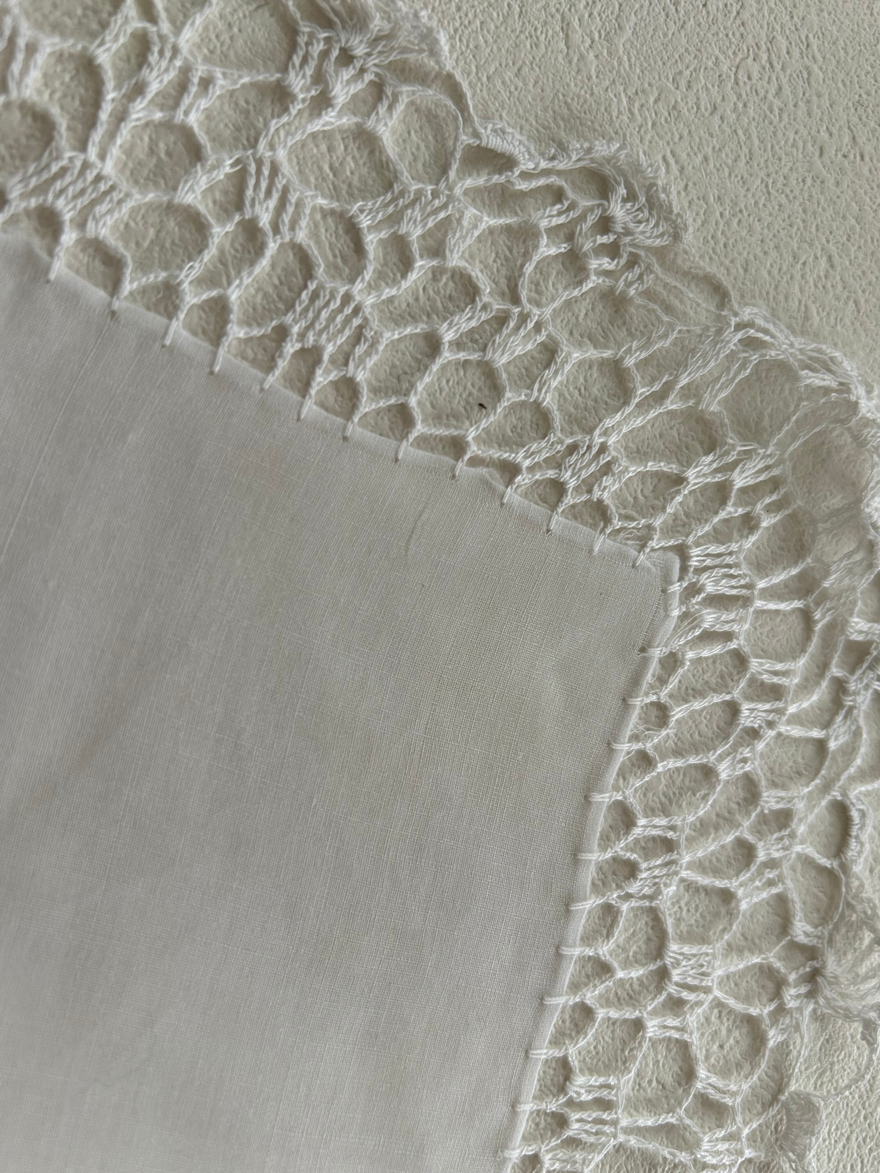 フランスアンティーク レースとイニシャル刺繍 ハンカチーフ 白刺繍 デッドストック 美品 ハンドメイド素材 インテリア小物 撮影小物