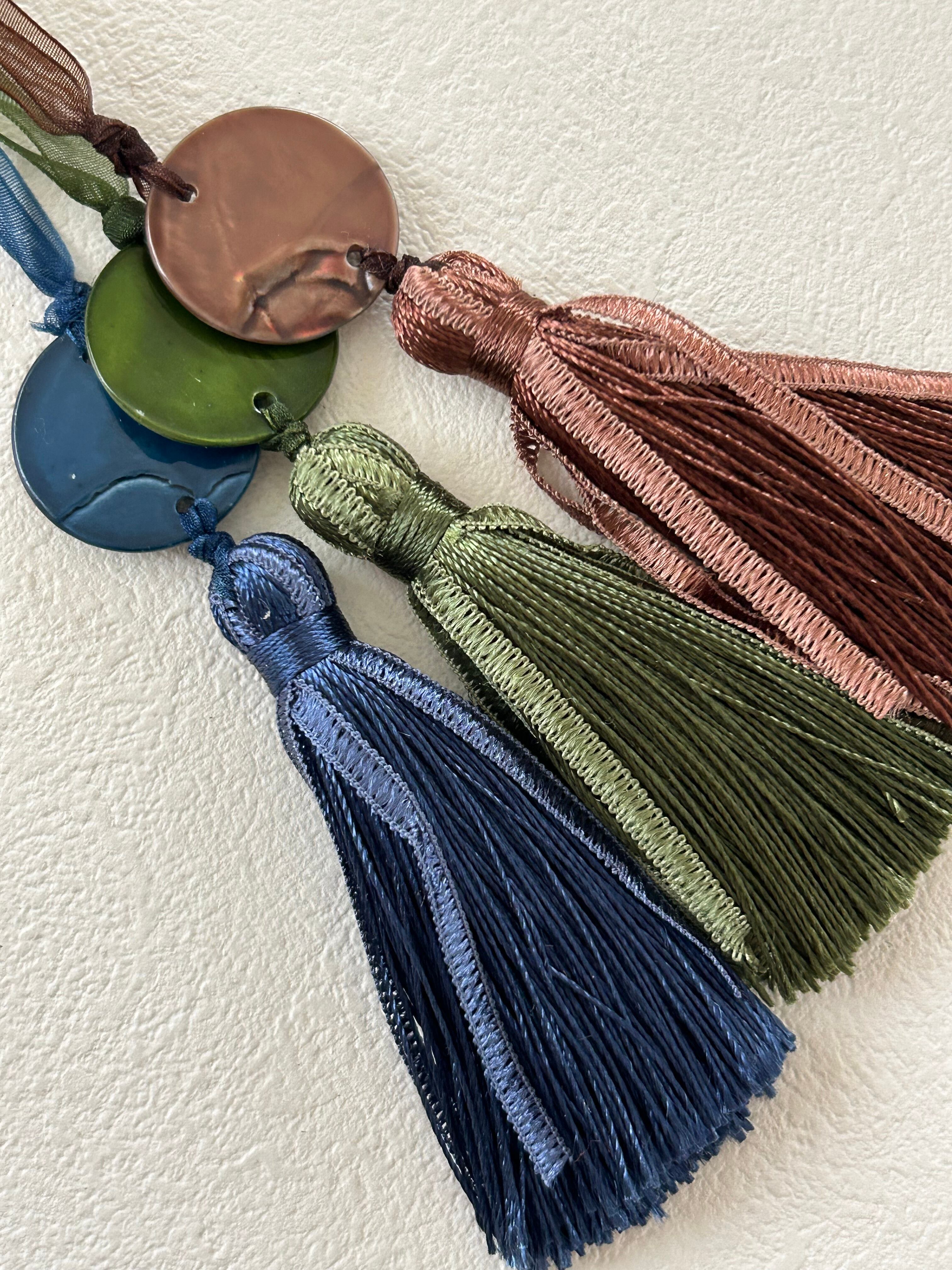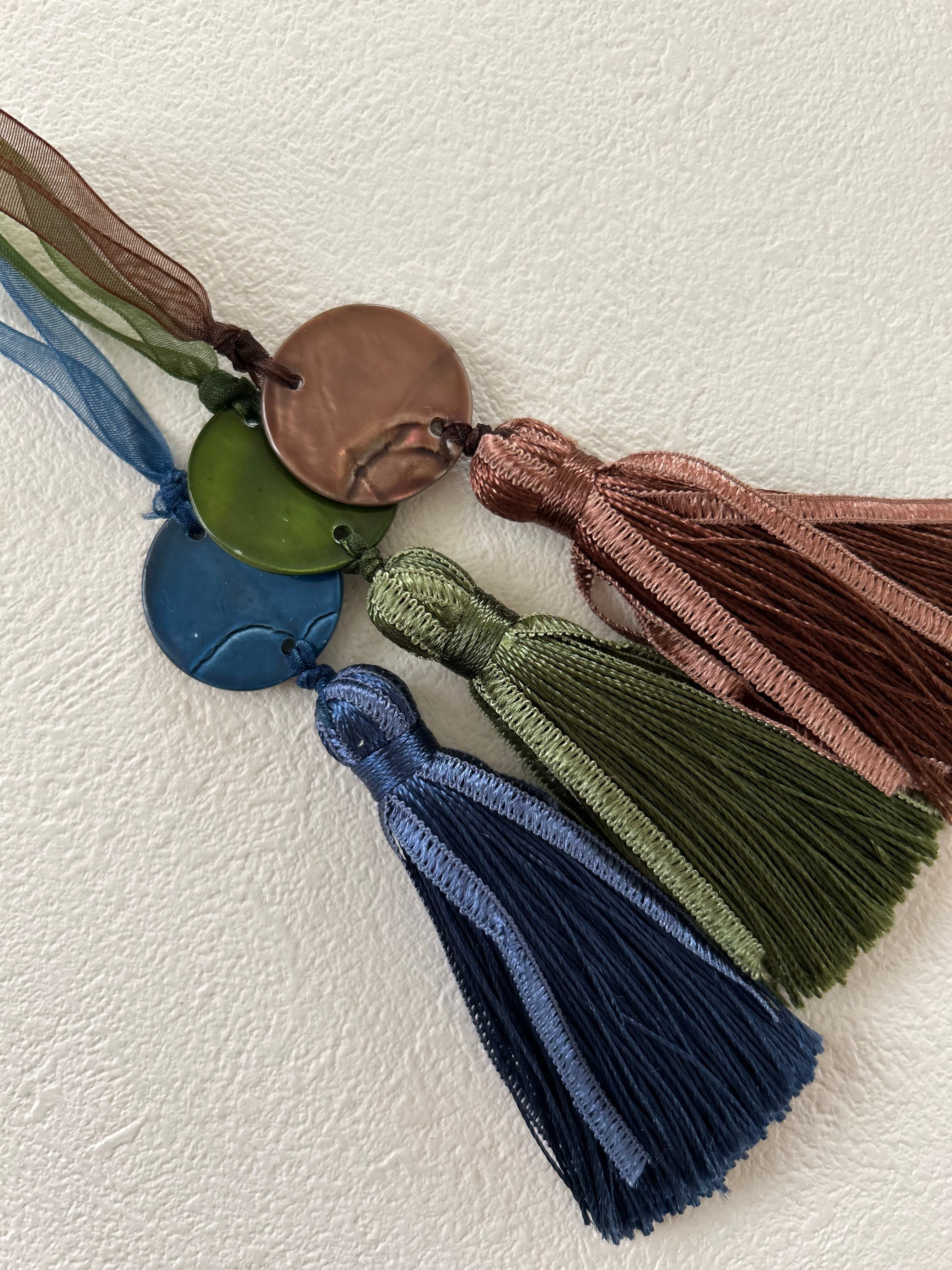 フランス 輸入デザインタッセル シェル ブルー/カーキ/ブラウニー 10cm カルトナージュ インテリア チャーム
