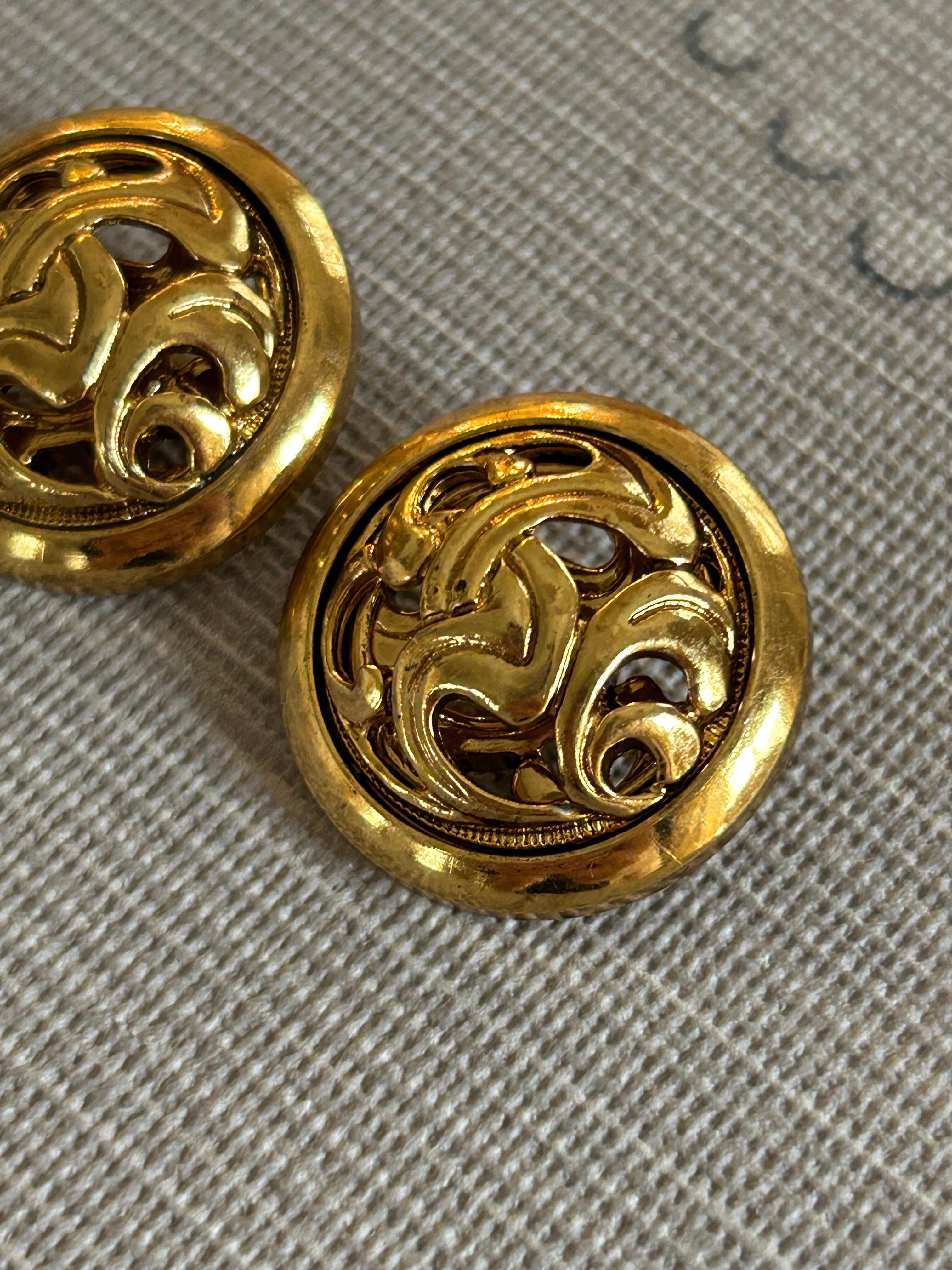 Japanese Vintageボタン 透かし プラスチック ゴールド 24mm アクセサリーパーツ デコレーション材