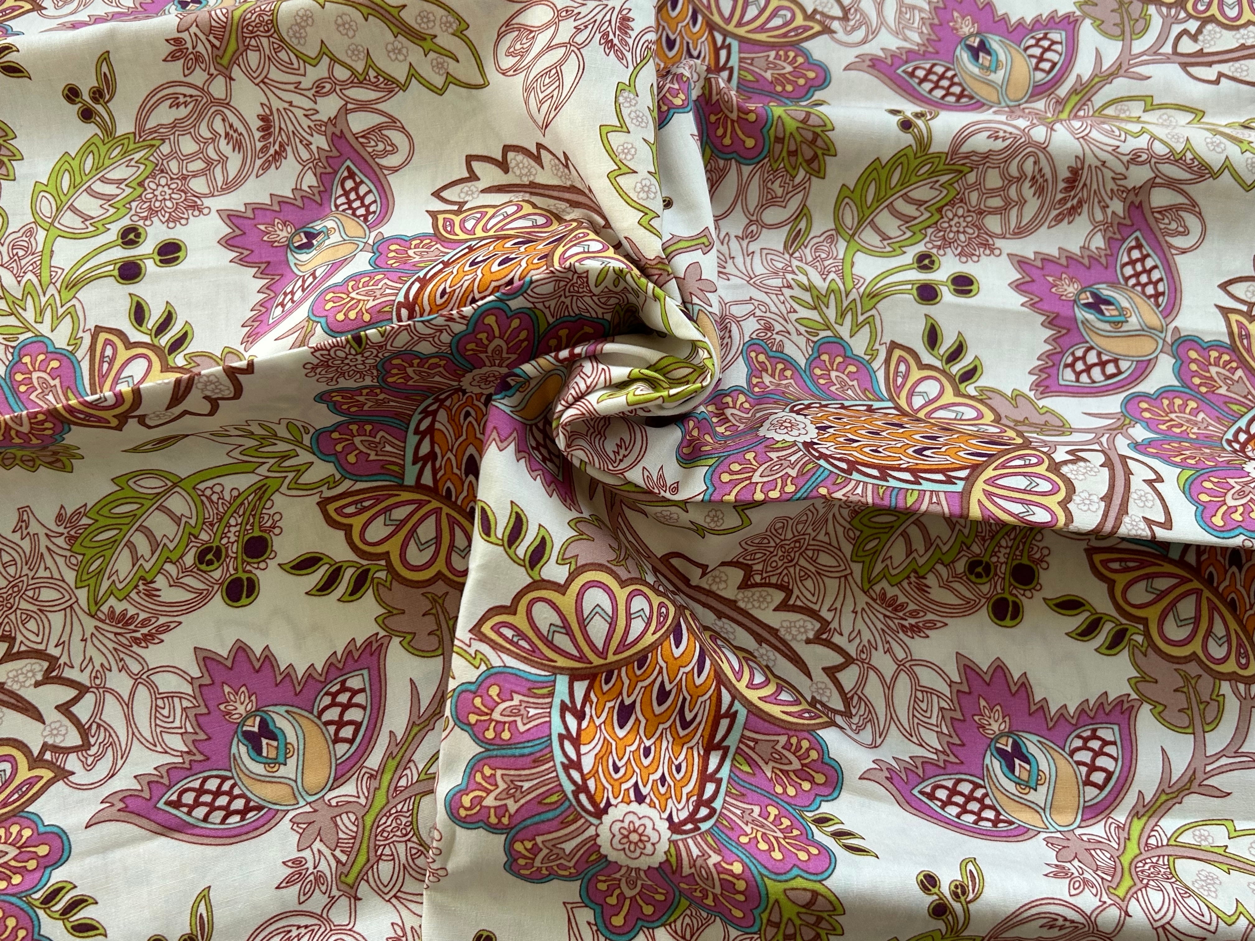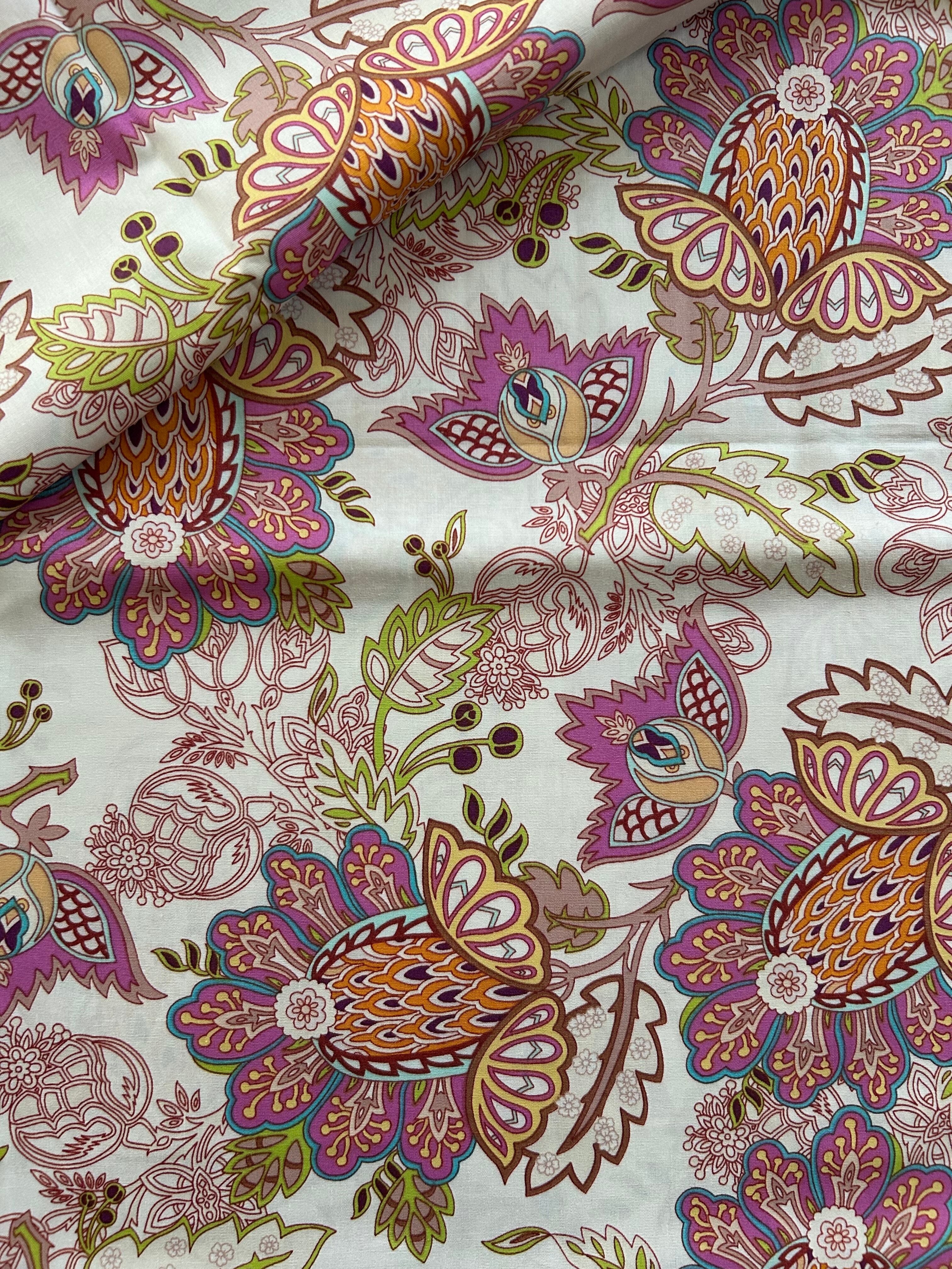 輸入コットンファブリック フラワー柄 オリエンタル ポップ マルチカラー USAファブリック カルトナージュ