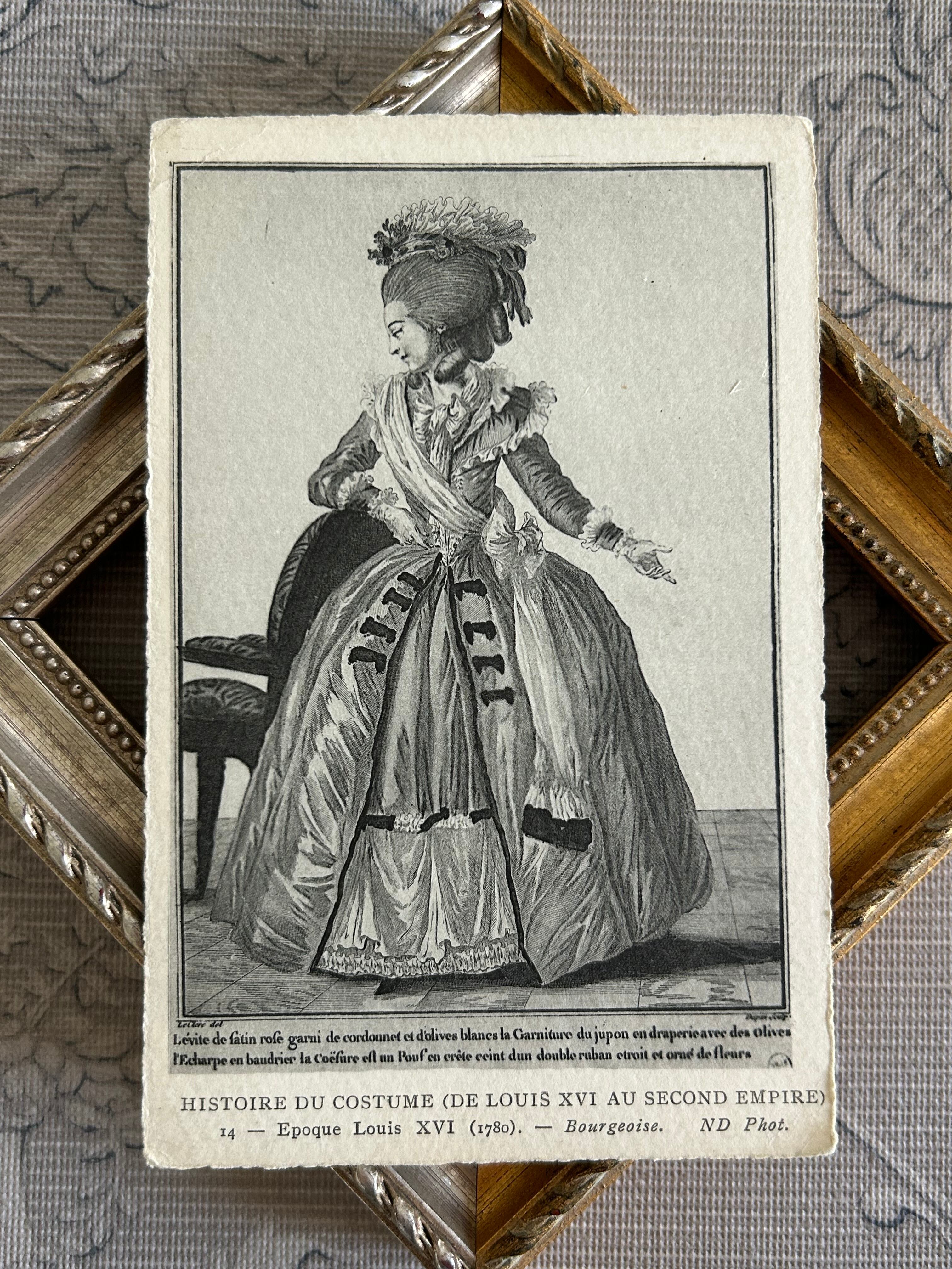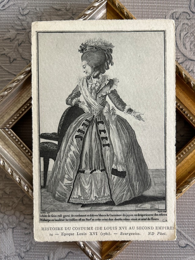 アンティークポストカード 人物画 ルイ16世時代の衣装 衣装の歴史 額装 インテリア フランス エンボス
