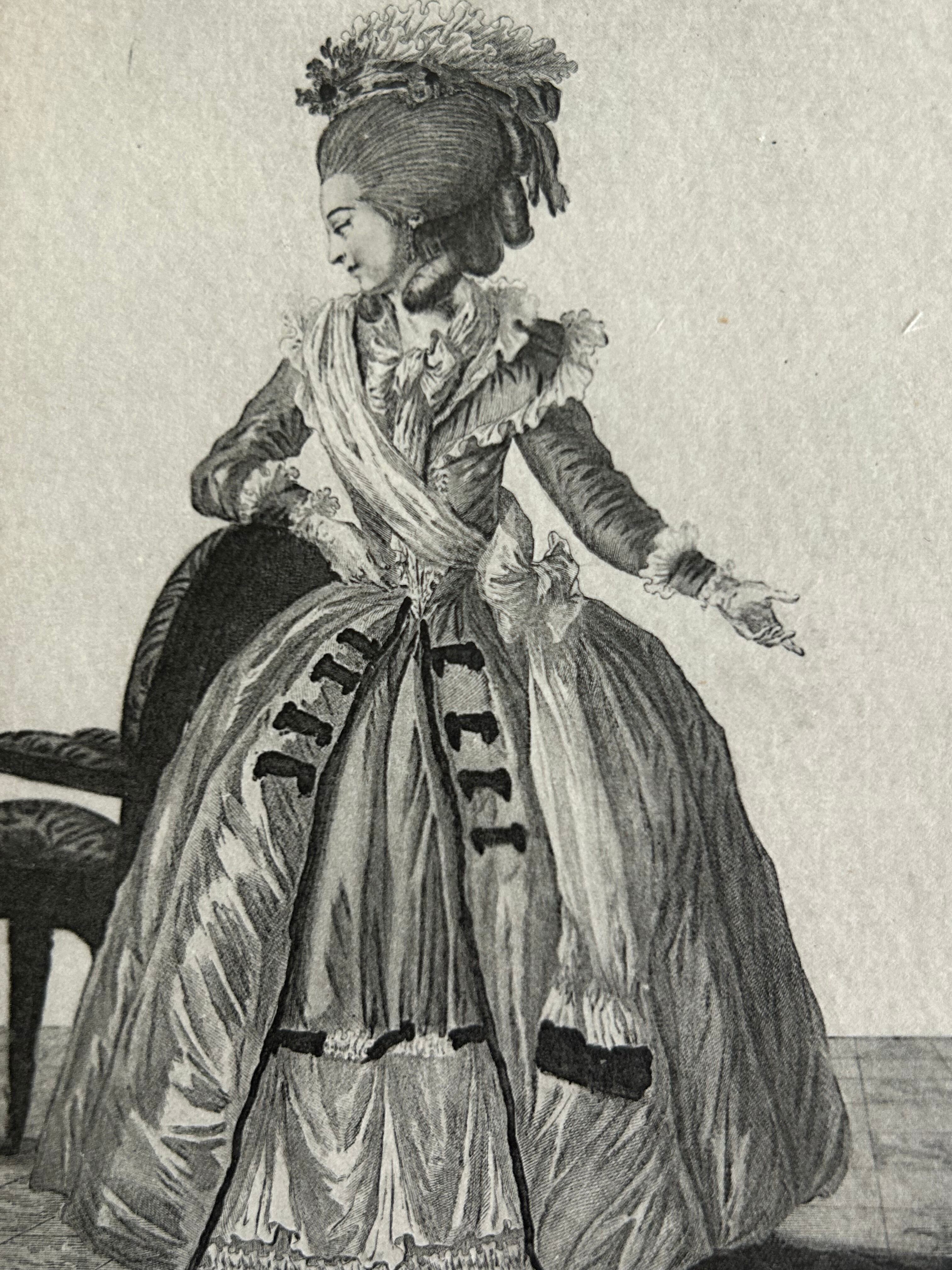 1780年、ルイ16世時代の女性の衣装と書かれています。