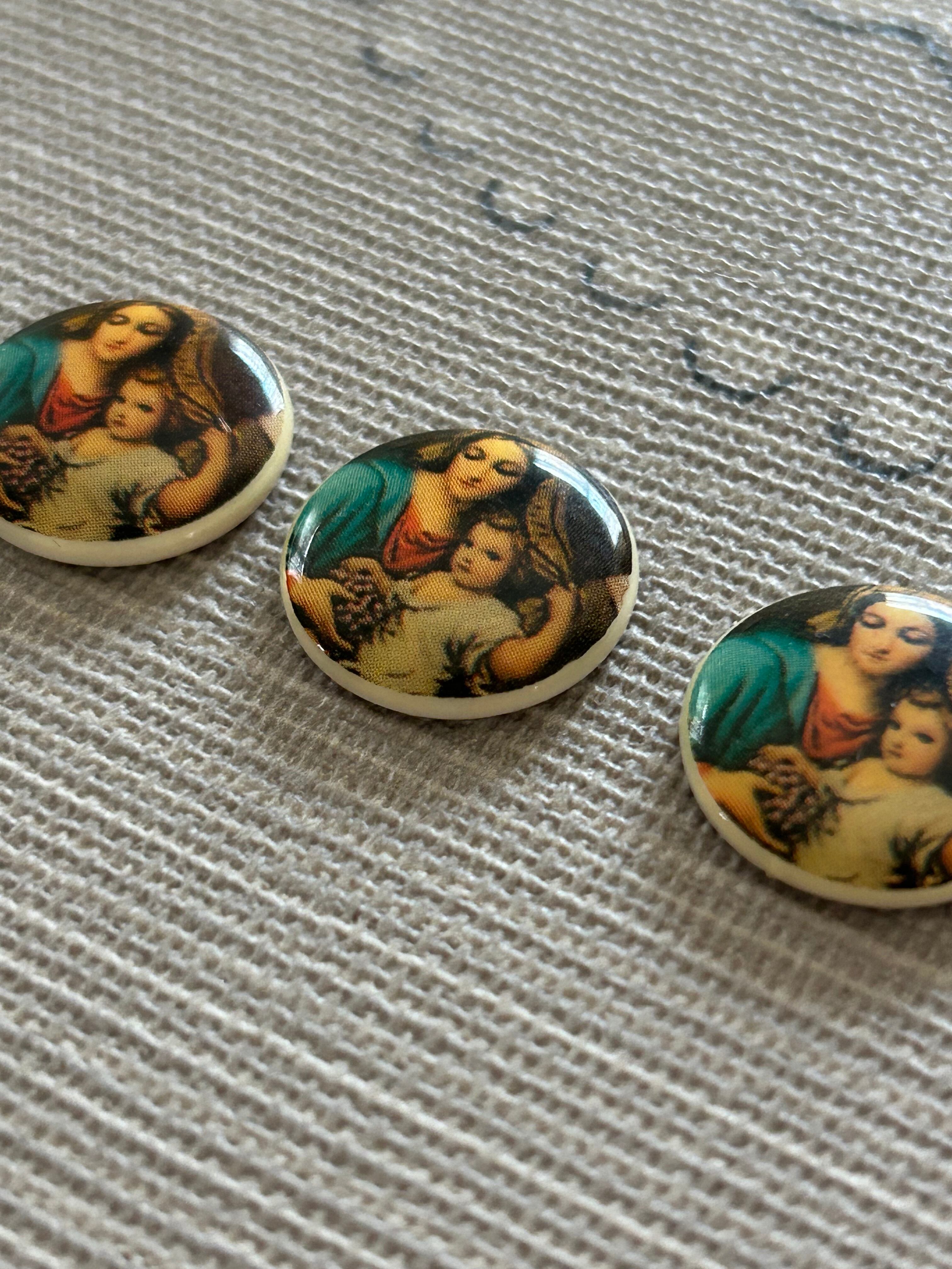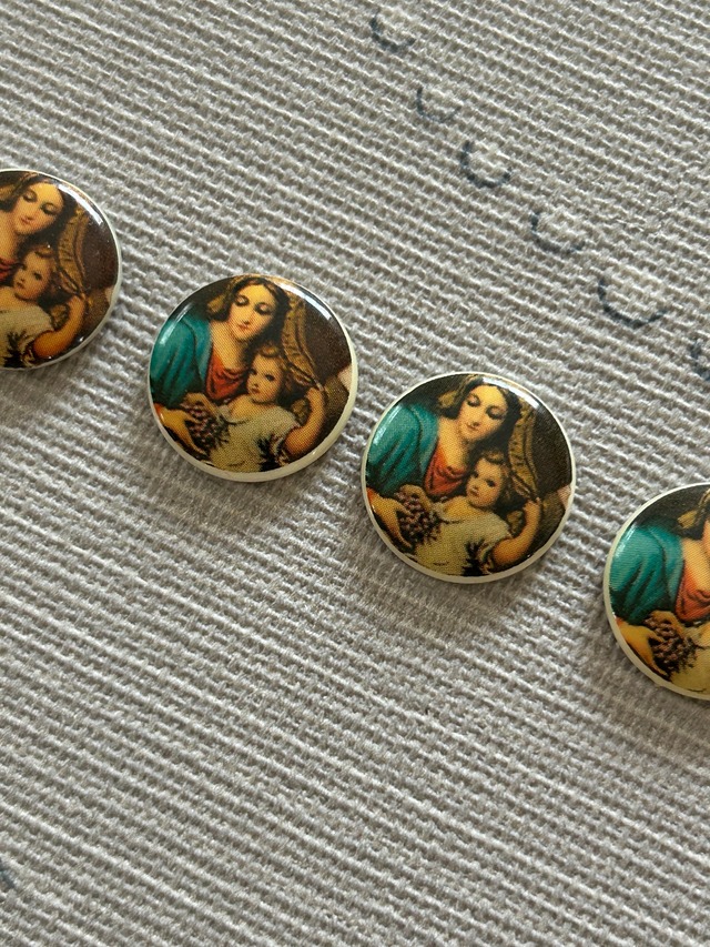 ドイツヴィンテージ 宗教画のガラスカボション 18mm キリスト教 アクセサリーパーツ デコレーション材