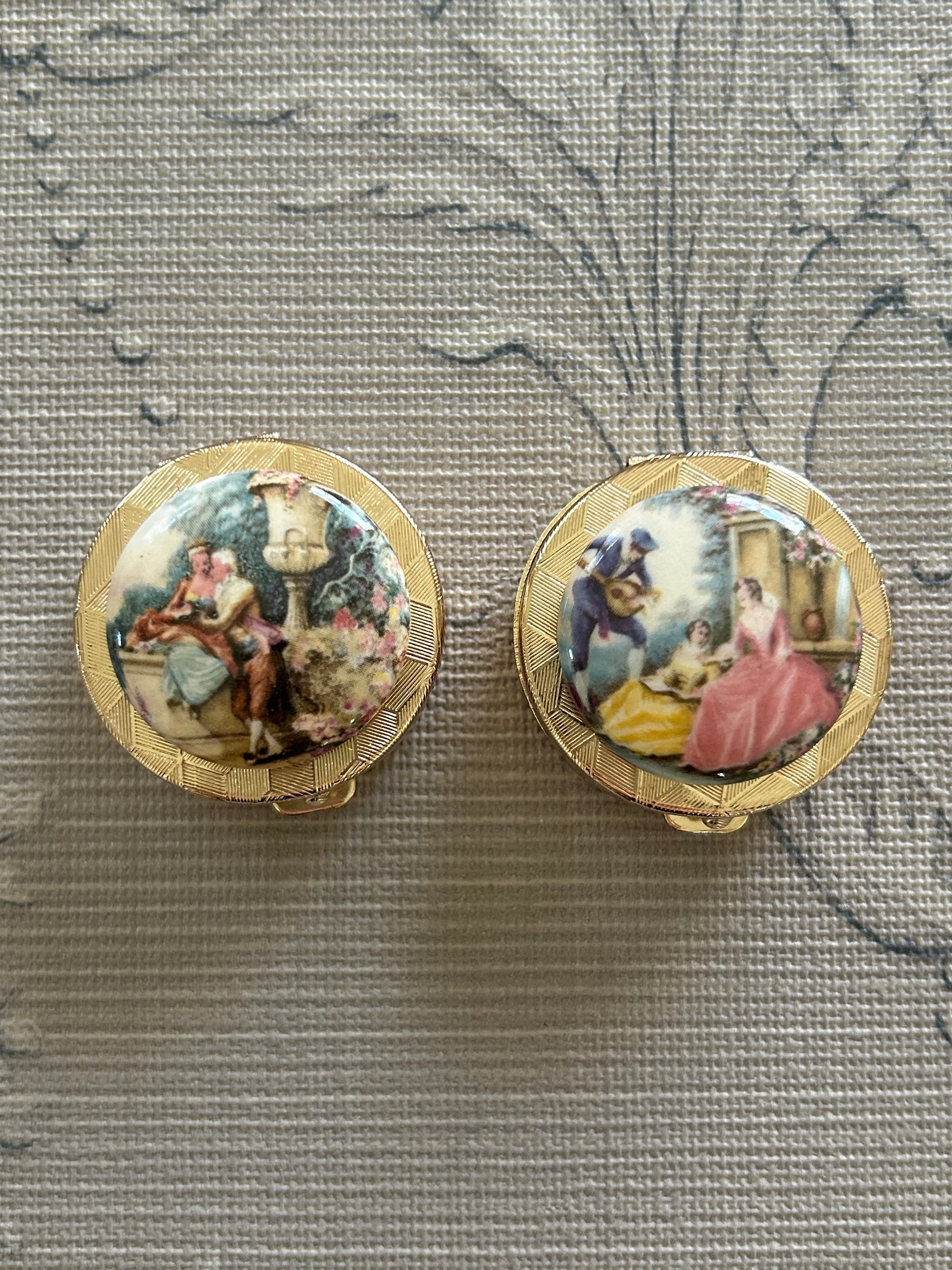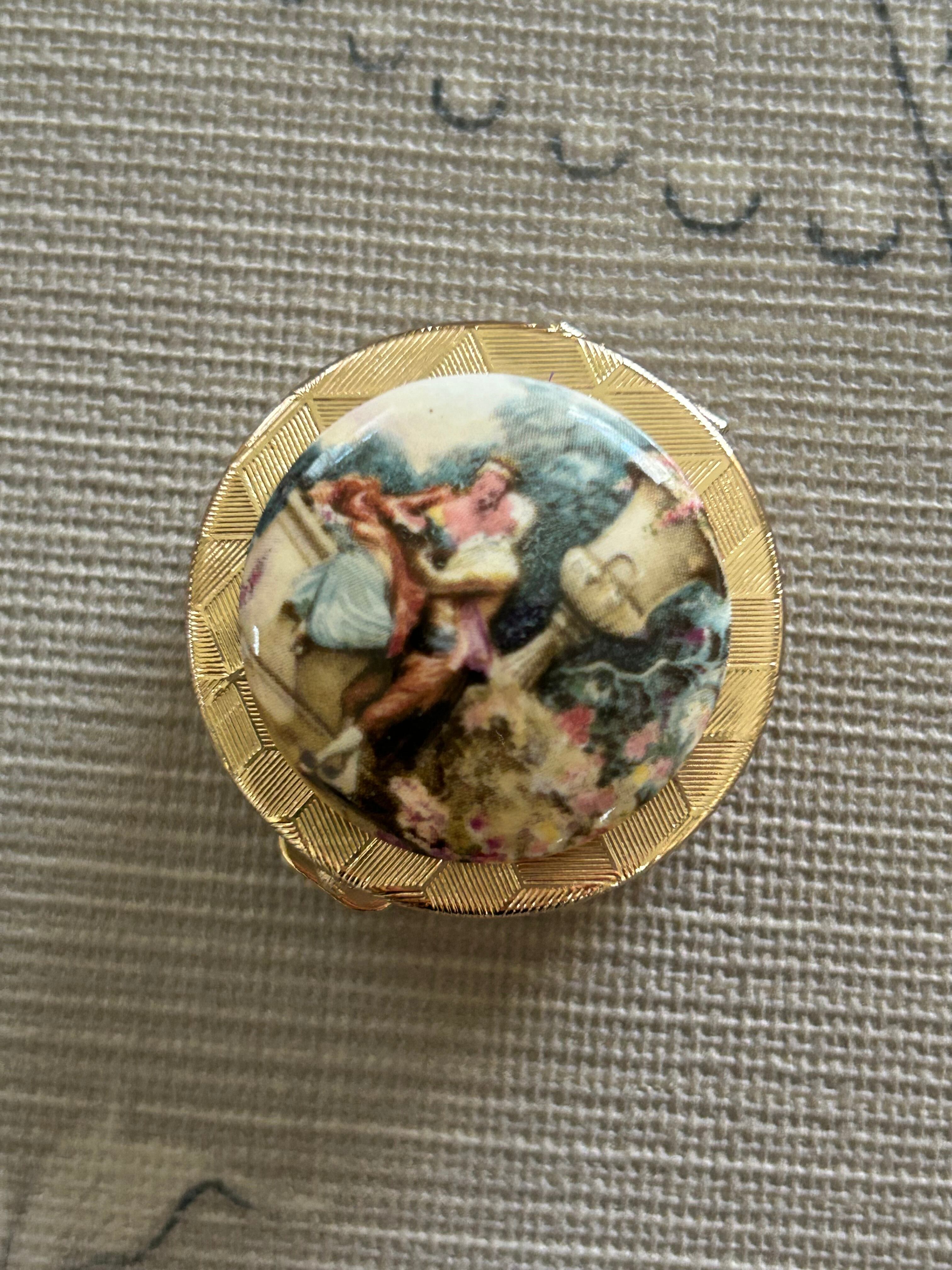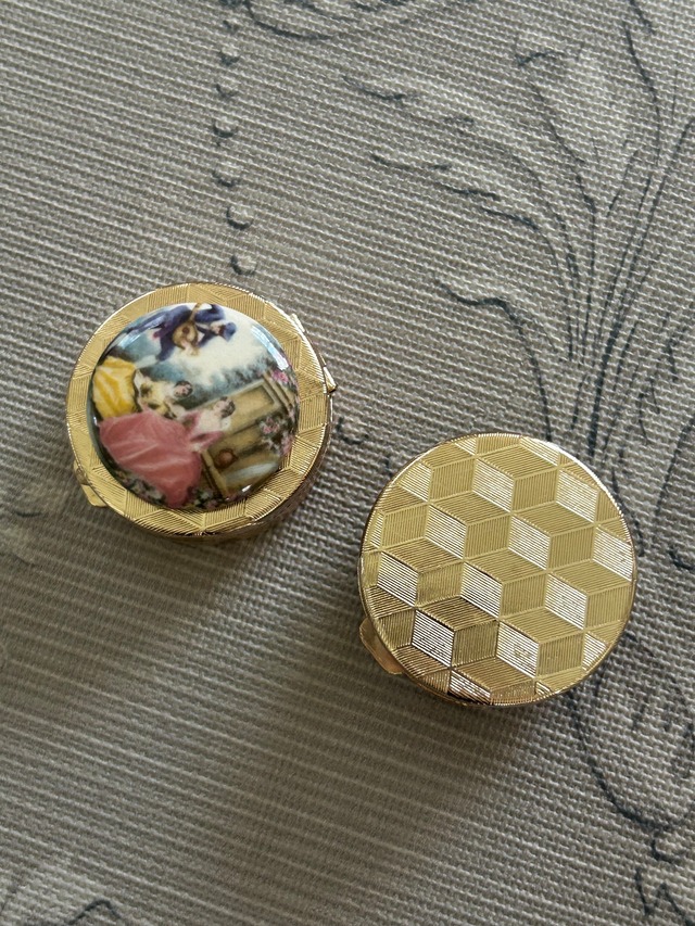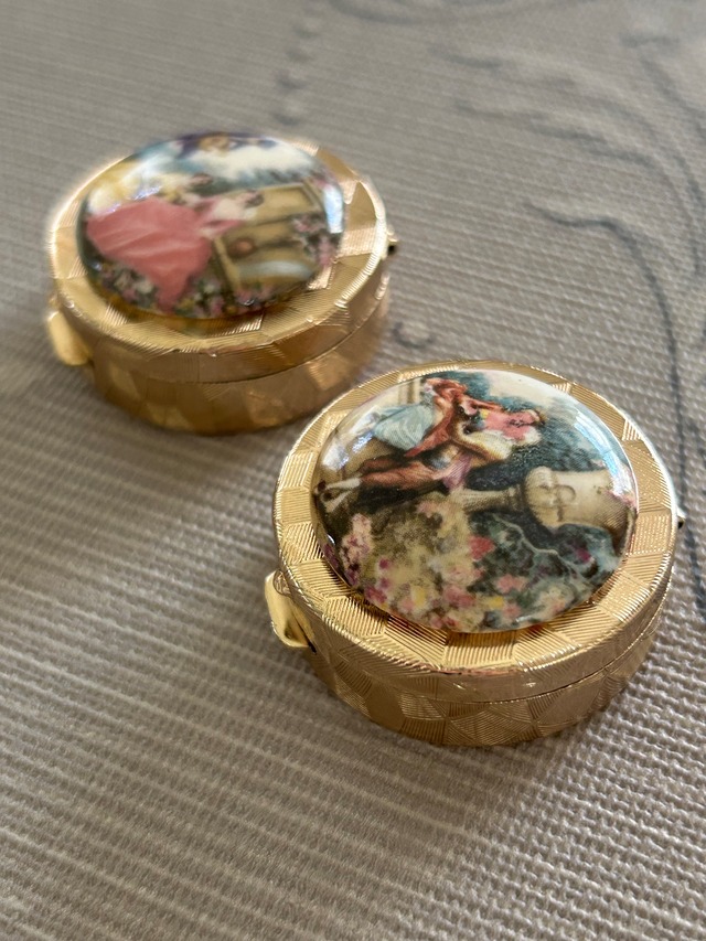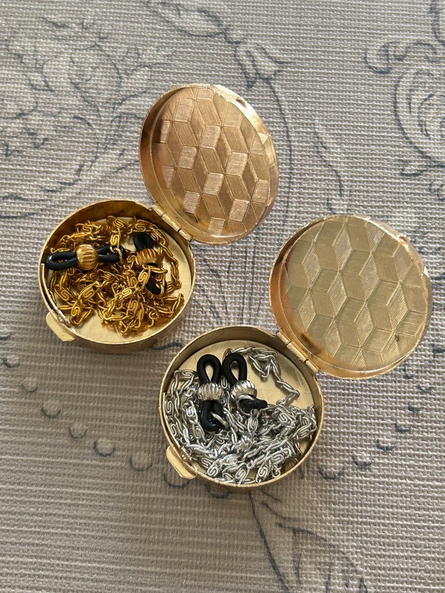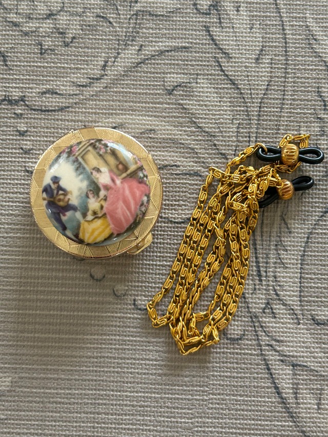 Japanese Vintage デッドストック 西洋画柄の小物入れとメガネチェーン シルバー/ゴールド 丸型 ディスプレイ インテリア