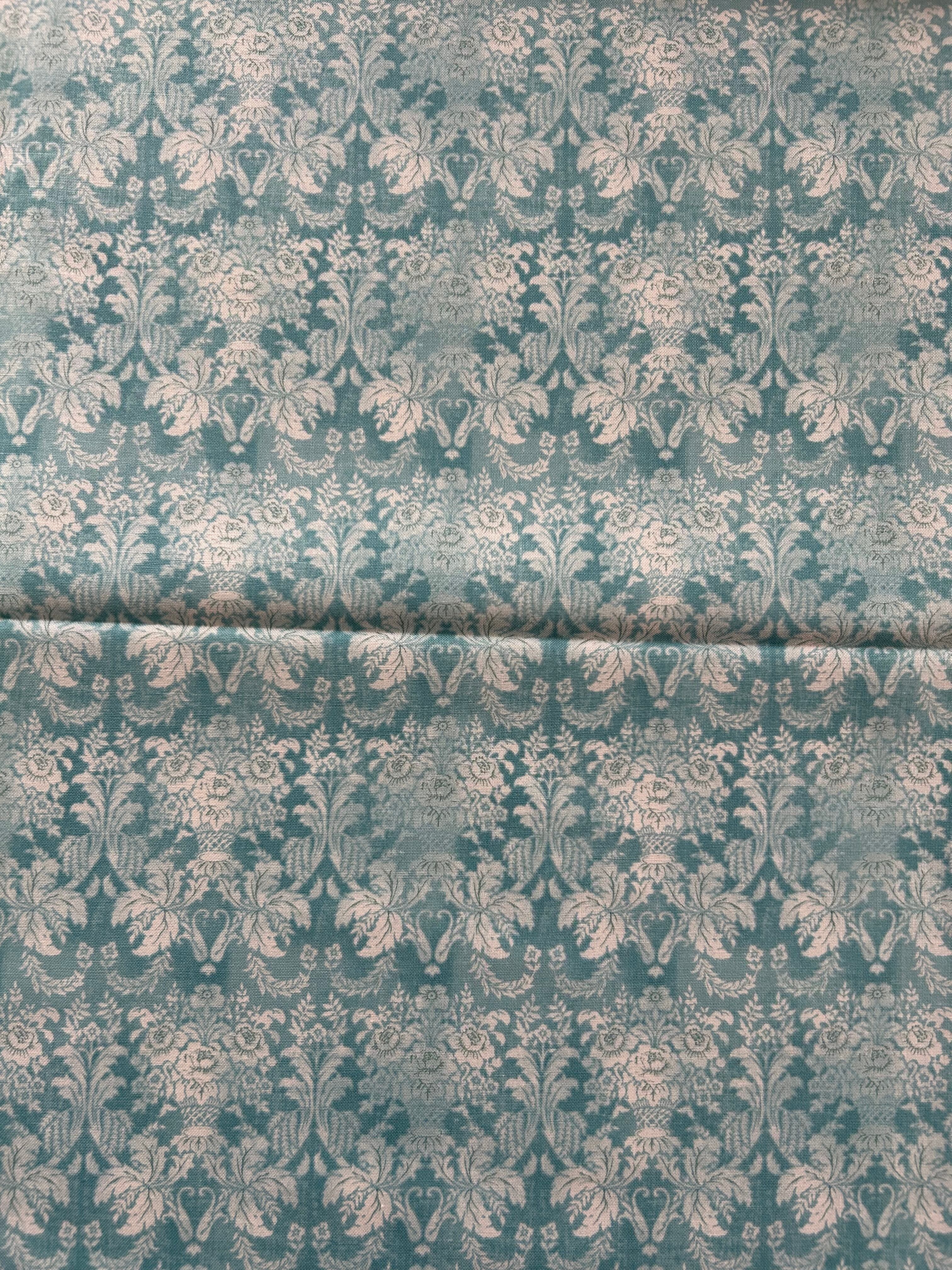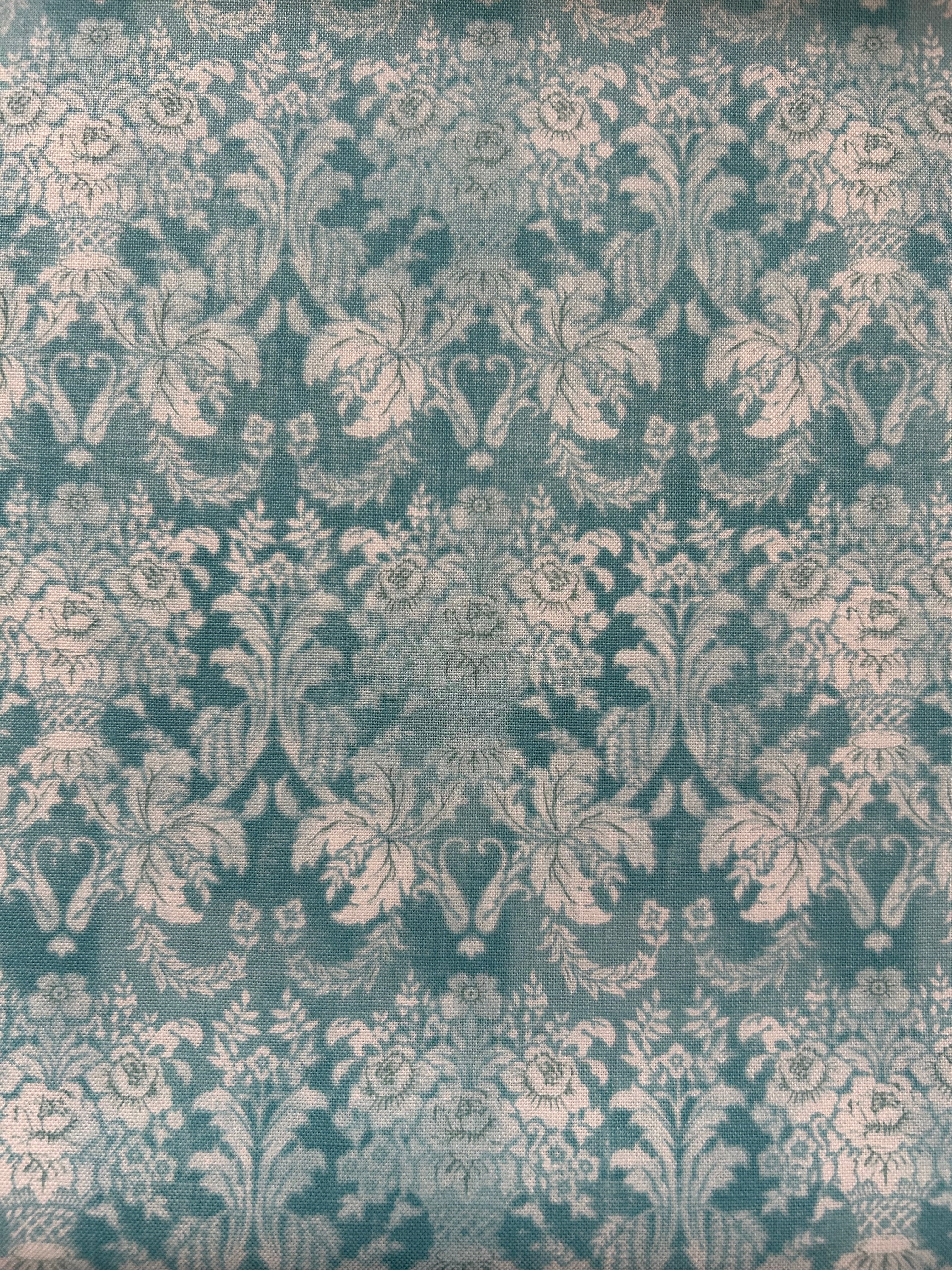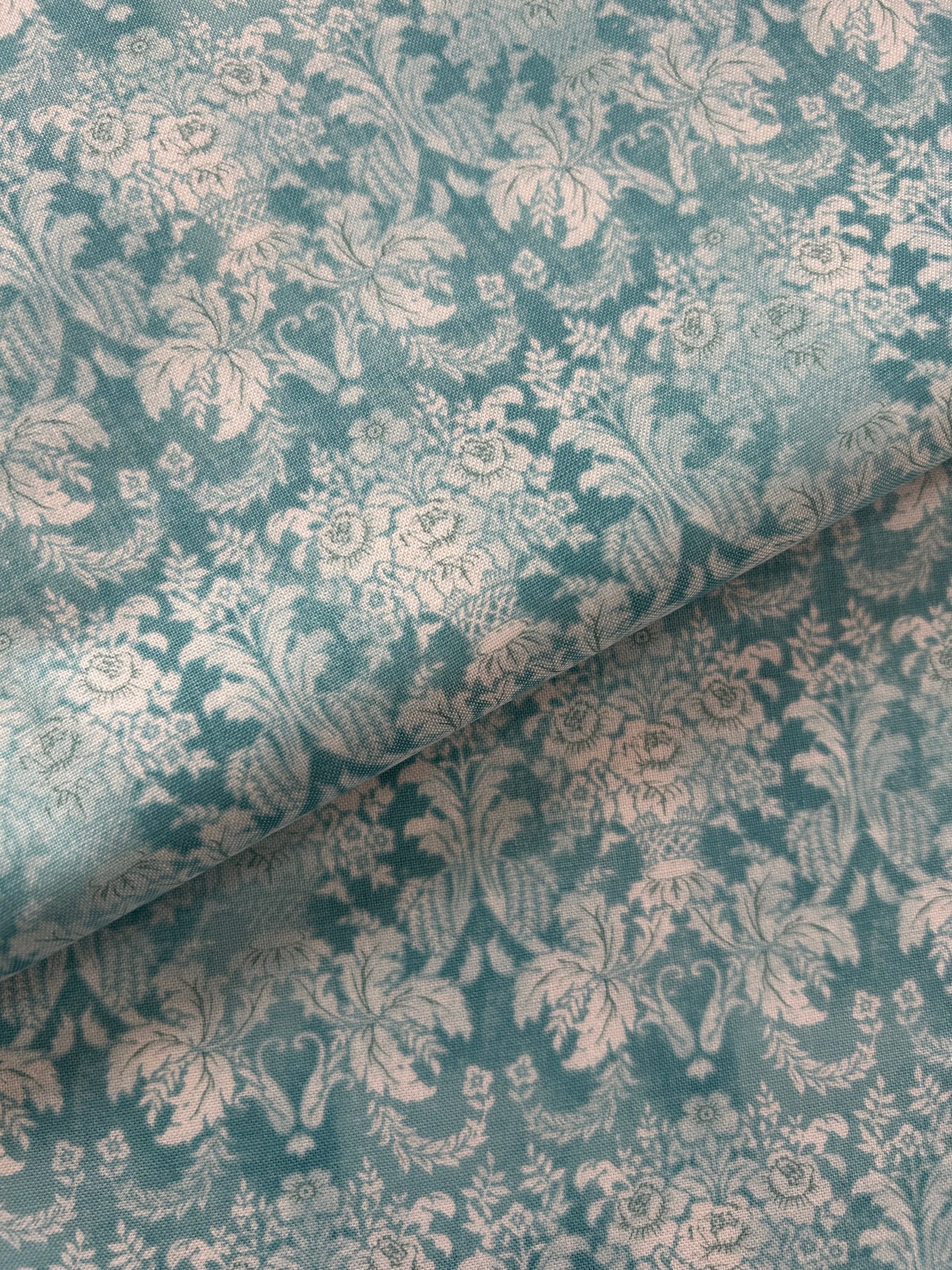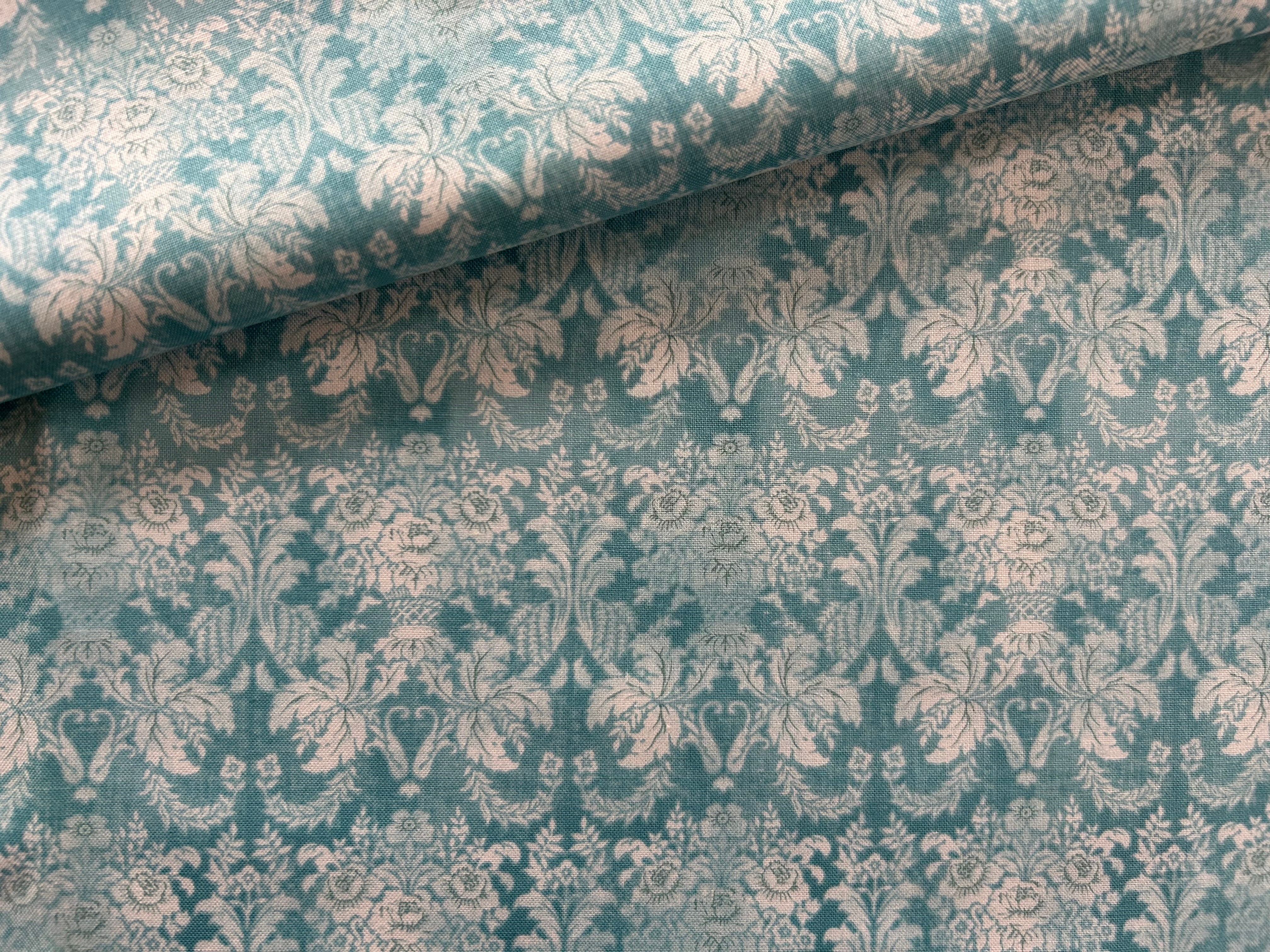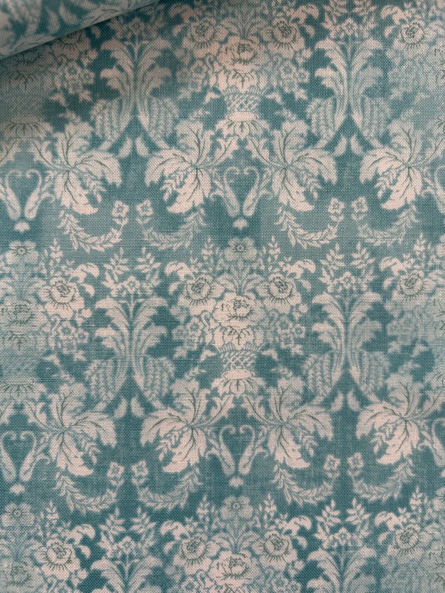 輸入コットンファブリック ダマスク調 フラワー パニエ 花籠柄 ライトブルー×ホワイト KOREAファブリック カルトナージュ