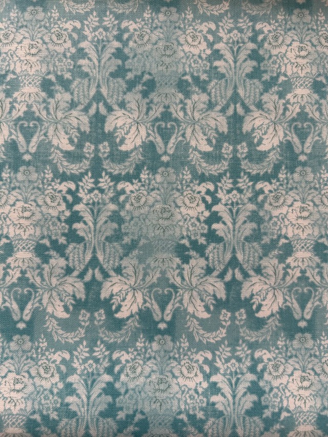 優しい水色のダマスク調のデザイン。ダマスク調の花籠(パニエ)の柄になります。