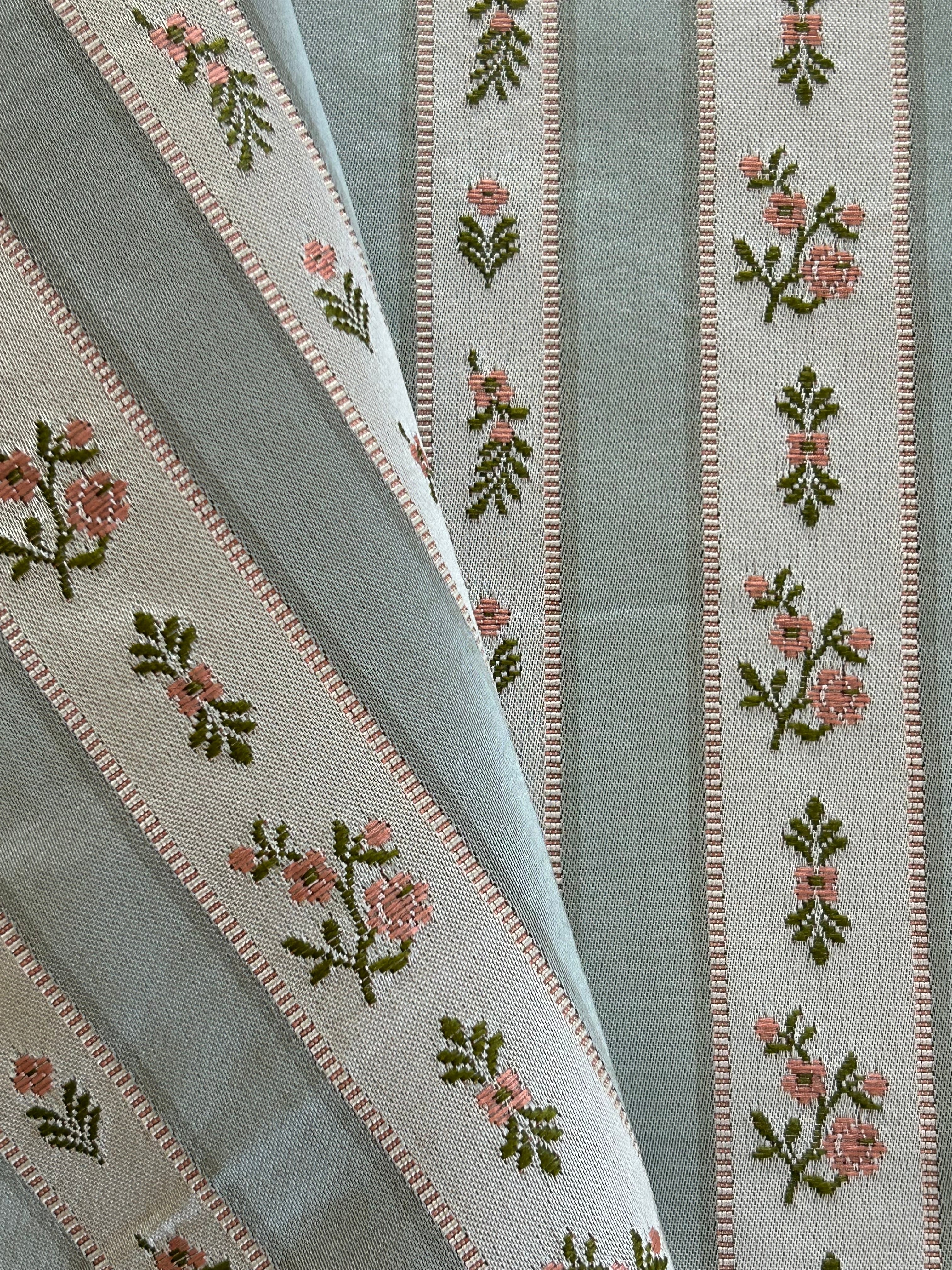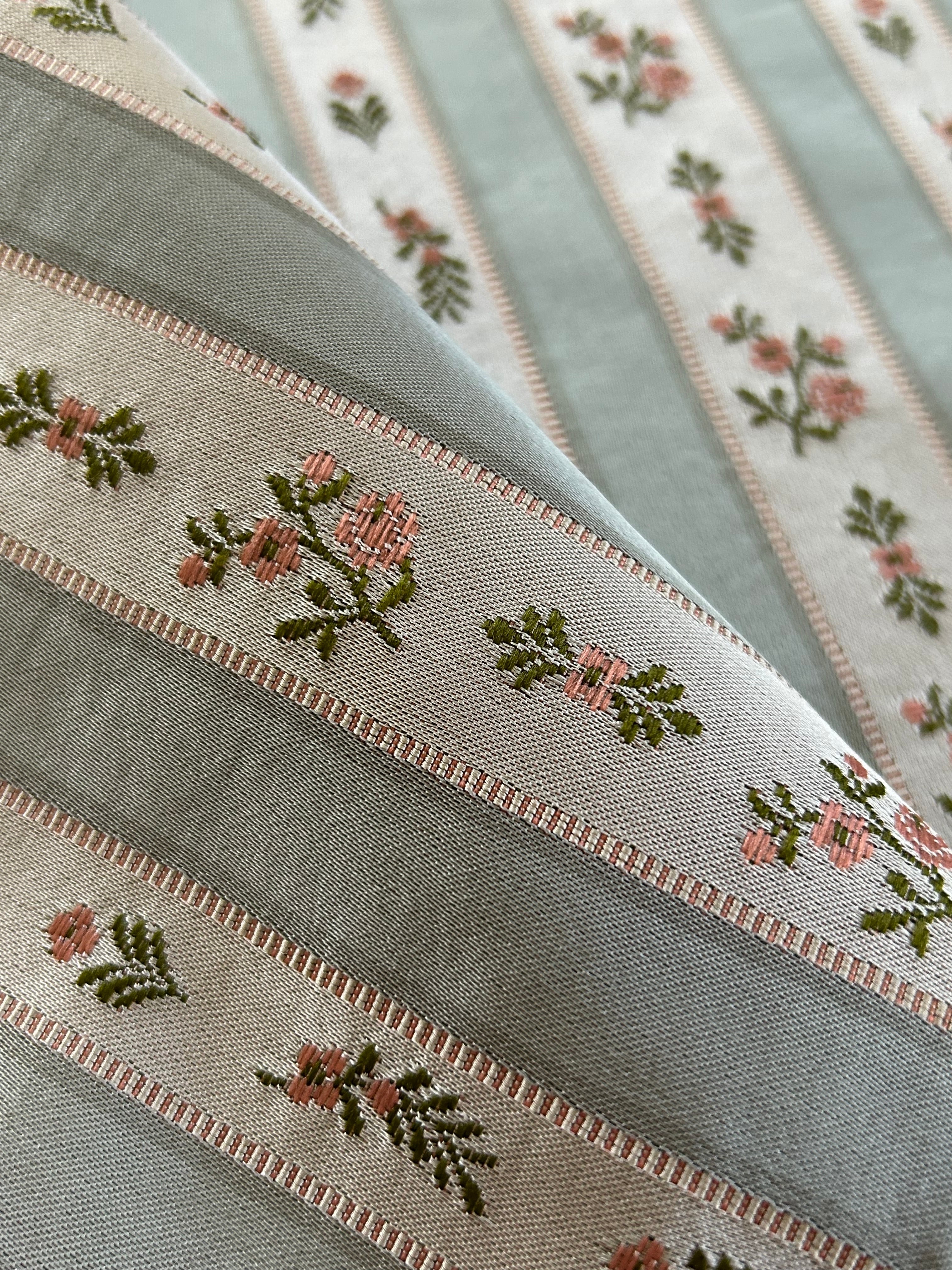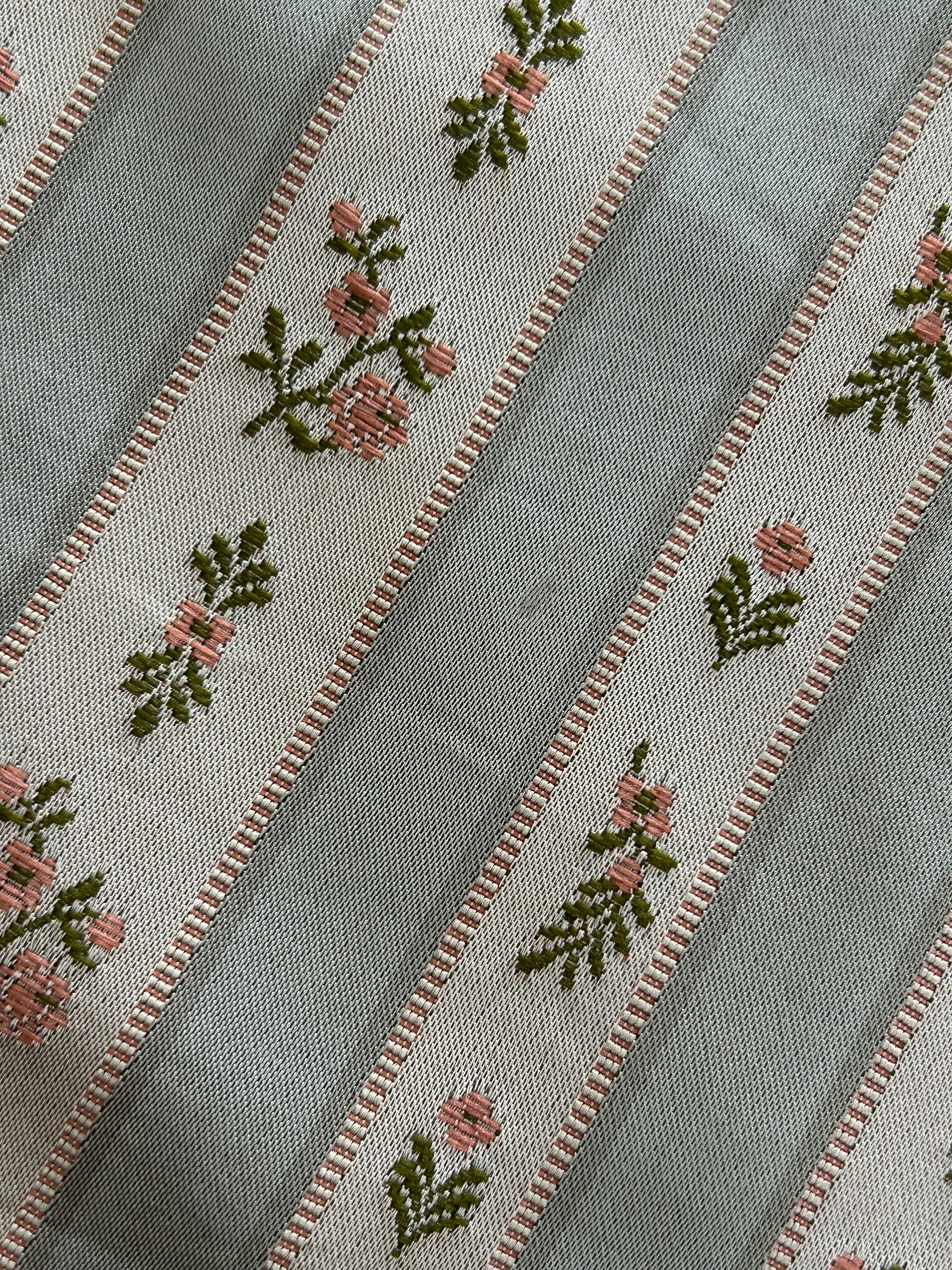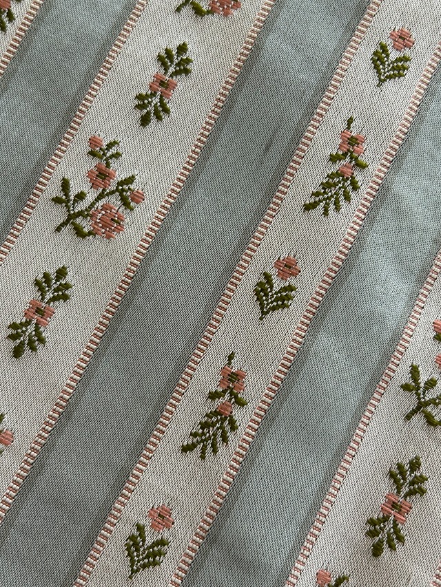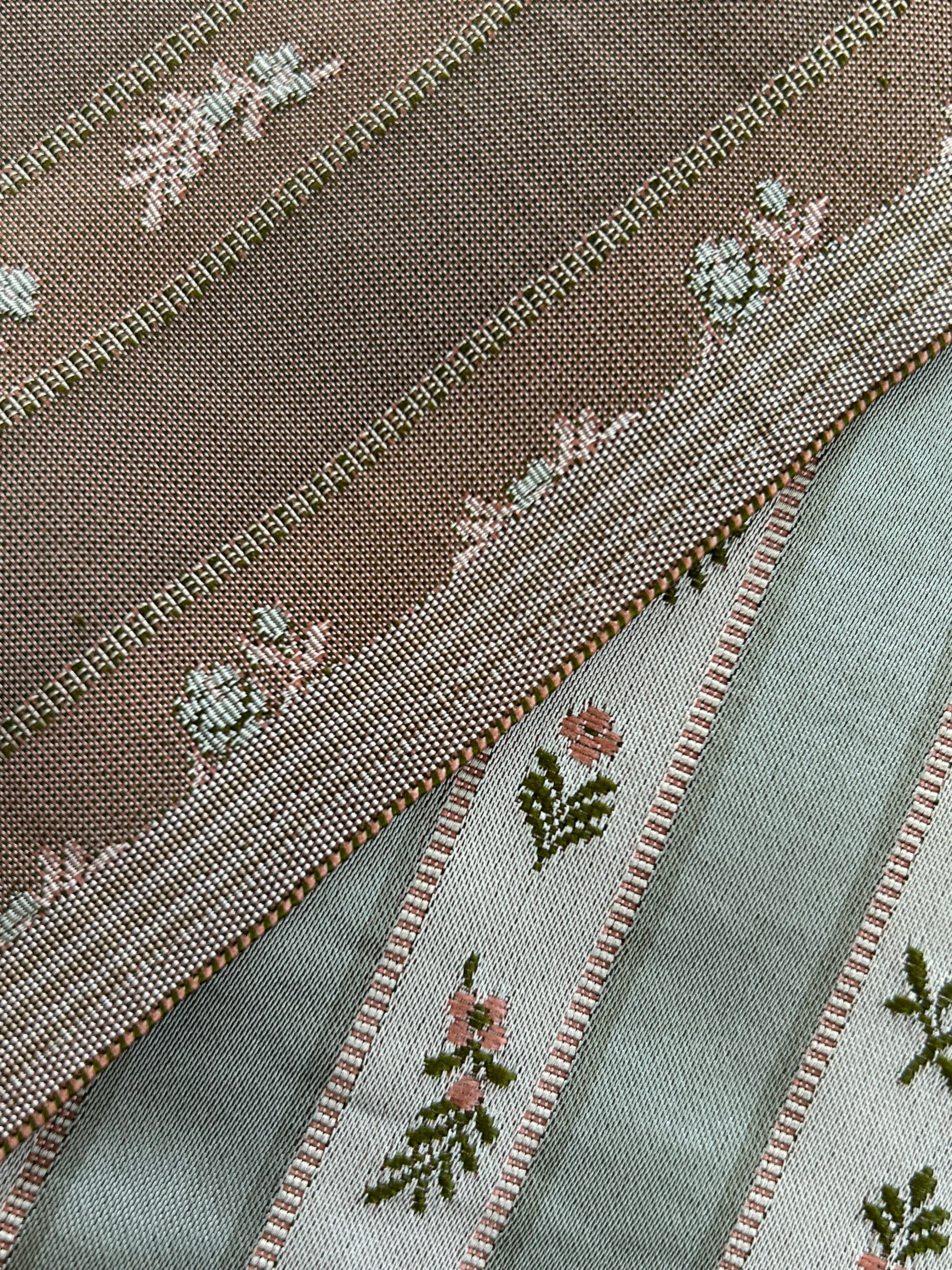 お花の織模様とストライプがエレガントでロマンチックなお生地です。