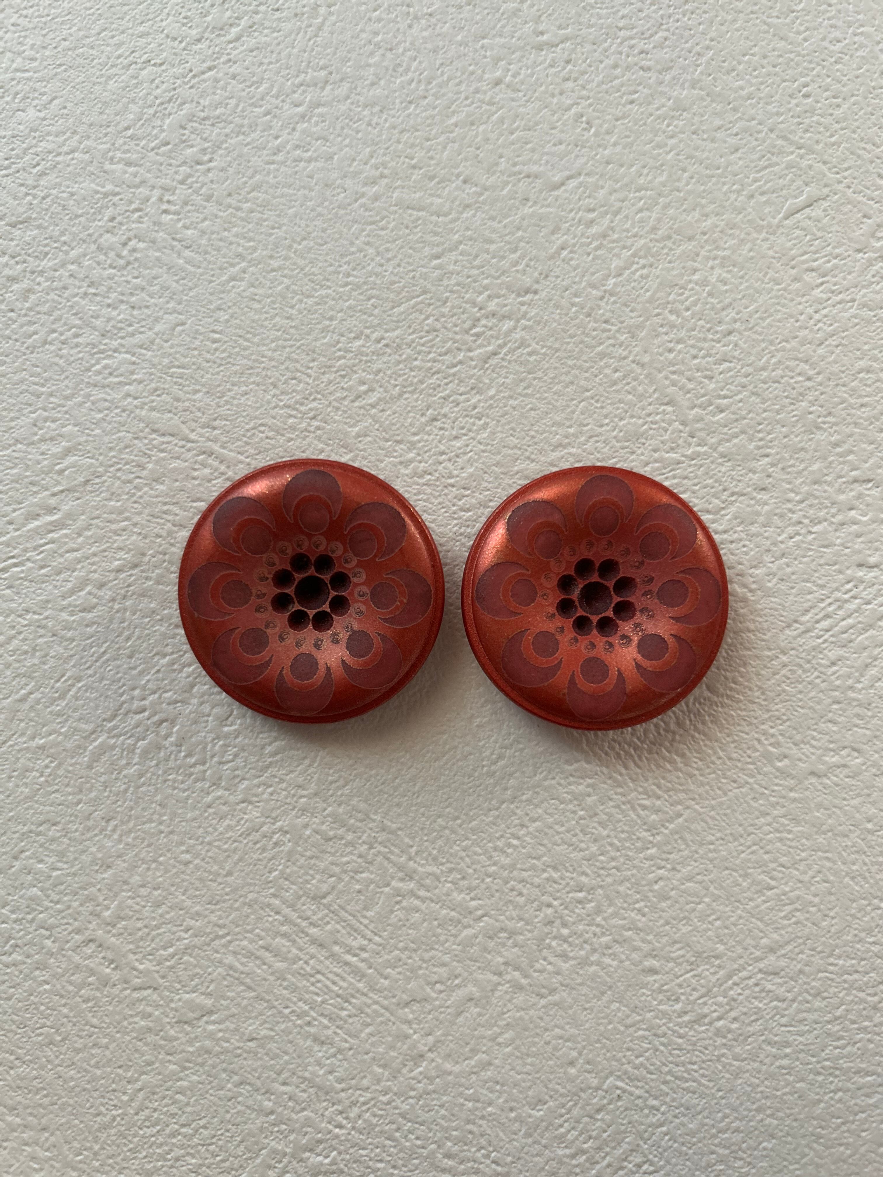 輸入デザインボタン 中華柄 チャイナ柄 花柄 メタリックカラー レッド系 33mm アクセサリーパーツ デコレーション材