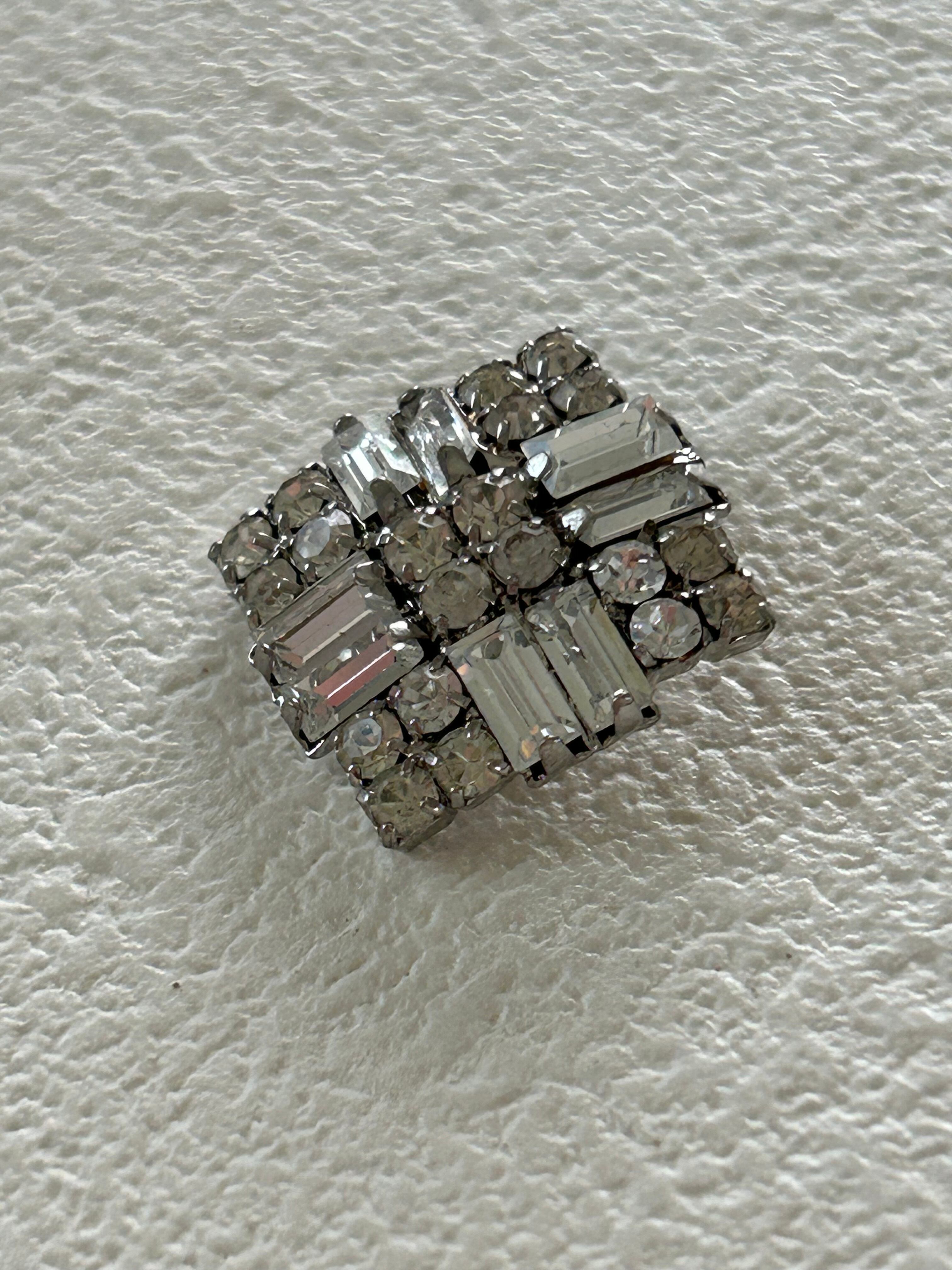 輸入デザインボタン スクウェア 16mm メタル×ストーン シルバー アクセサリーパーツ デコレーション材 カルトナージュ 飾りボタン エレガント