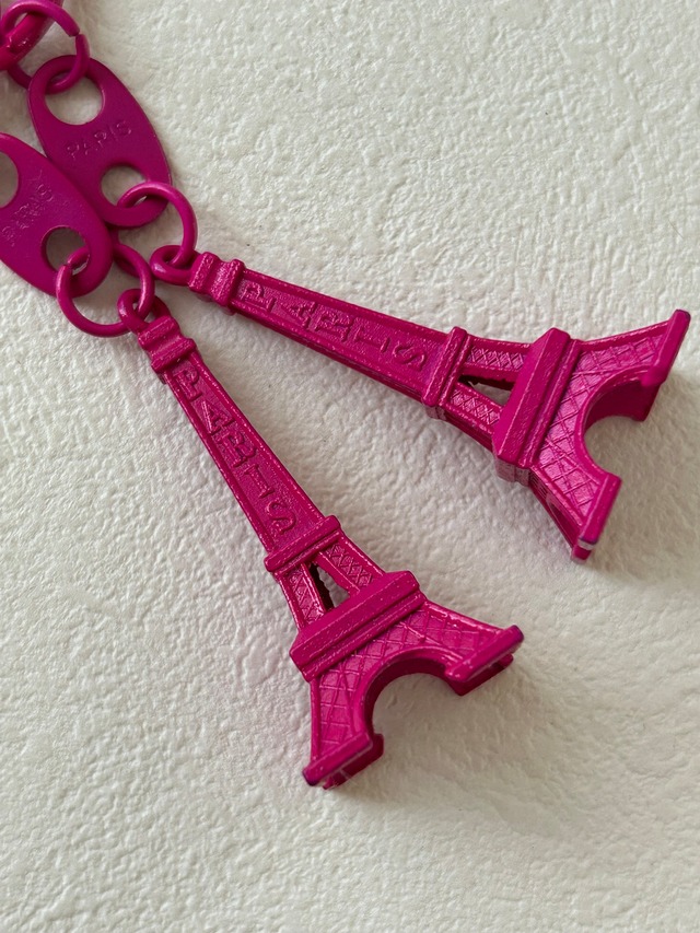 フューシャピンクのエッフェル塔でPARISの文字が刻印されています。