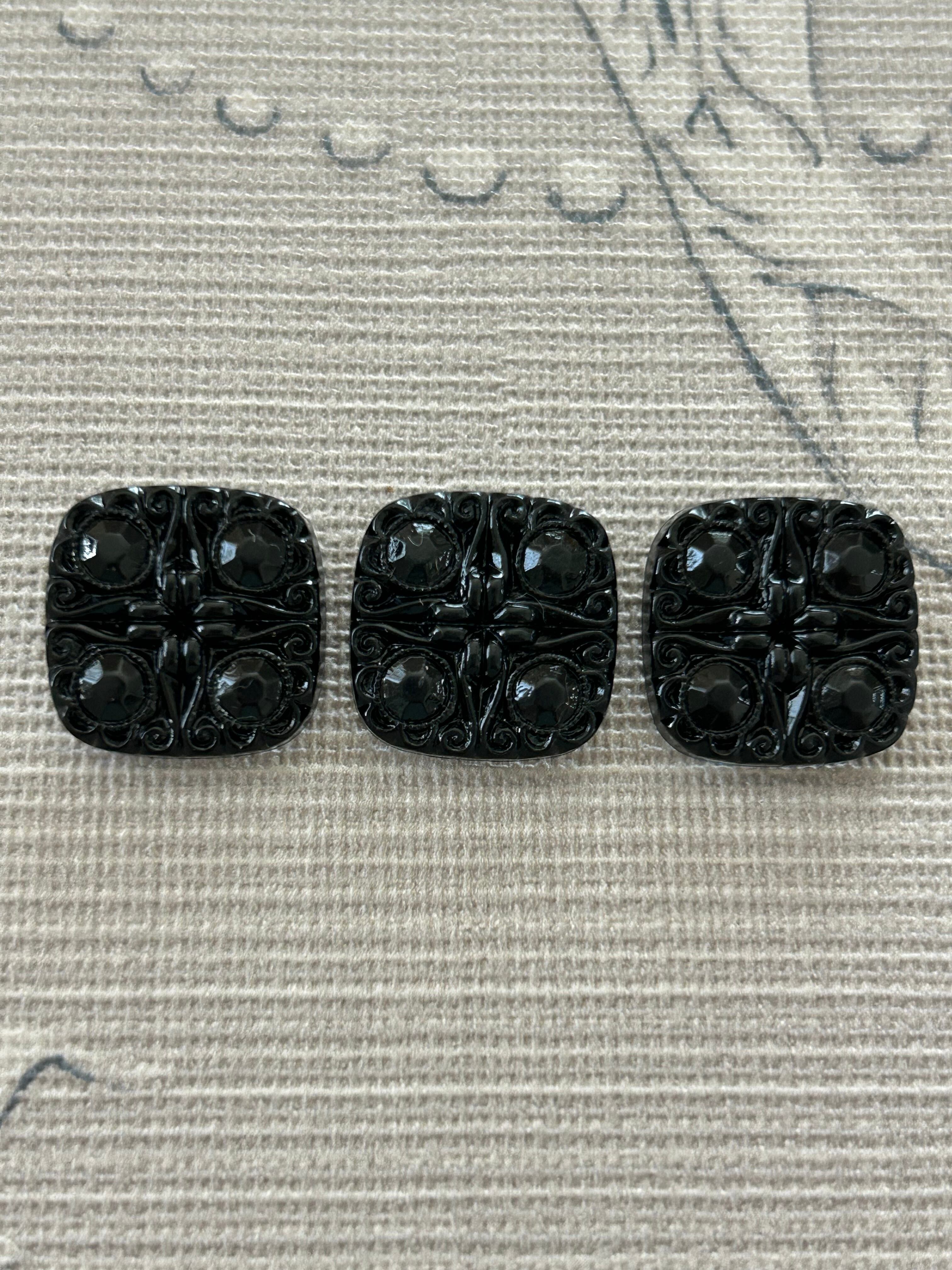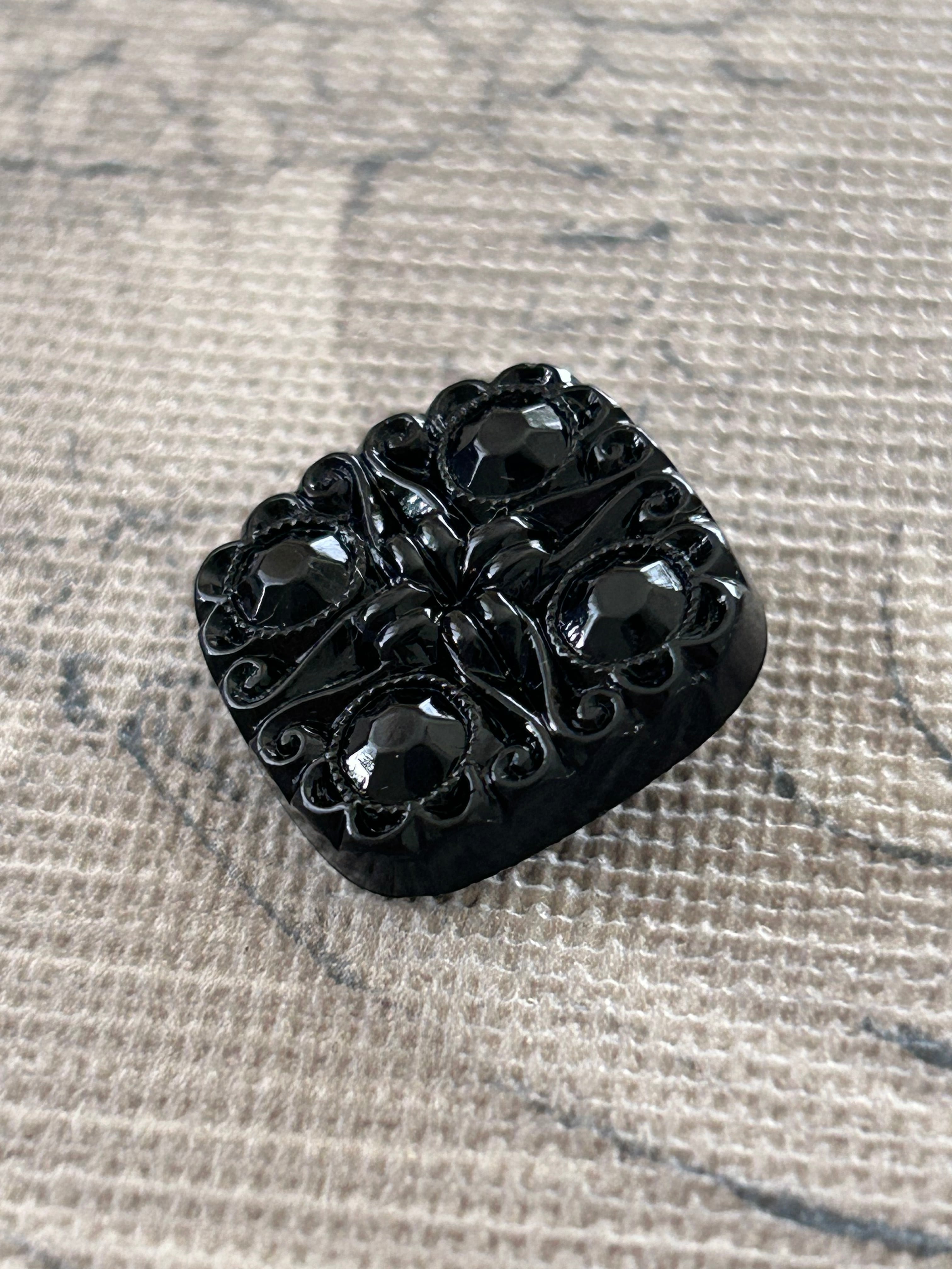 スクウェア型のボタンの表面に画像の様な彫りのような美しいデザイン。