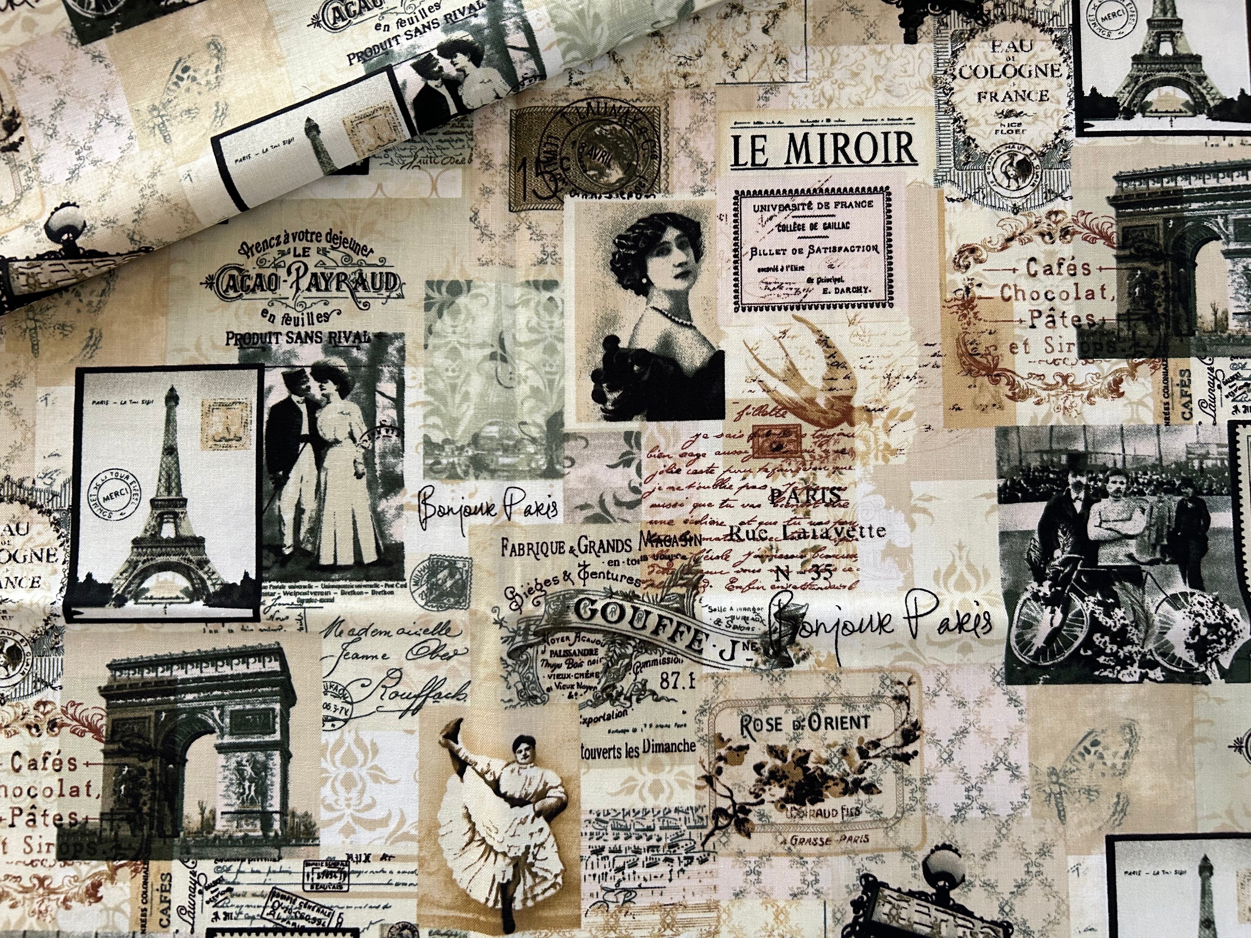 輸入コットンファブリック Paris柄 コラージュ USAファブリック Timeless Treasures カルトナージュ