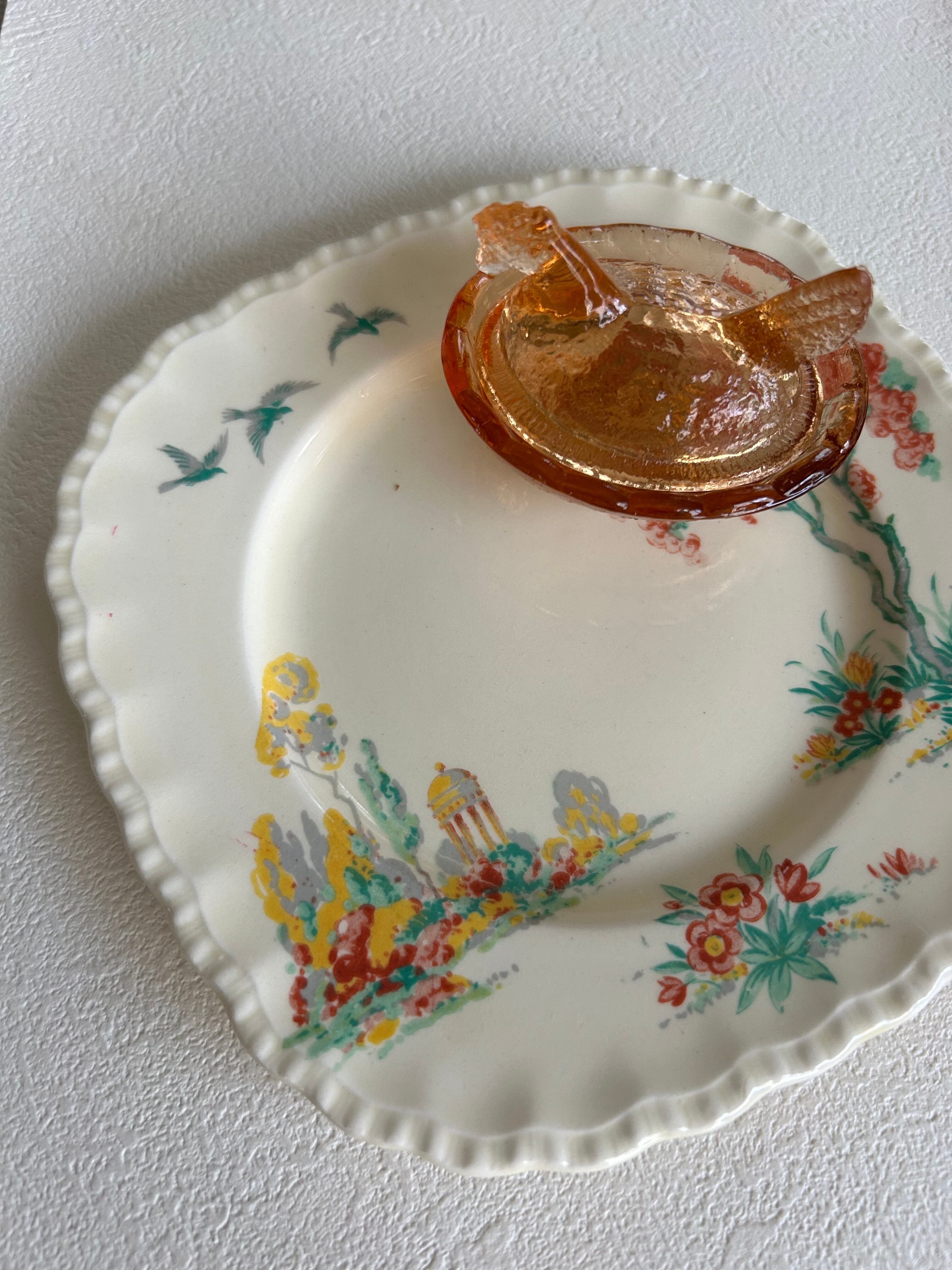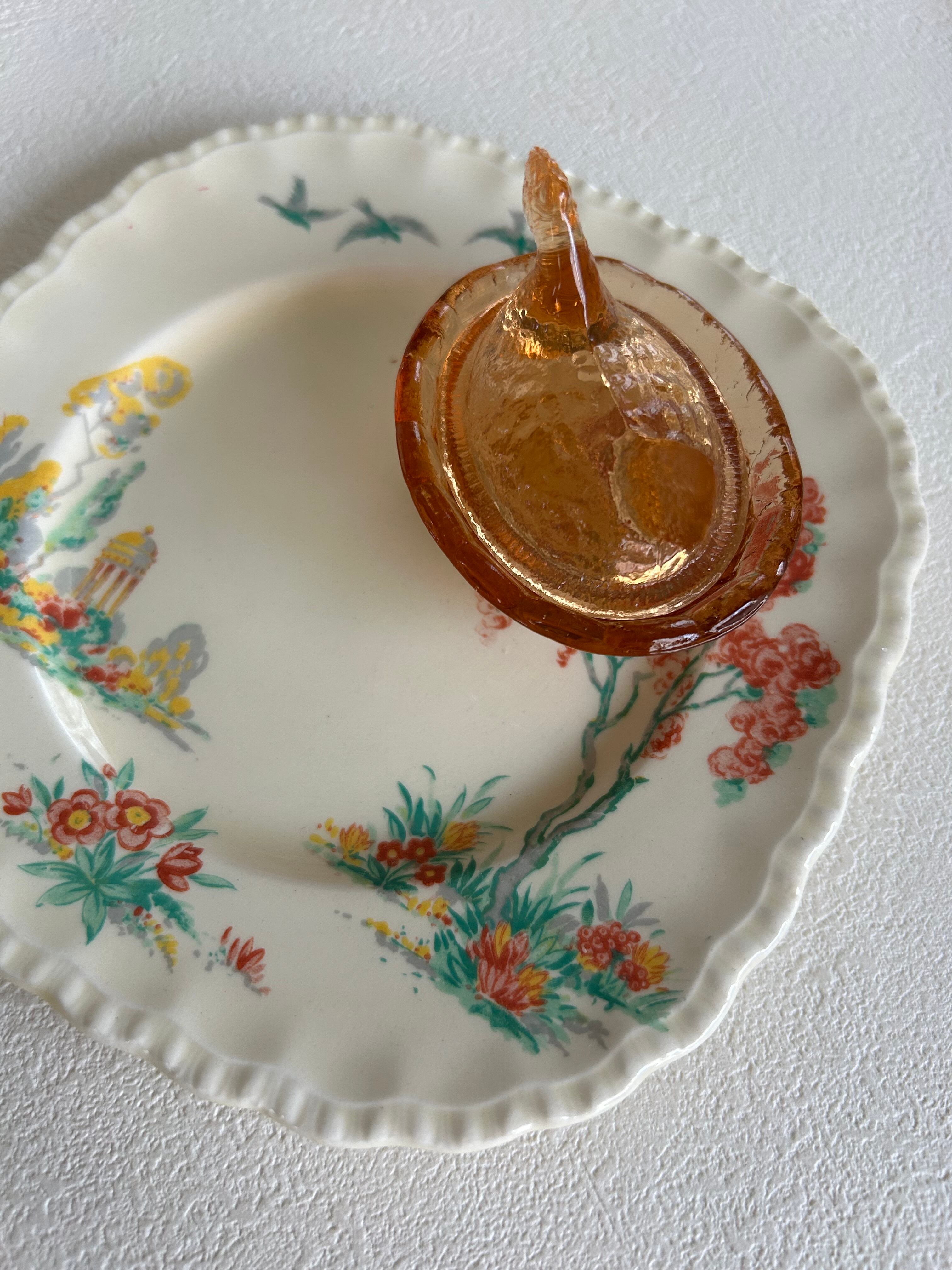 USA Vintage ヴィンテージ 小さなニワトリのSalt cellar お塩入れ スパイスディッシュ 小物入れ オブジェ インテリア小物 アンバーカラー