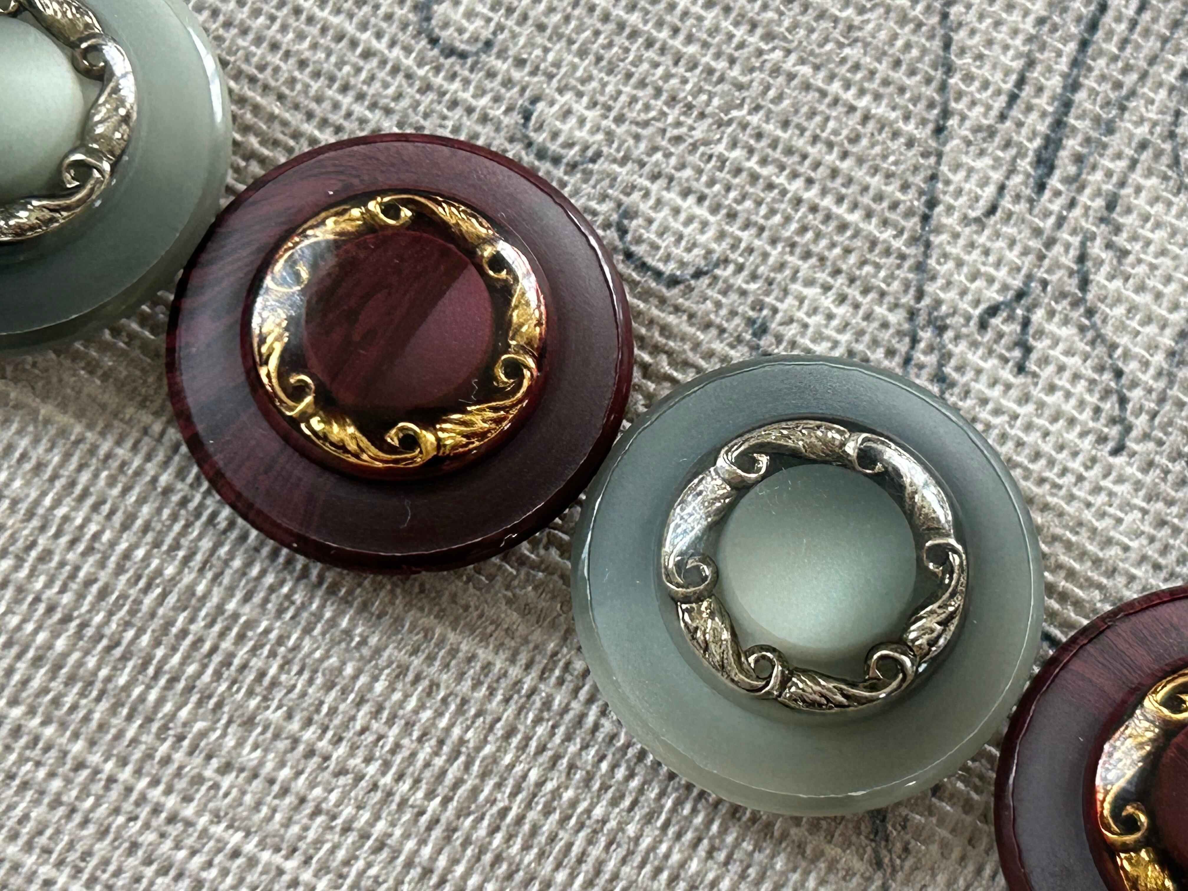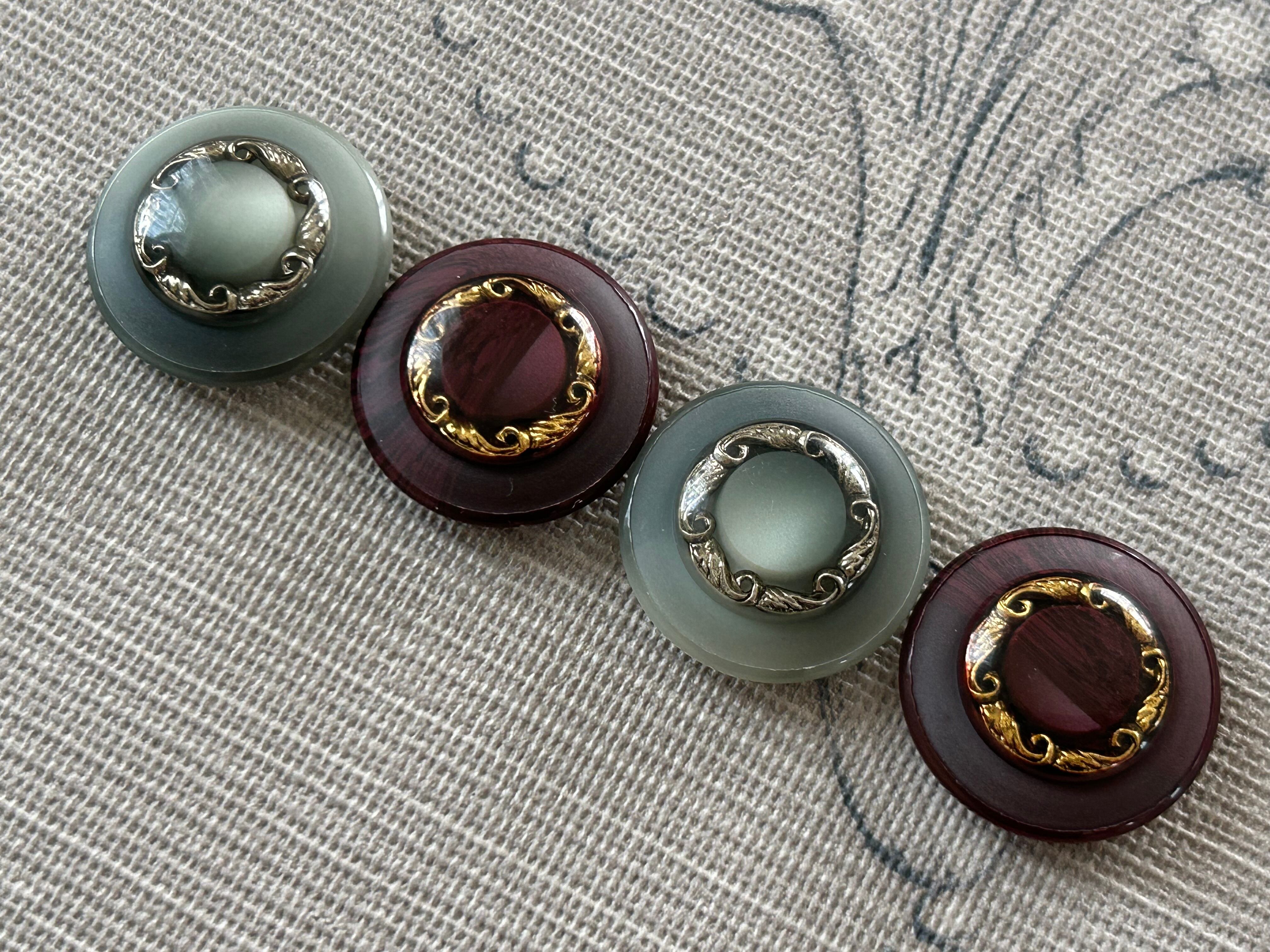 Japanese Vintage ボタン パープル×ゴールド/ブルーグレー×シルバー 25mm 昭和レトロ アクセサリーパーツ 装飾材 カルトナージュ