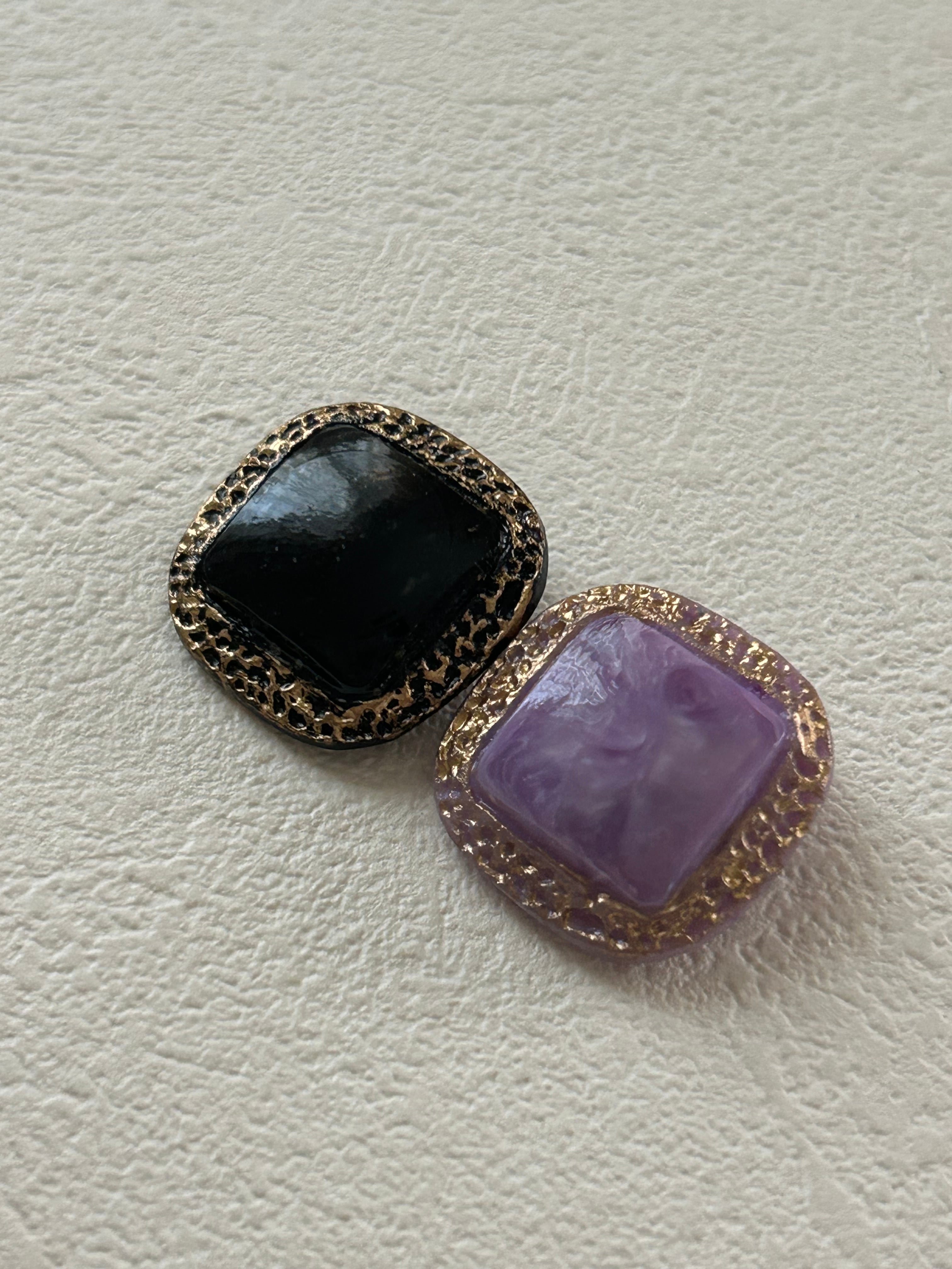 Japanese Vintage ボタン 角無しスクウェア 210mm 藤色/黒色 ゴールド 昭和レトロ アクセサリーパーツ カルトナージュ デコレーション