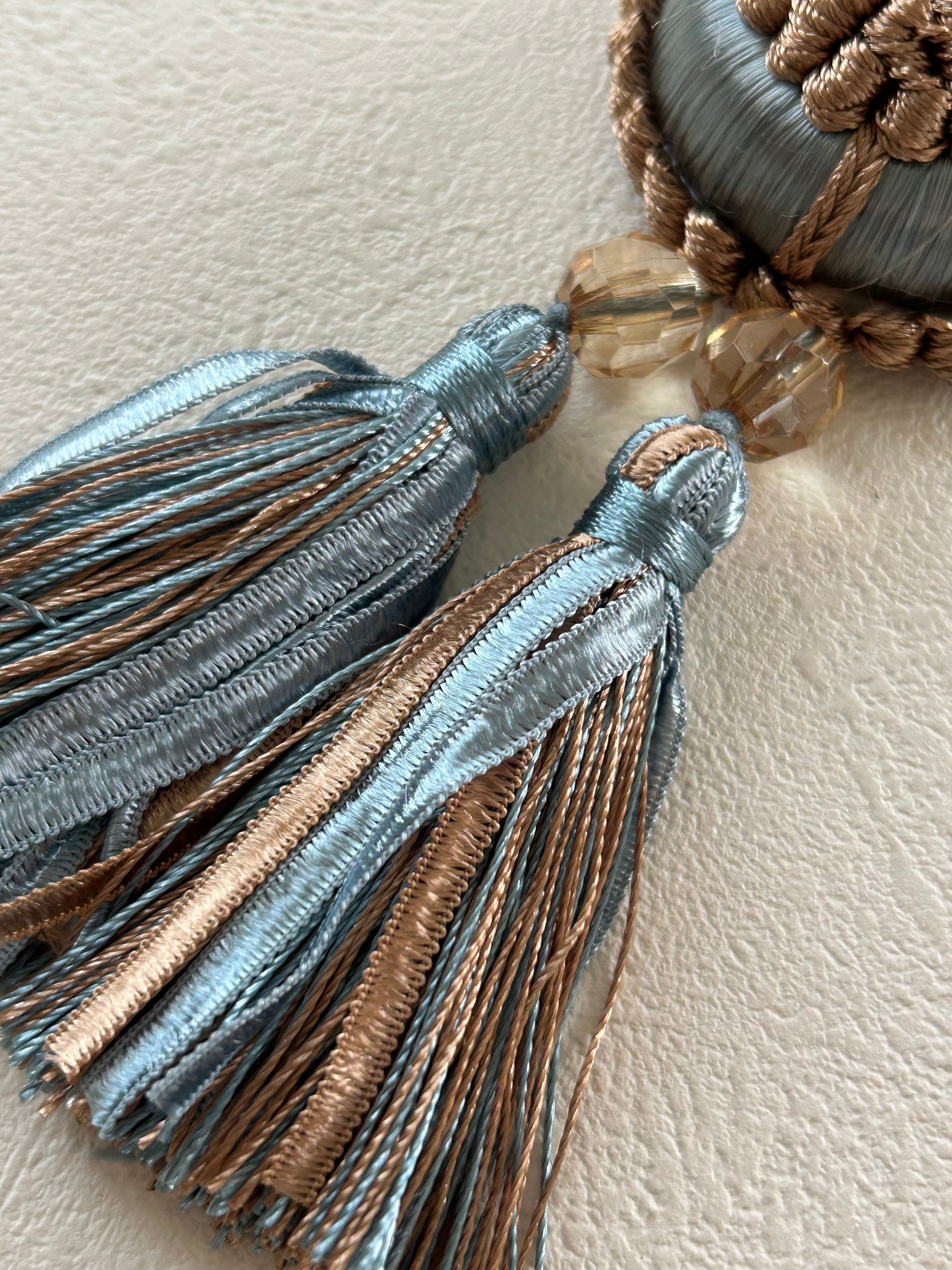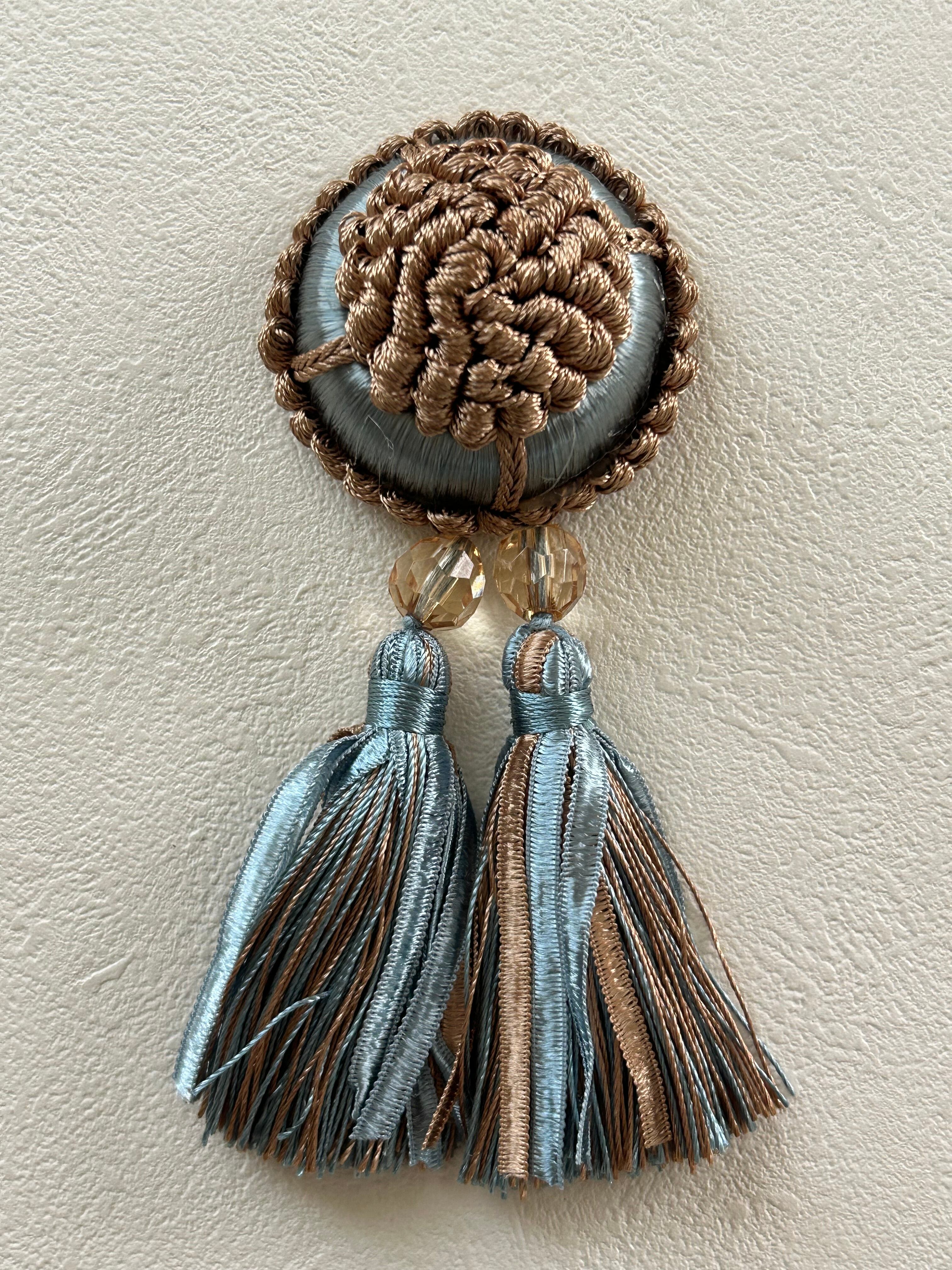 タッセルのトップにはアンバーカラーのビーズのデコレーション。