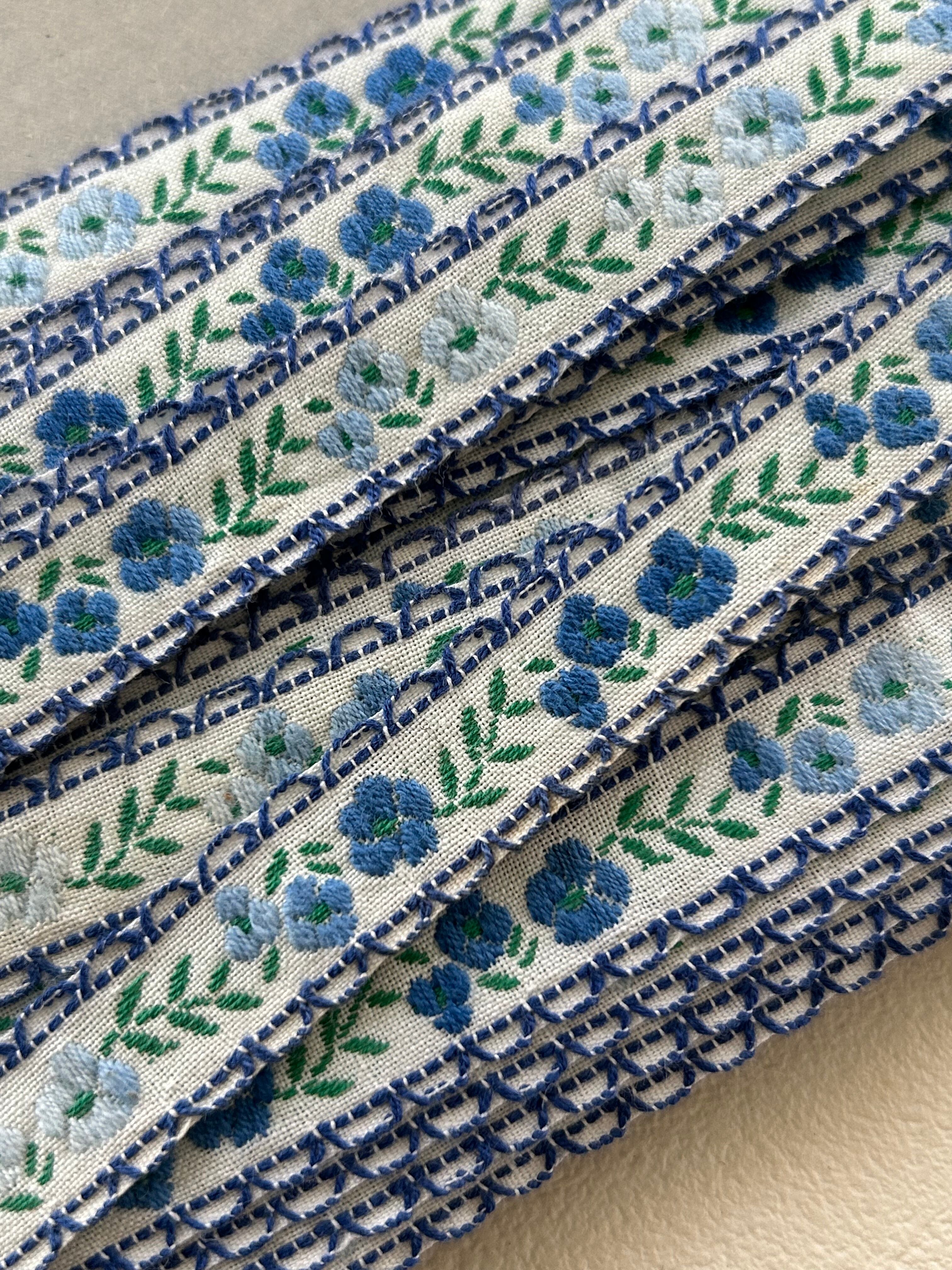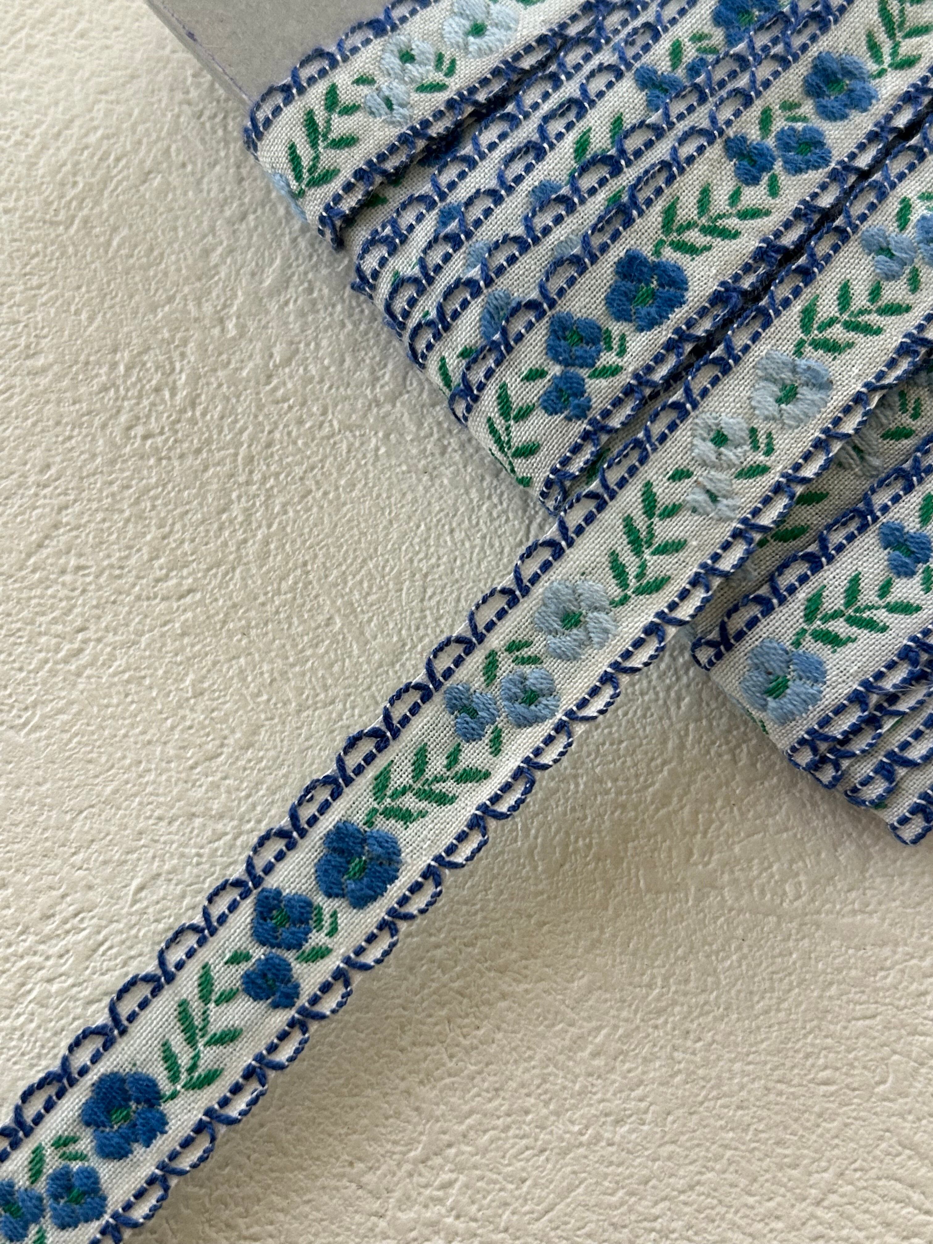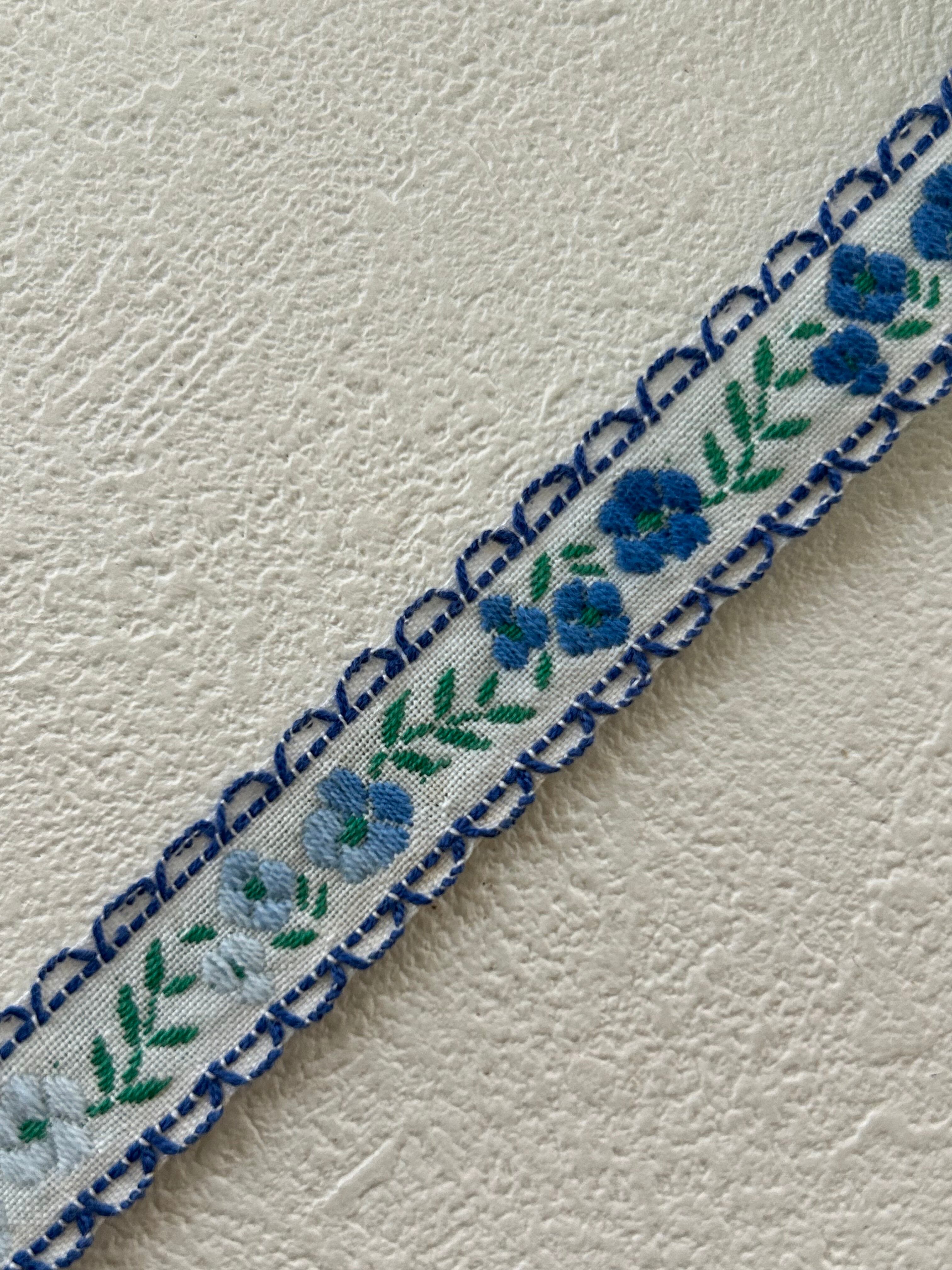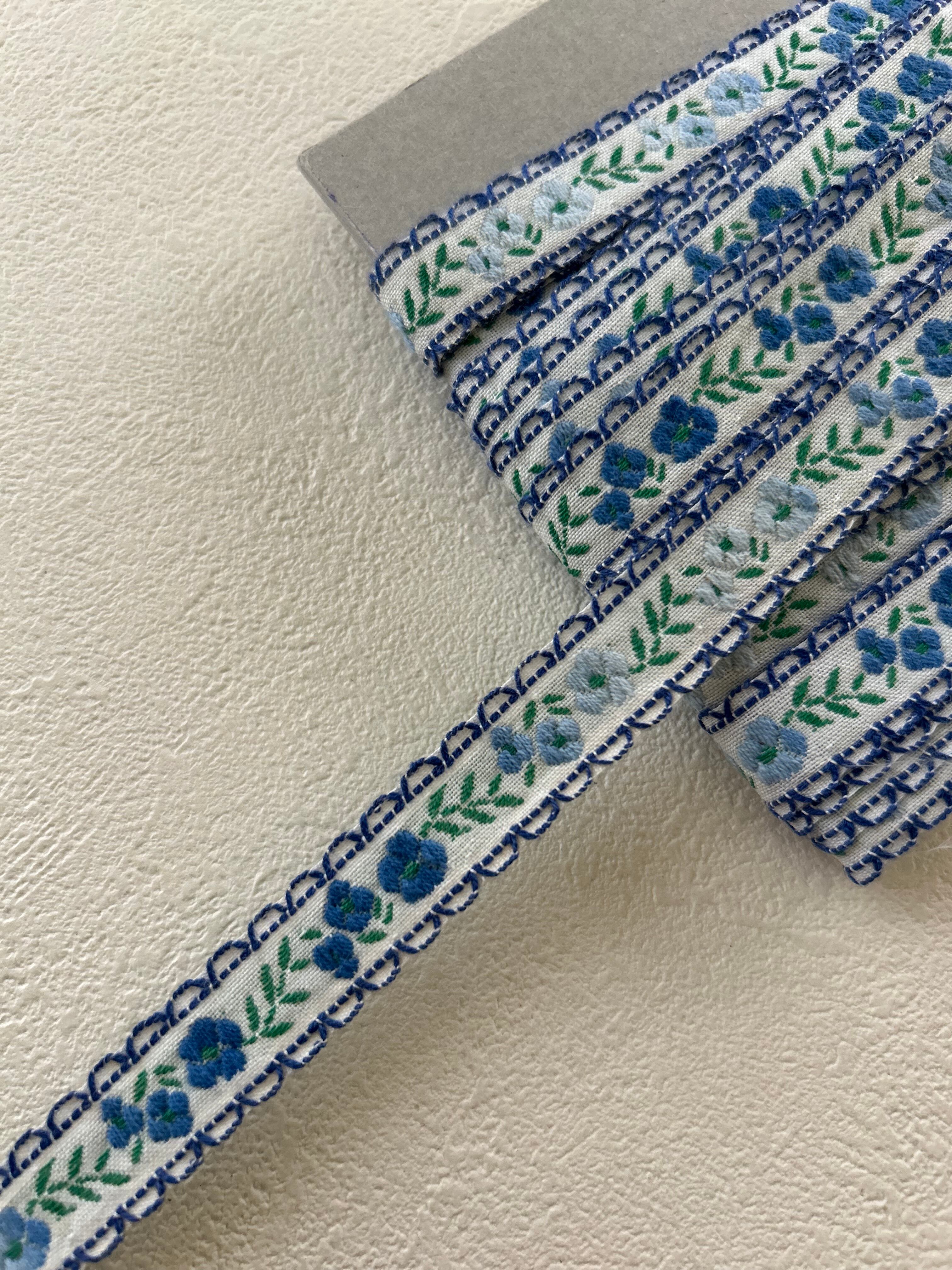 フランスVintage Ruban ヴィンテージリボン ブルーの小花 15mm カルトナージュ デコレーション材