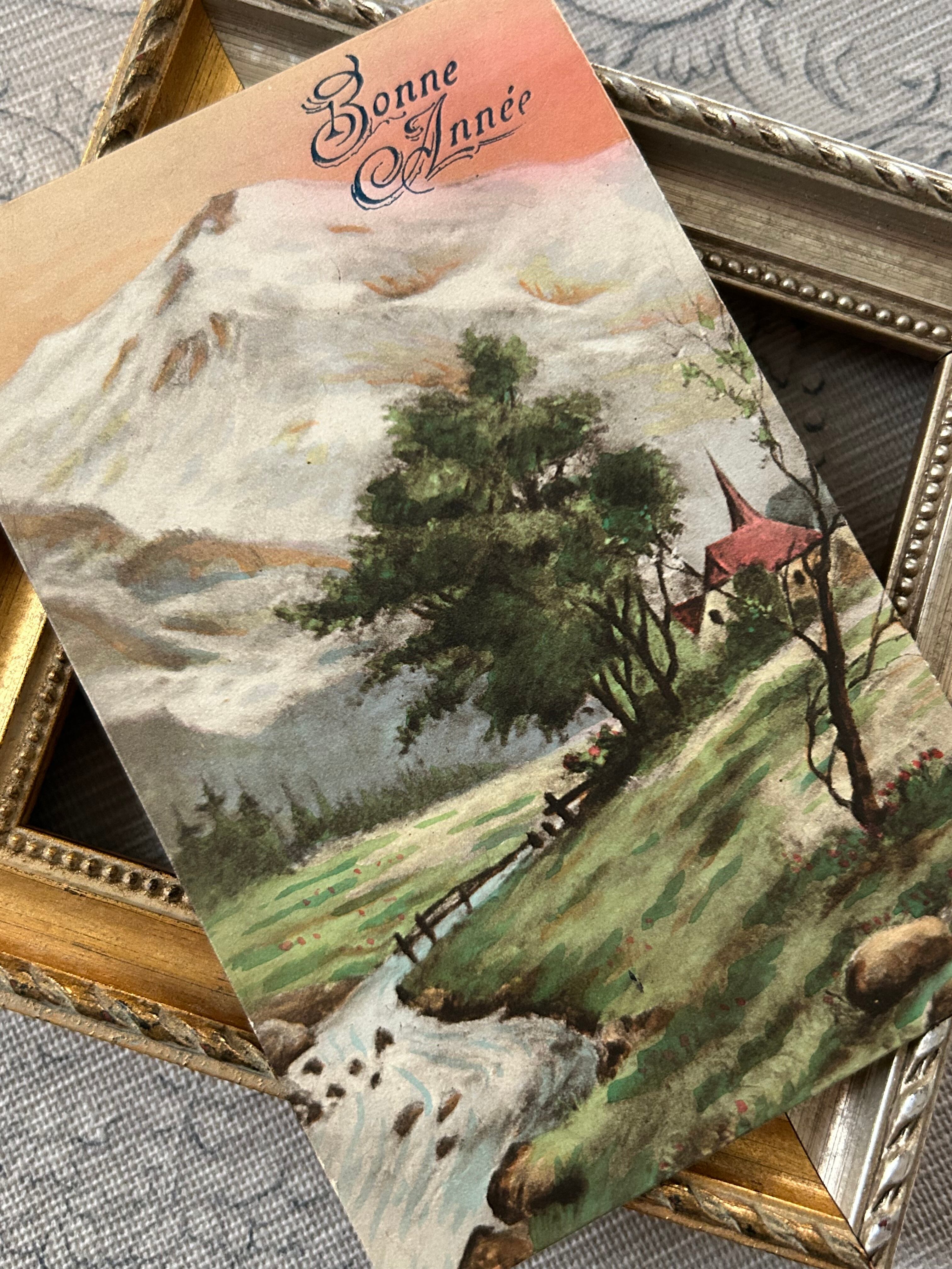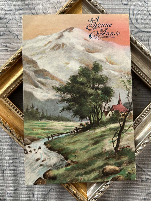 アンティークポストカード Bonne Annee 風景 フランス エンボス 額装 インテリア 撮影小物 BE