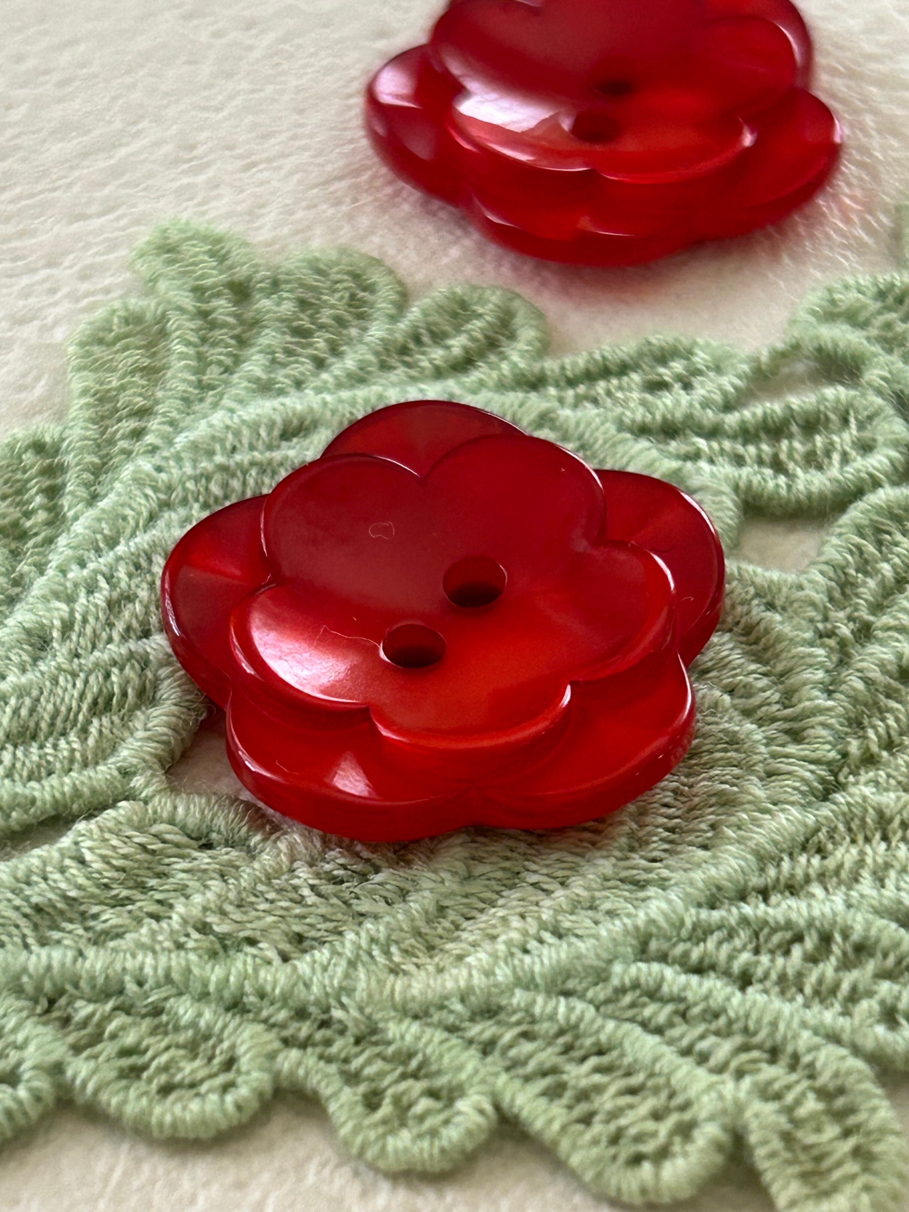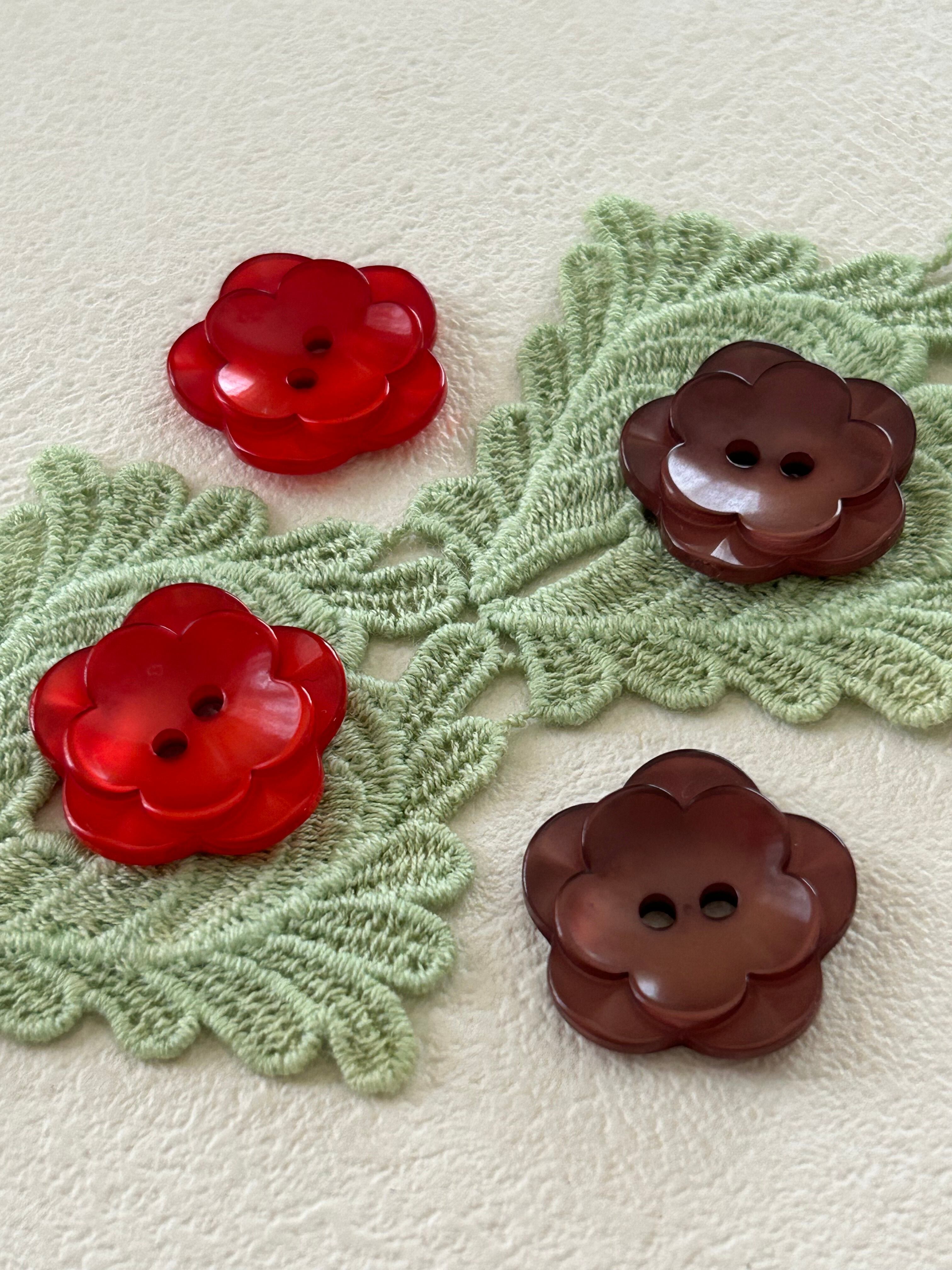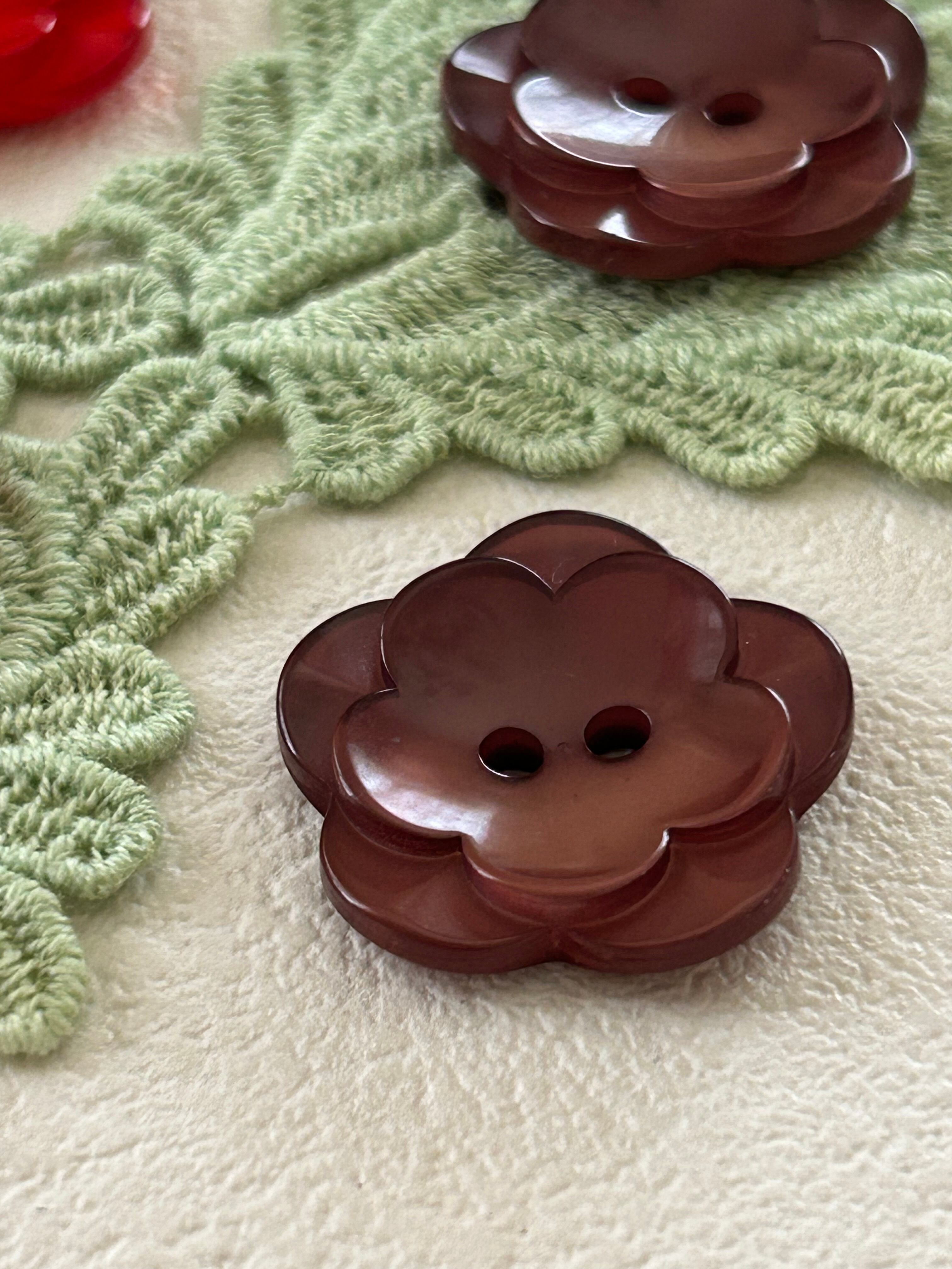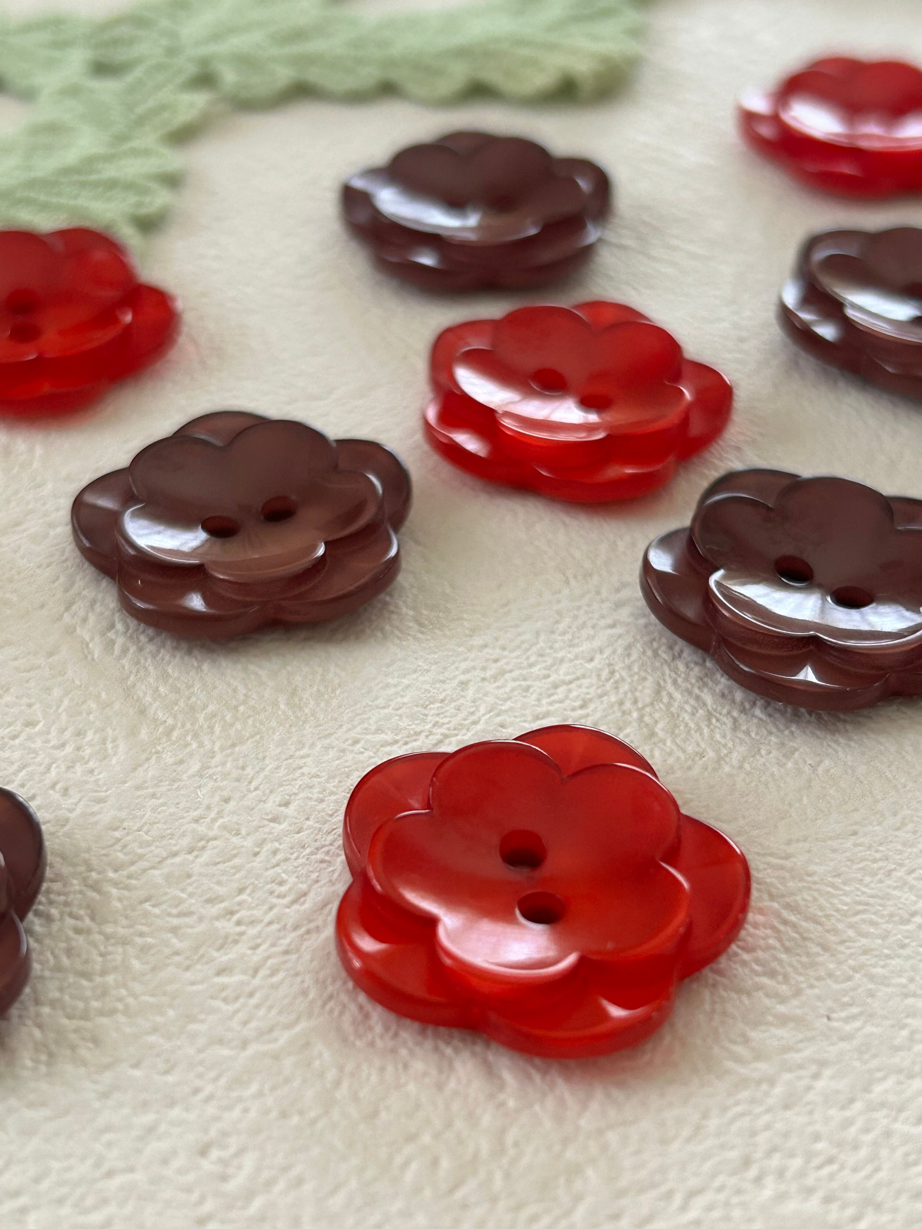 輸入デザインボタン フラワー レッド/ブラウン 5個セット プラスチックボタン アクセサリーパーツ デコレーション材