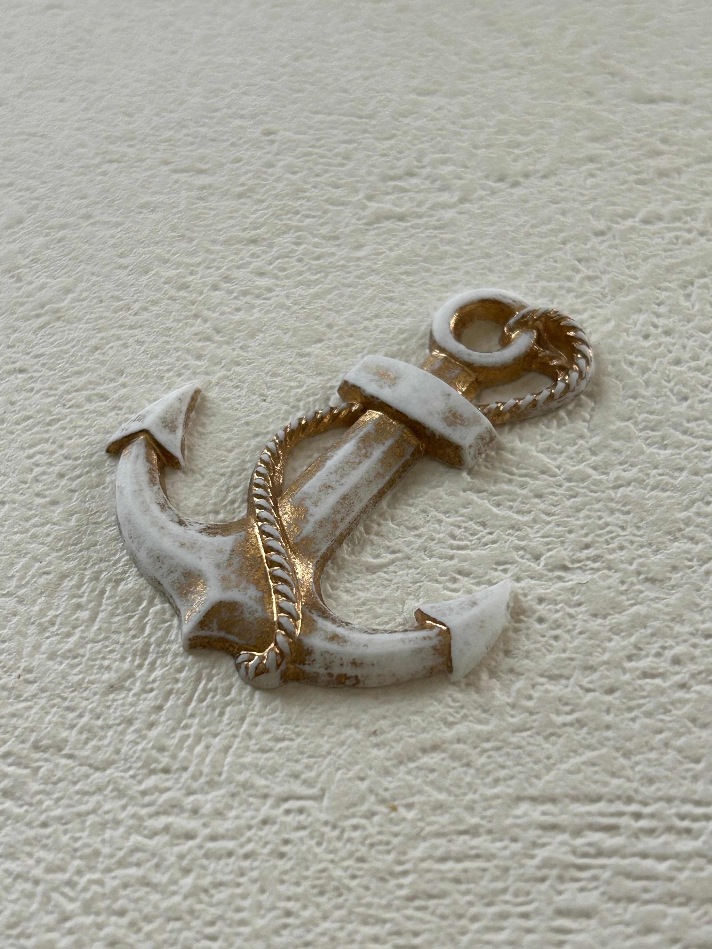 ドイツVintage ヴィンテージパーツ アンカー 碇 イカリ プラスチック ホワイト×ゴールド チャーム アクセサリーパーツ デコレーション材 マリン
