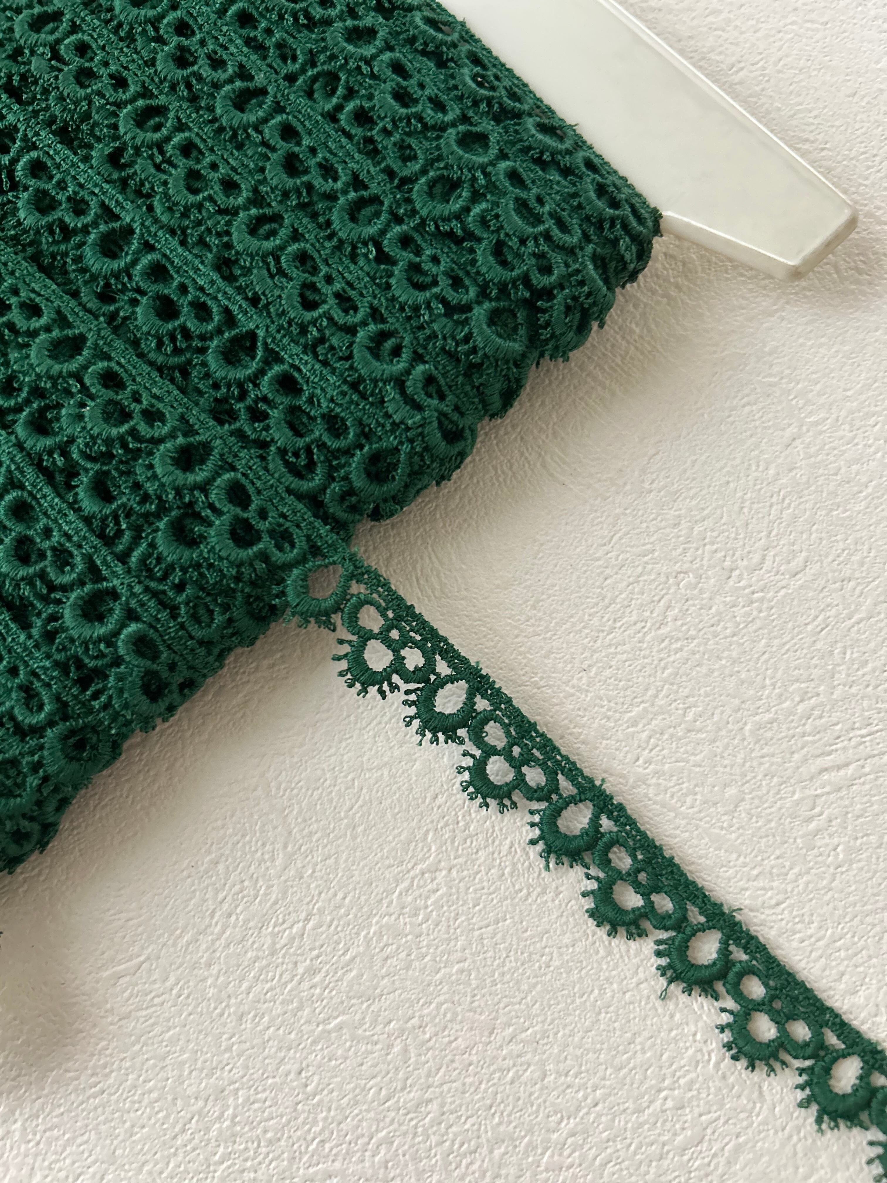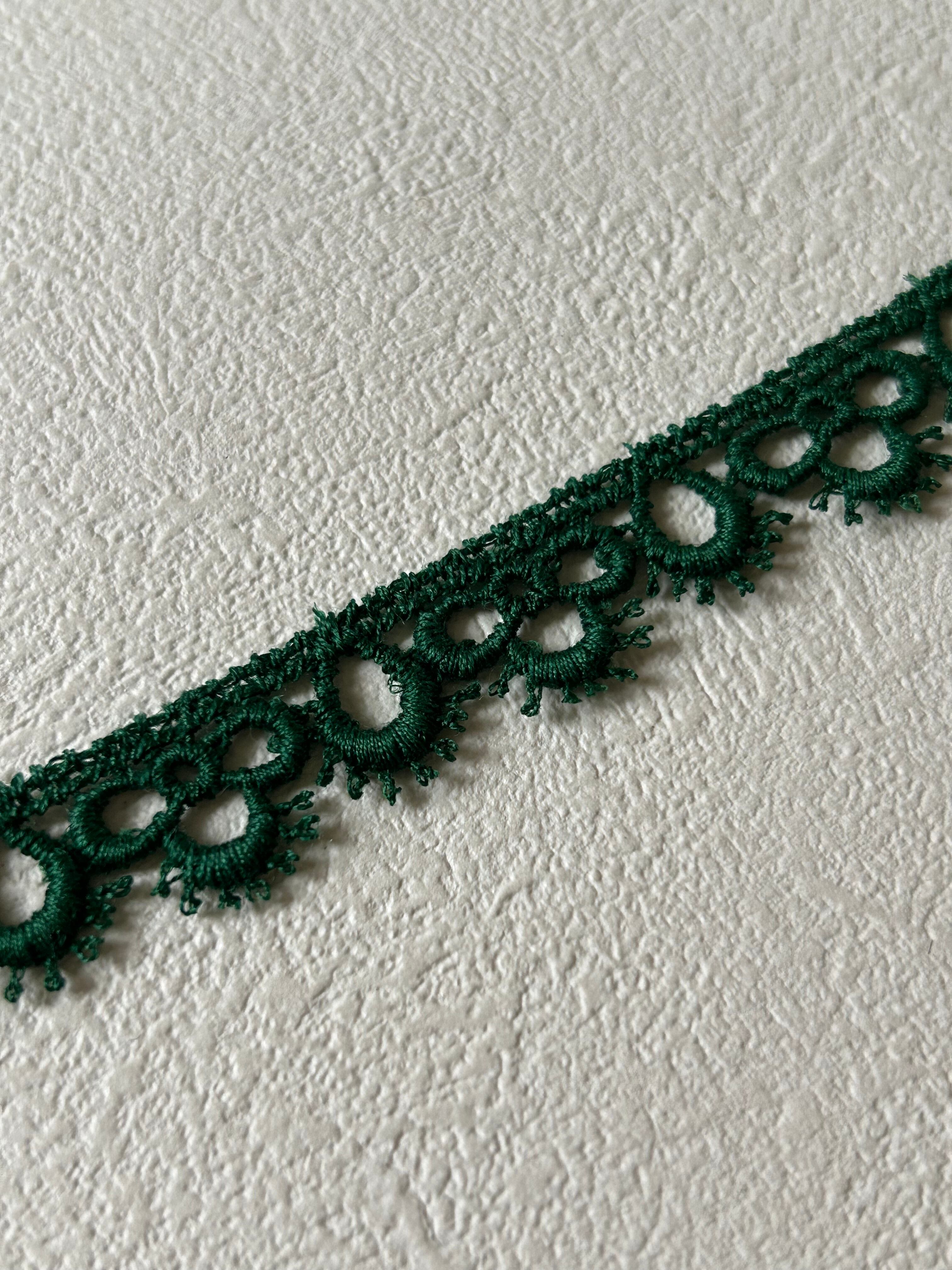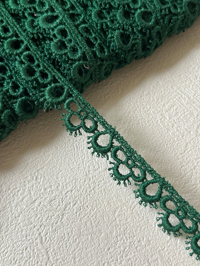 深みのあるグリーン。可愛いデザインのレースですが深いグリーンカラーが甘さをおさえ上品で落ち着いた風合いに。