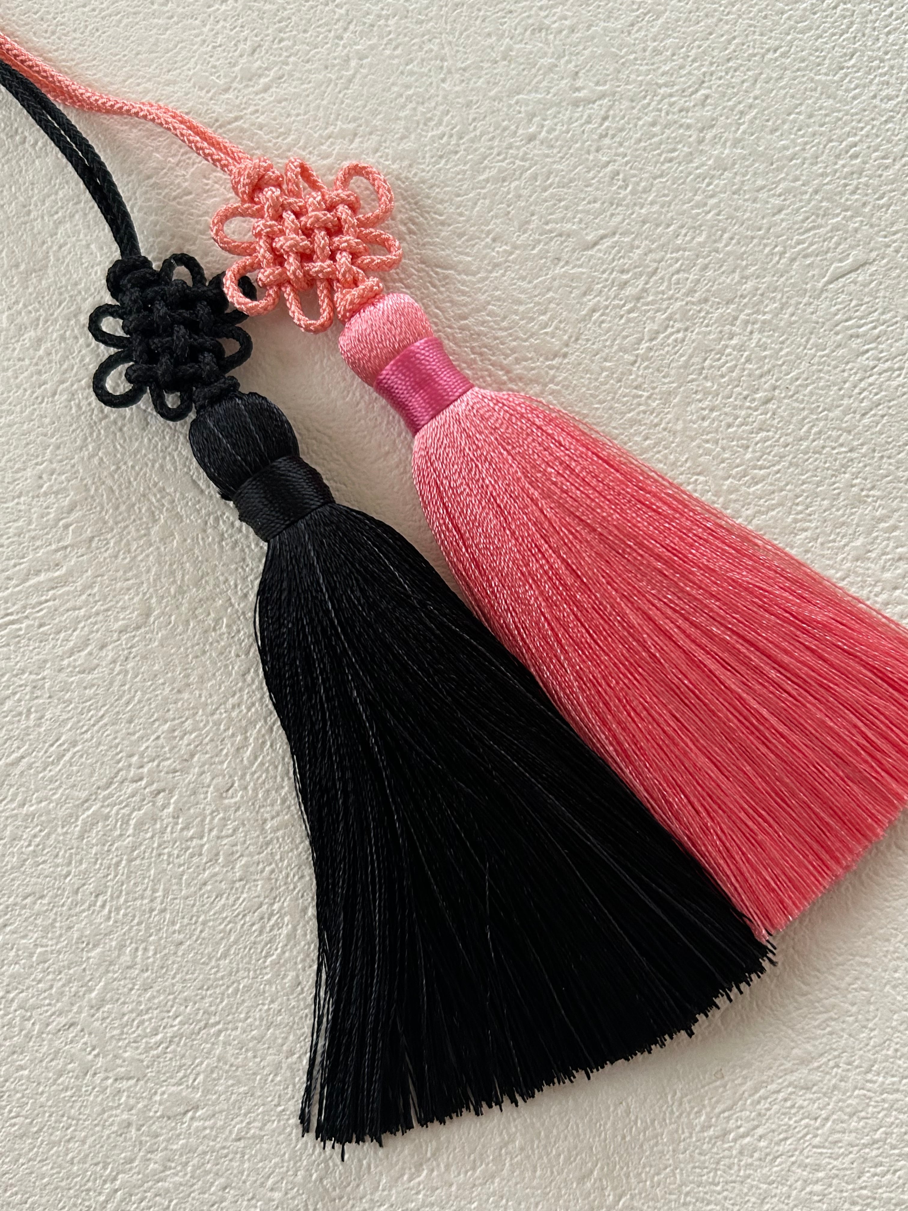 輸入デザインタッセル 中国結び チャイナ風 中華風 ピンク/ブラック カルトナージュ インテリアタッセル アクセサリーパーツ チャーム