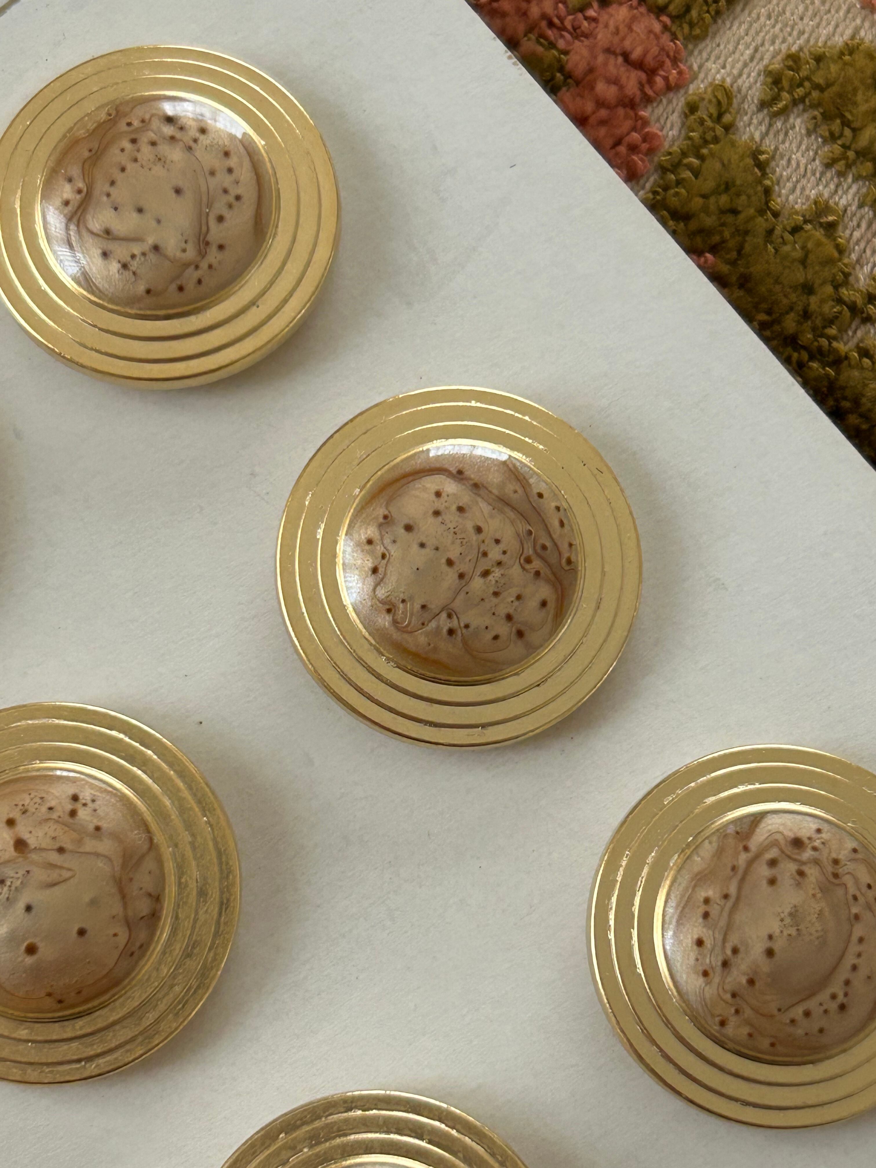 フランス Vintage ヴィンテージボタン カボション パープル/ベージュ マットゴールド 22mm プラスチック アクセサリーパーツ デコレーション材