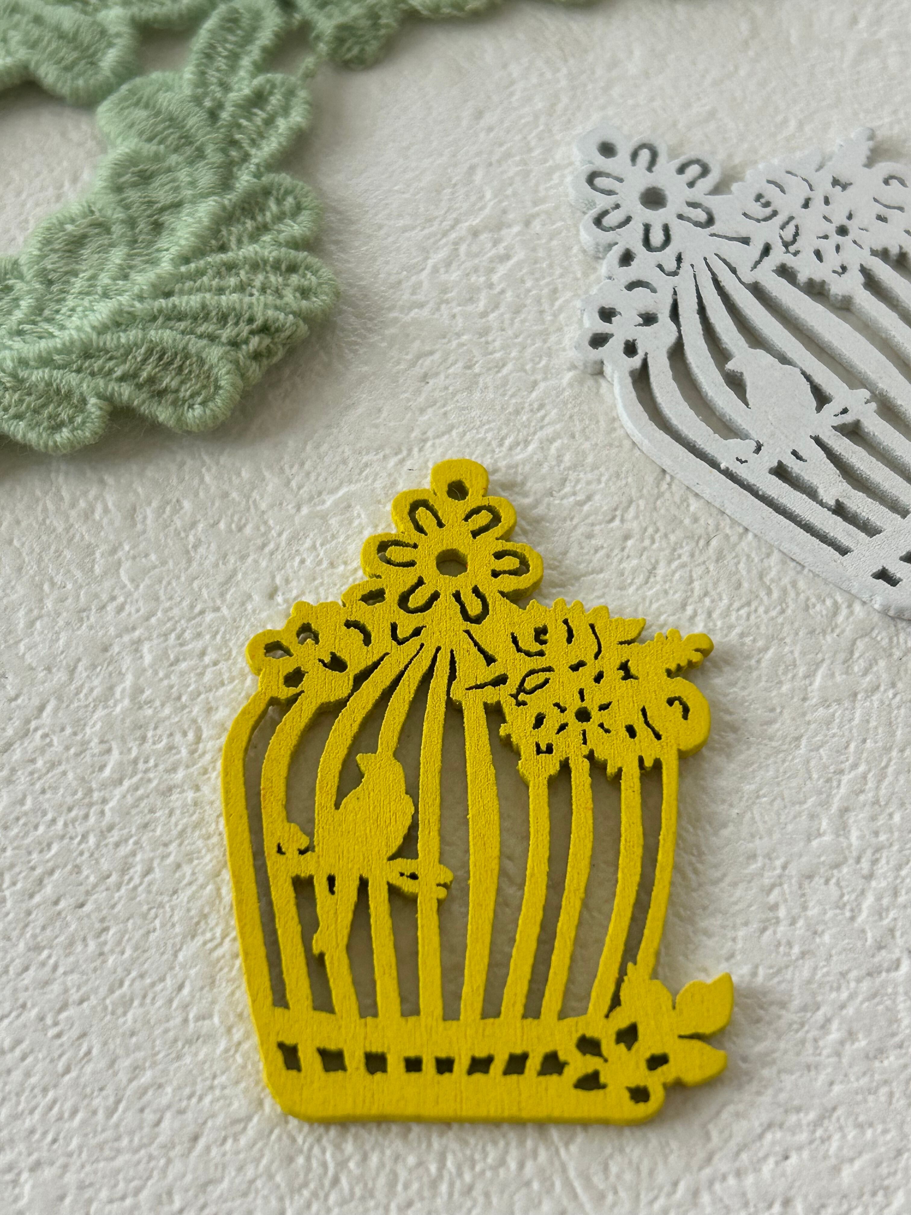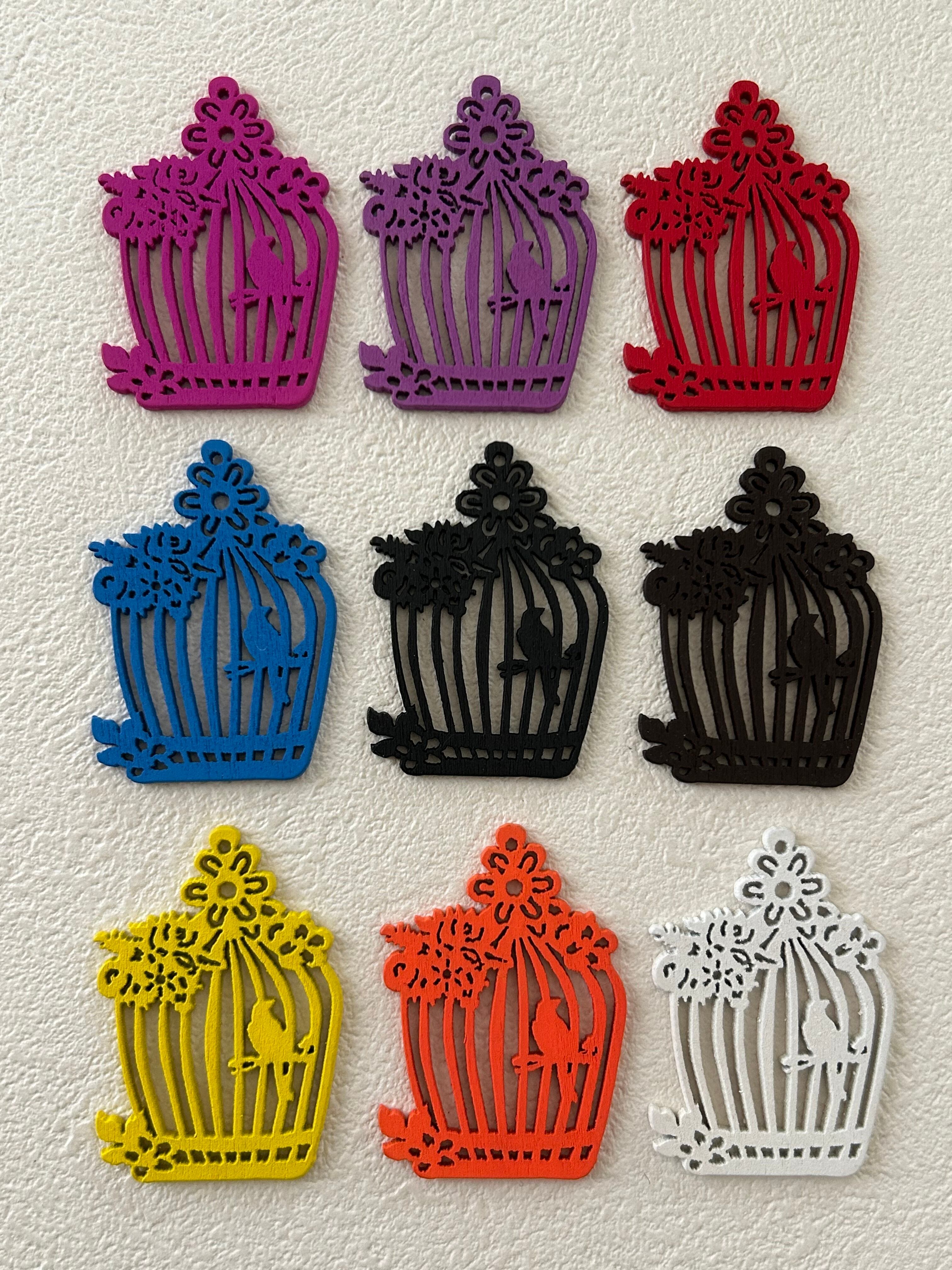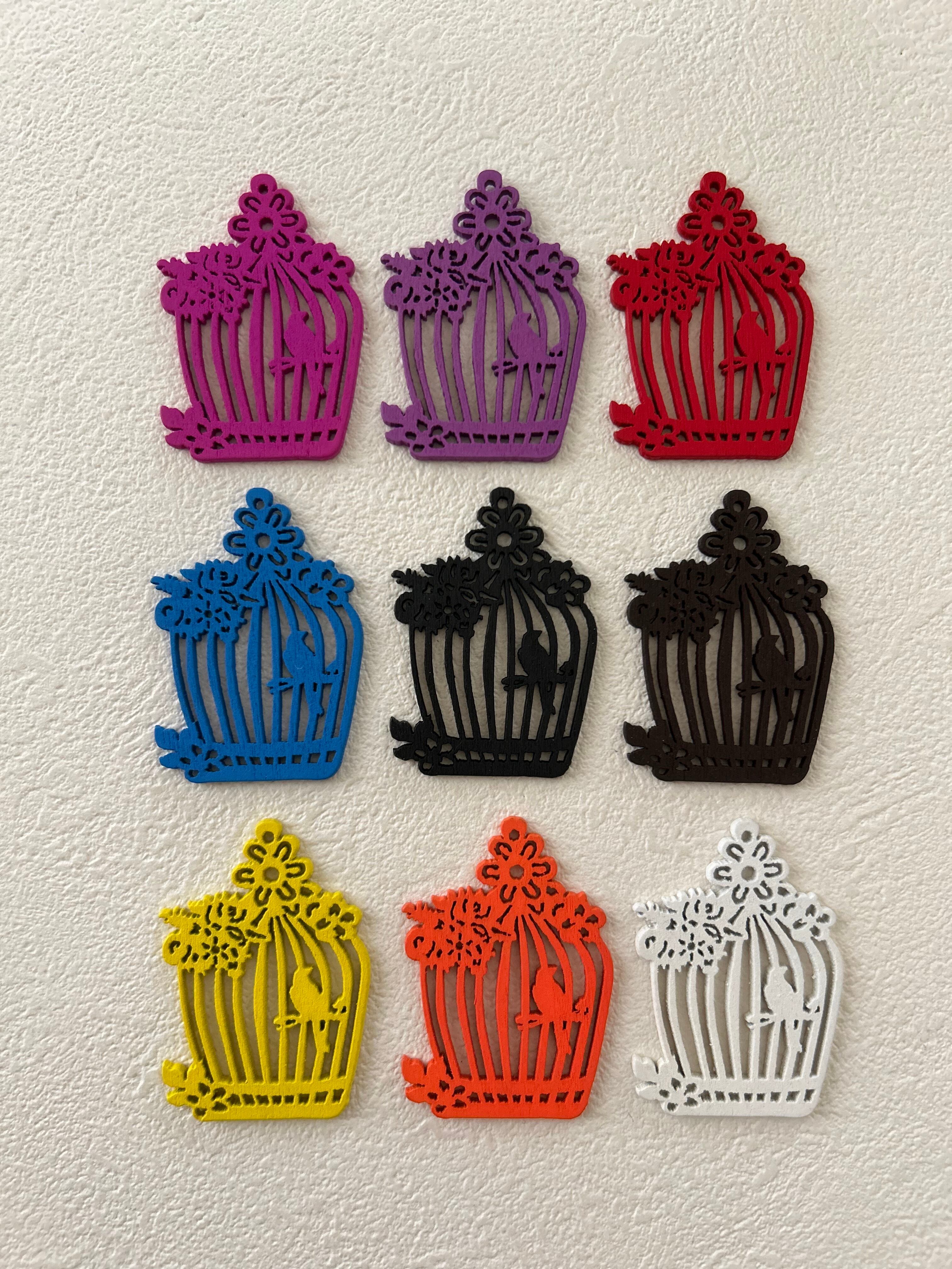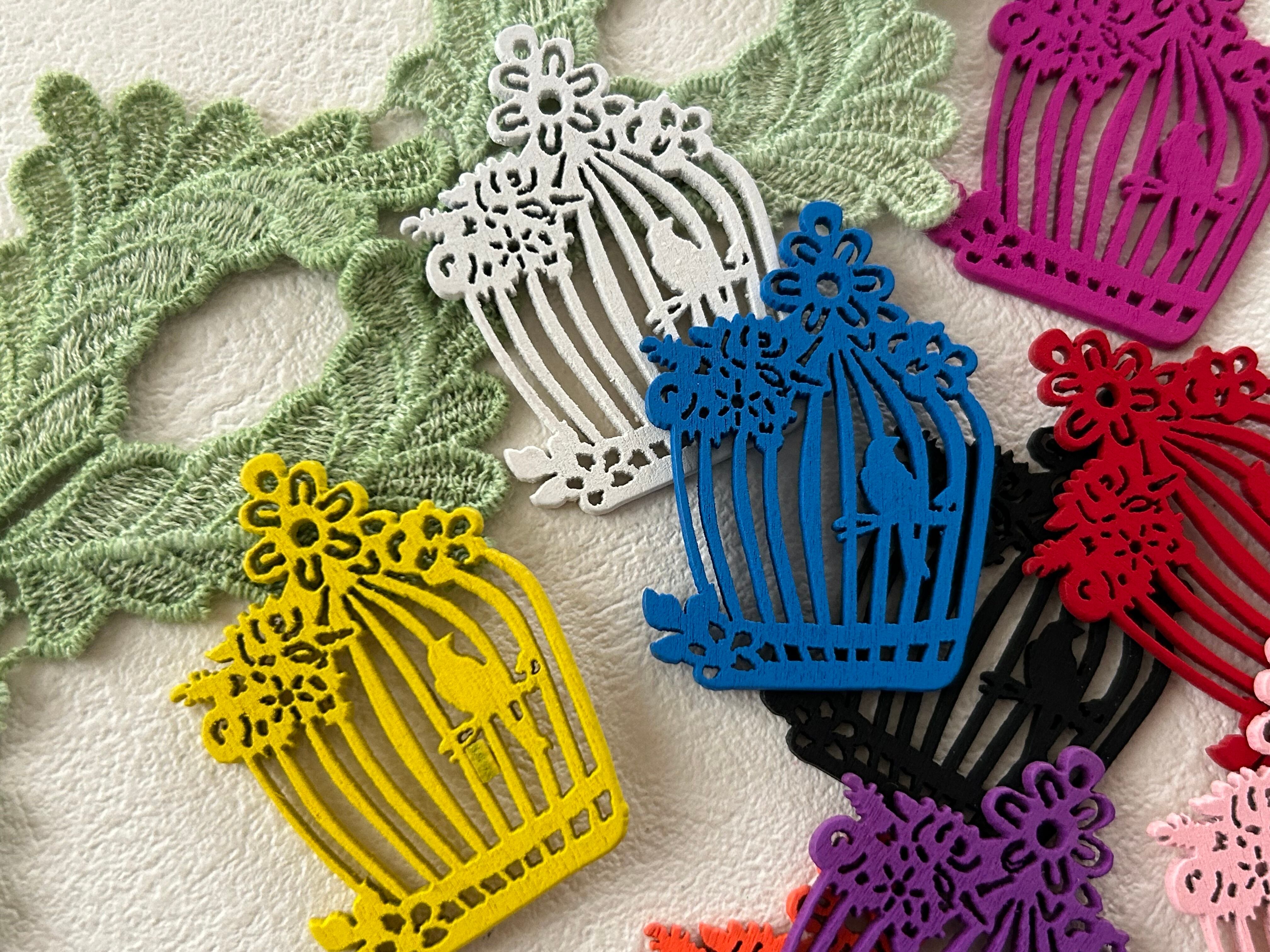 輸入デザインパーツ 木製 バードゲージと小鳥 全9色 アクセサリーパーツ ラッピング小物 デコレーション材 撮影小物