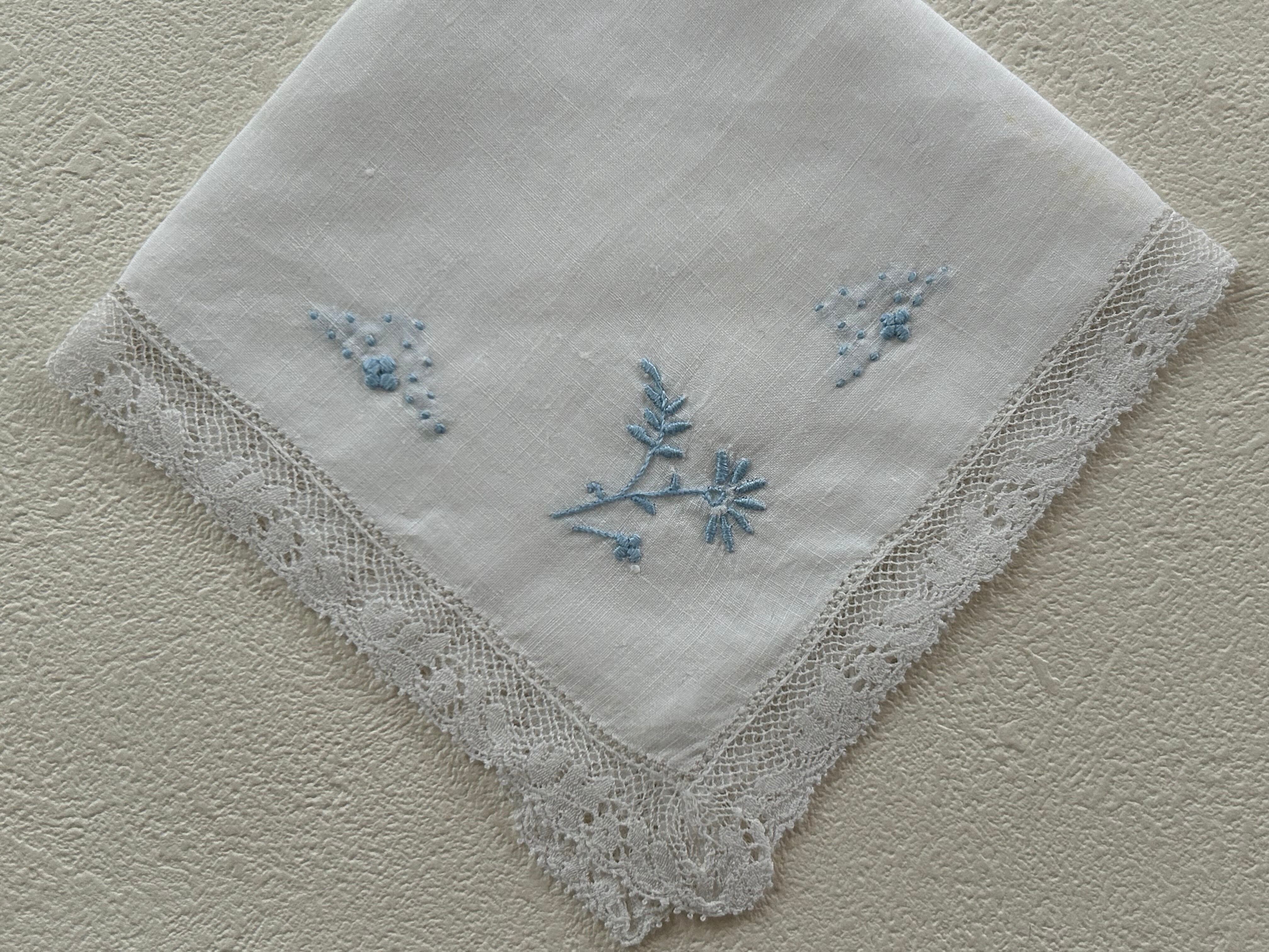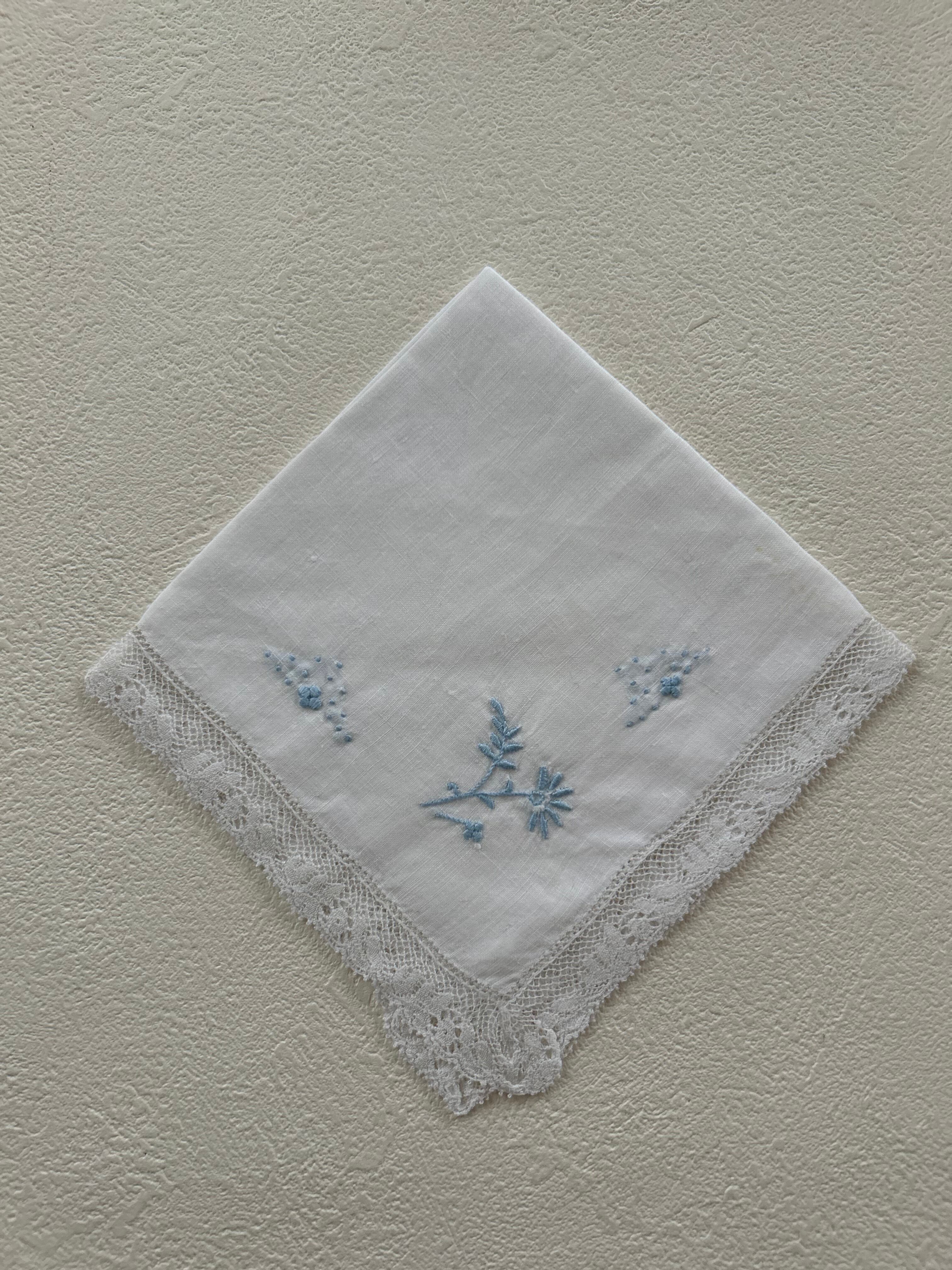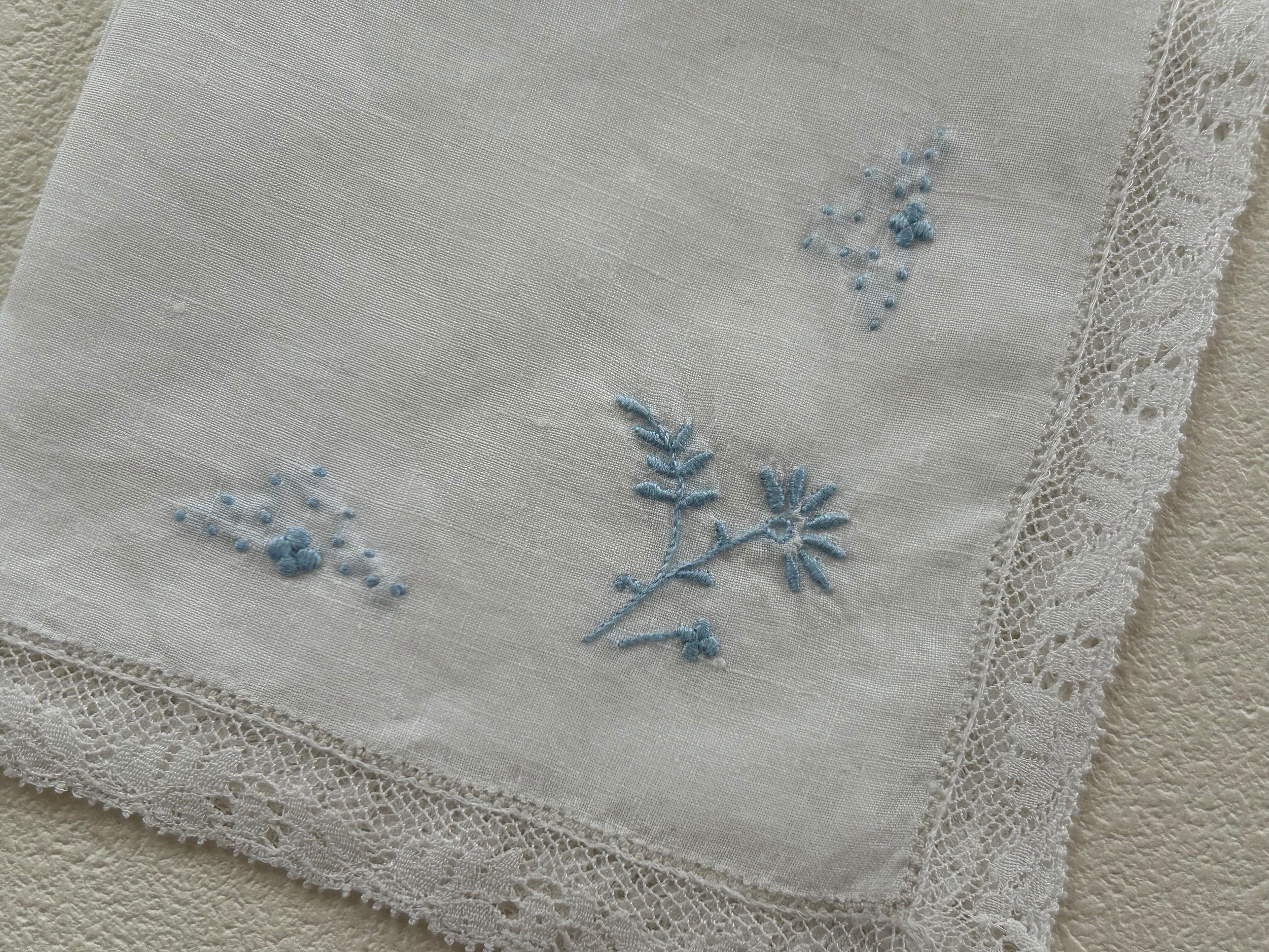 淡い水色の小花。手刺繍が施されたハンカチーフです。
