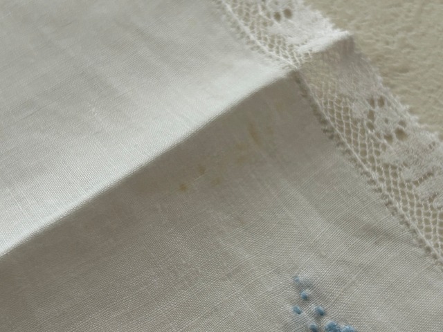 また、刺繍の上部にわずかな薄い汚れがございます。(画像)