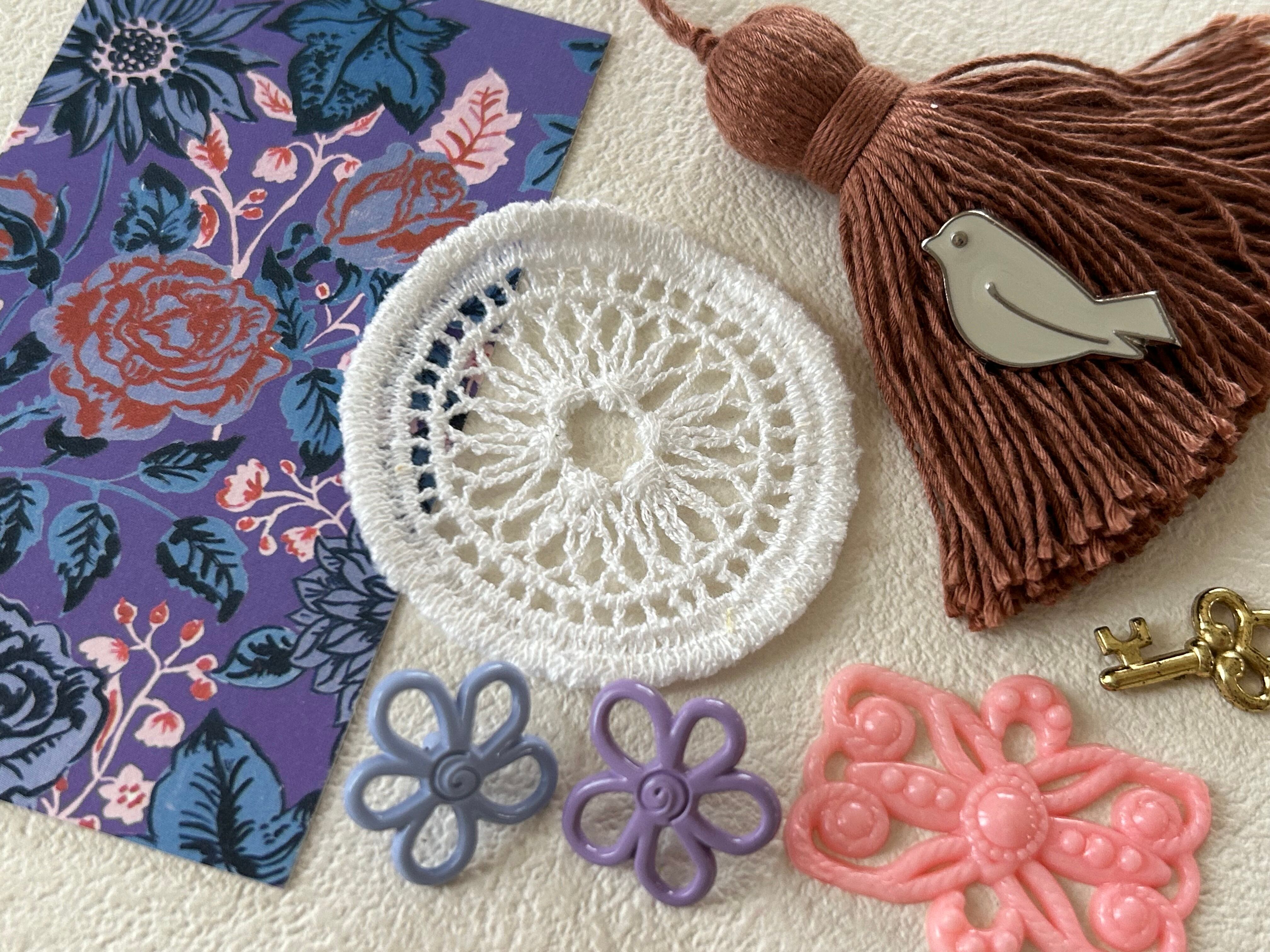フランスの小さなハンドメイド素材セット ⑥ ボタン パーツ タッセル モチーフ他 ナタリーレテ ミニカード付 プレゼントにも