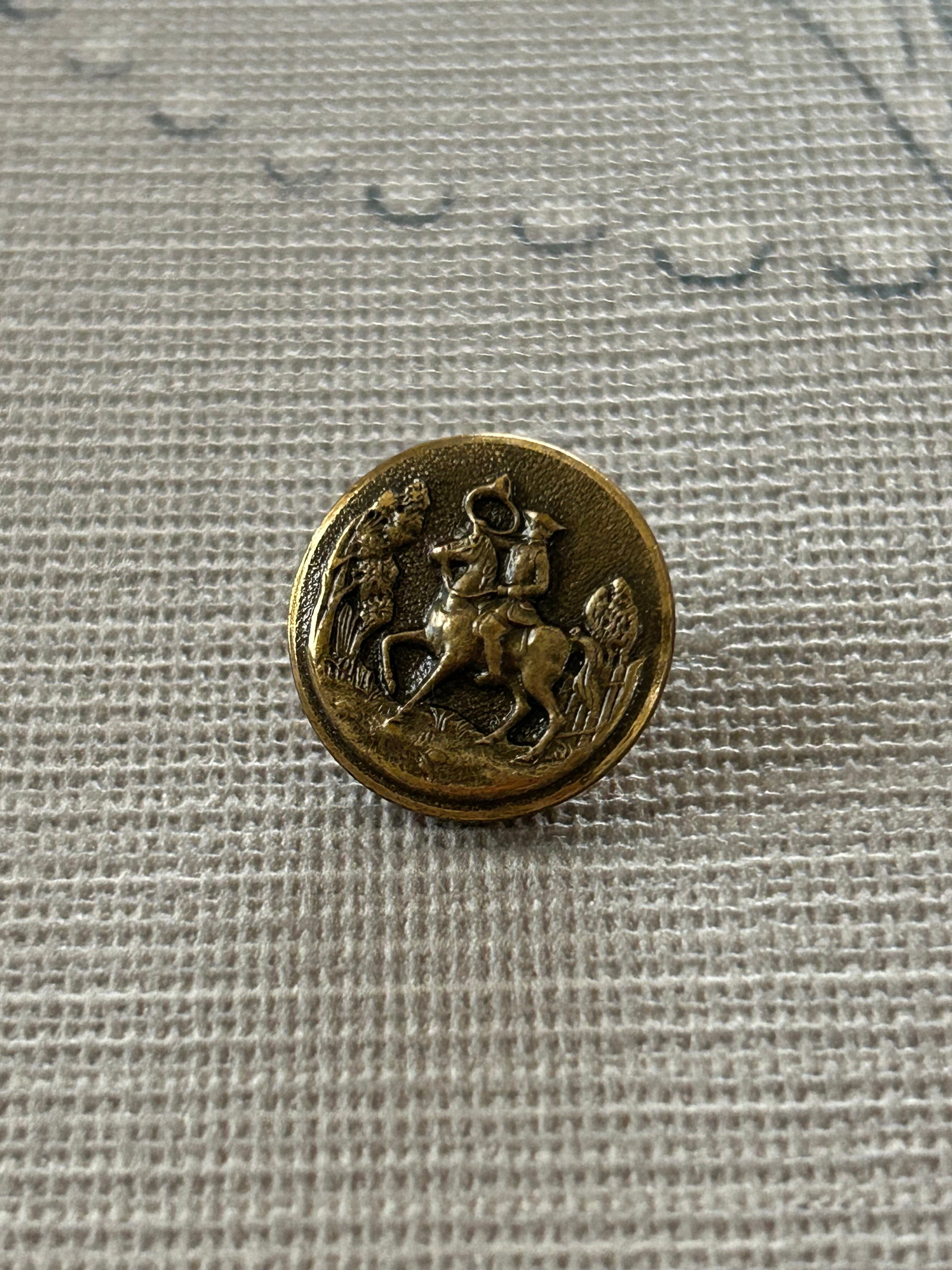 ハンティングのシーンのエンボス柄がクラシカルなアンティークボタン。