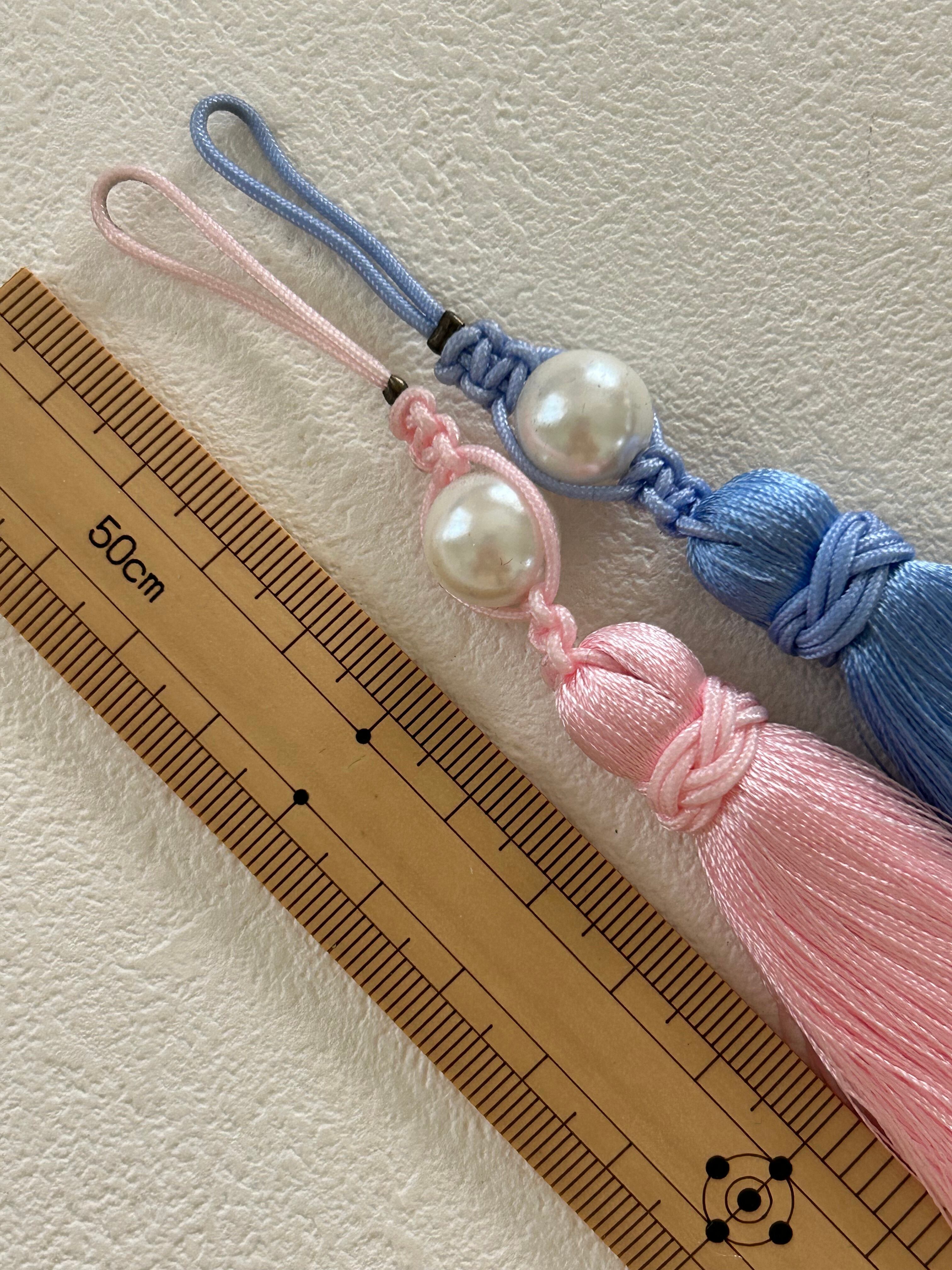 輸入デザインタッセル パールビーズ ピンク/ブルー カルトナージュ チャーム アクセサリーパーツ インテリアタッセル