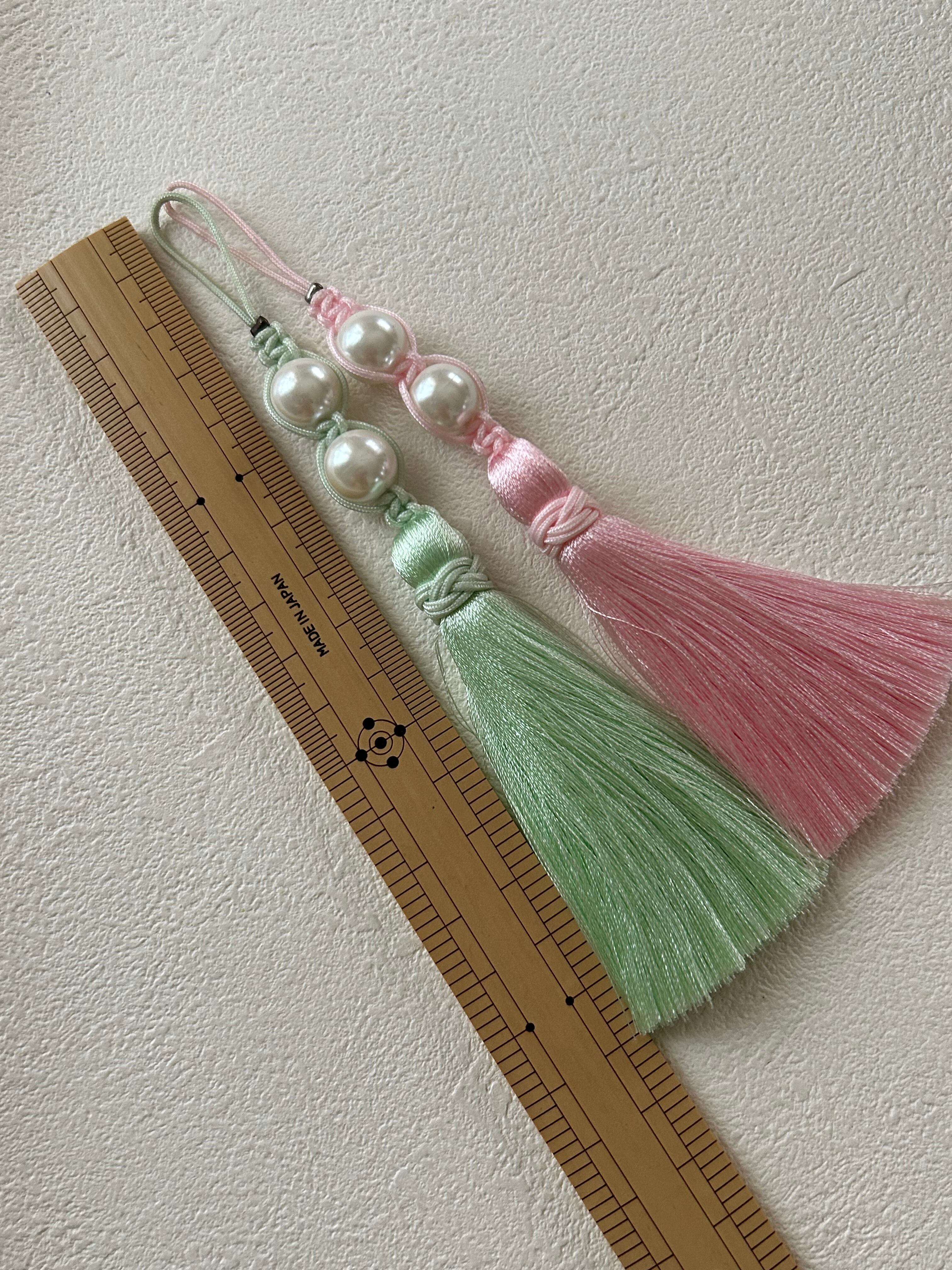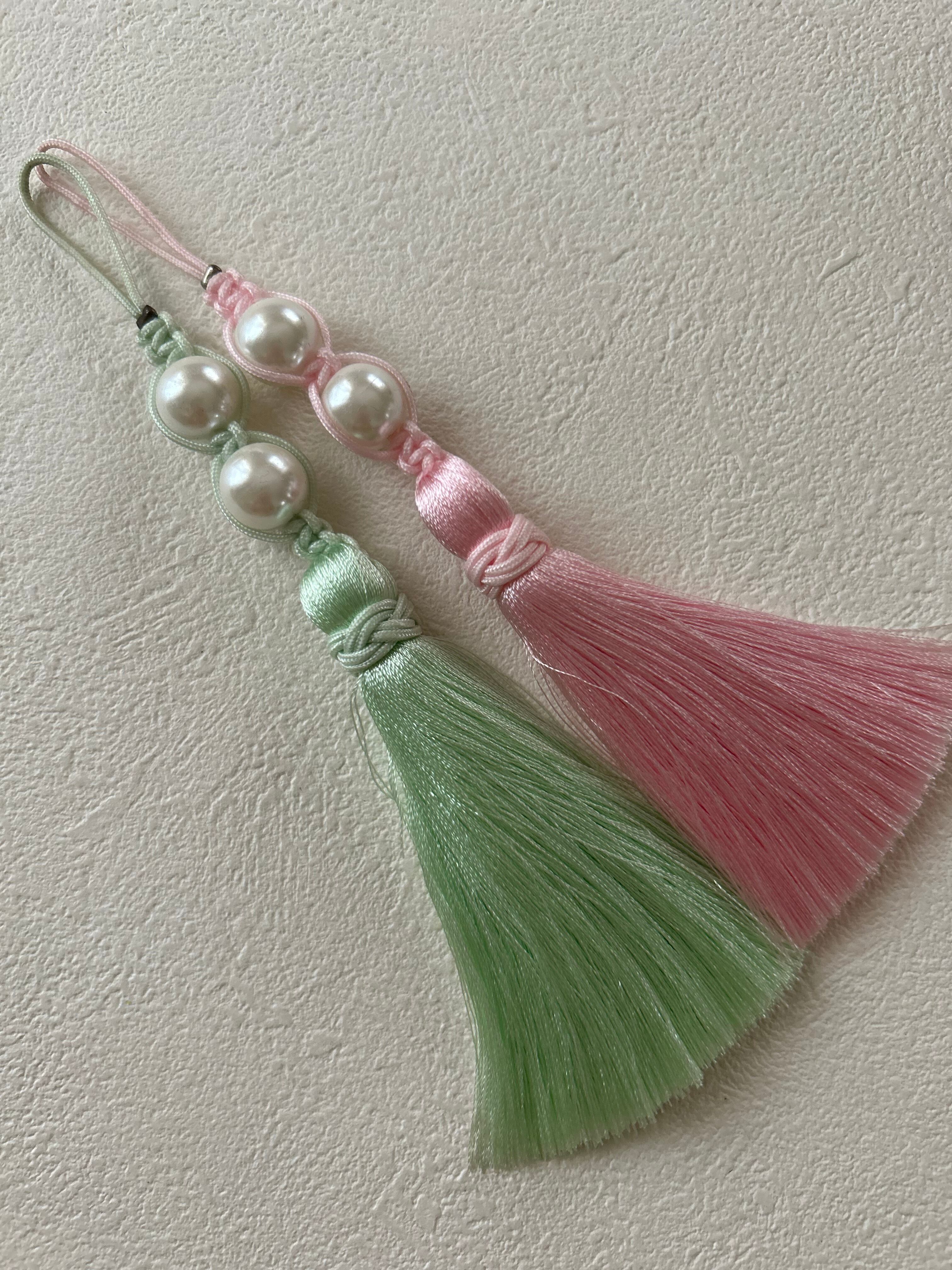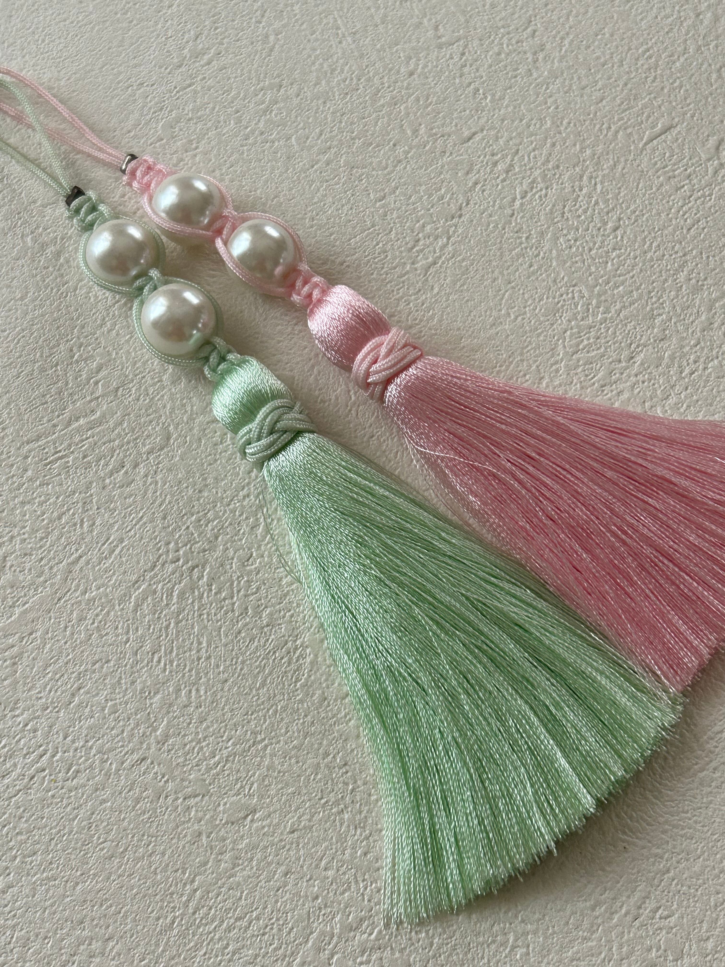 輸入デザインタッセル パールビーズ ピンク/ペパーミントグリーン 13cm カルトナージュ チャーム アクセサリーパーツ インテリアタッセル
