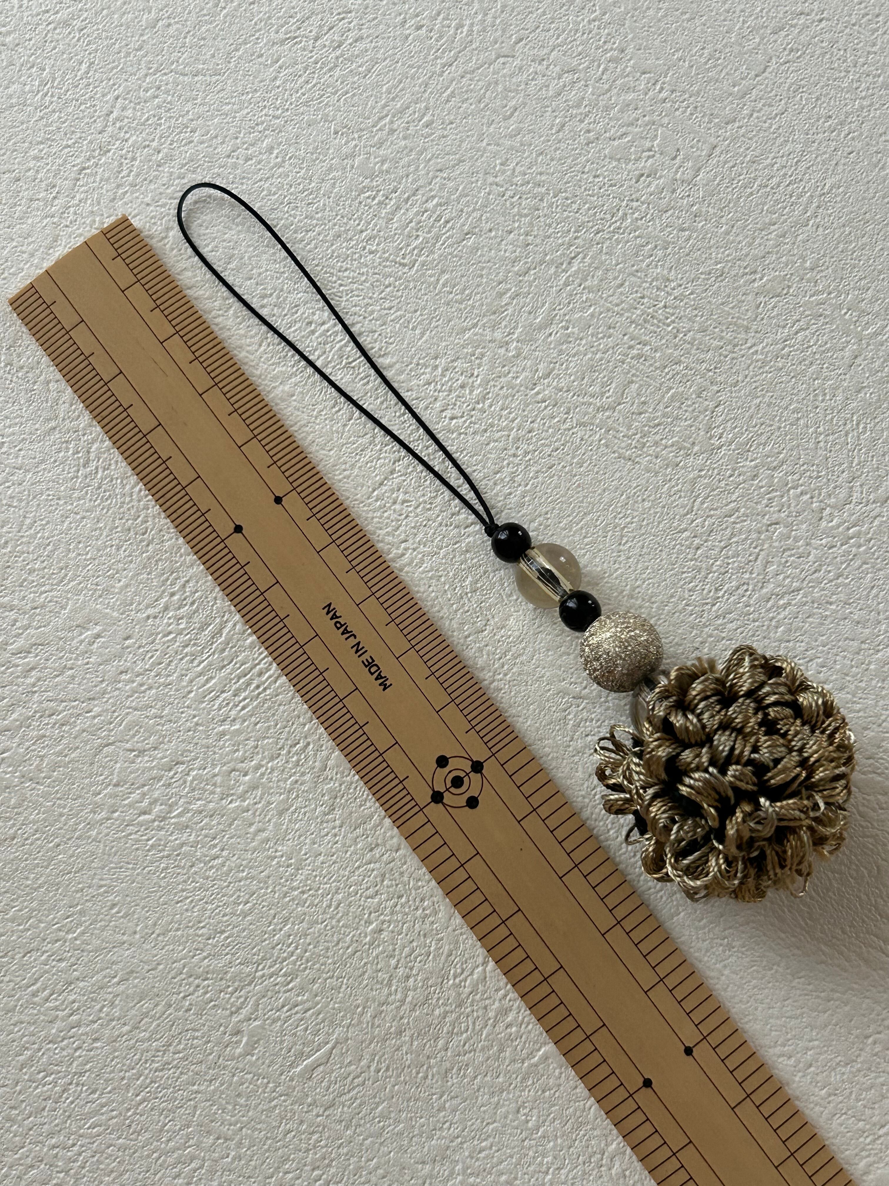 輸入デザインタッセル プードルタッセル ブラック×ゴールドベージュ カルトナージュ インテリア デコレーション材 チャーム