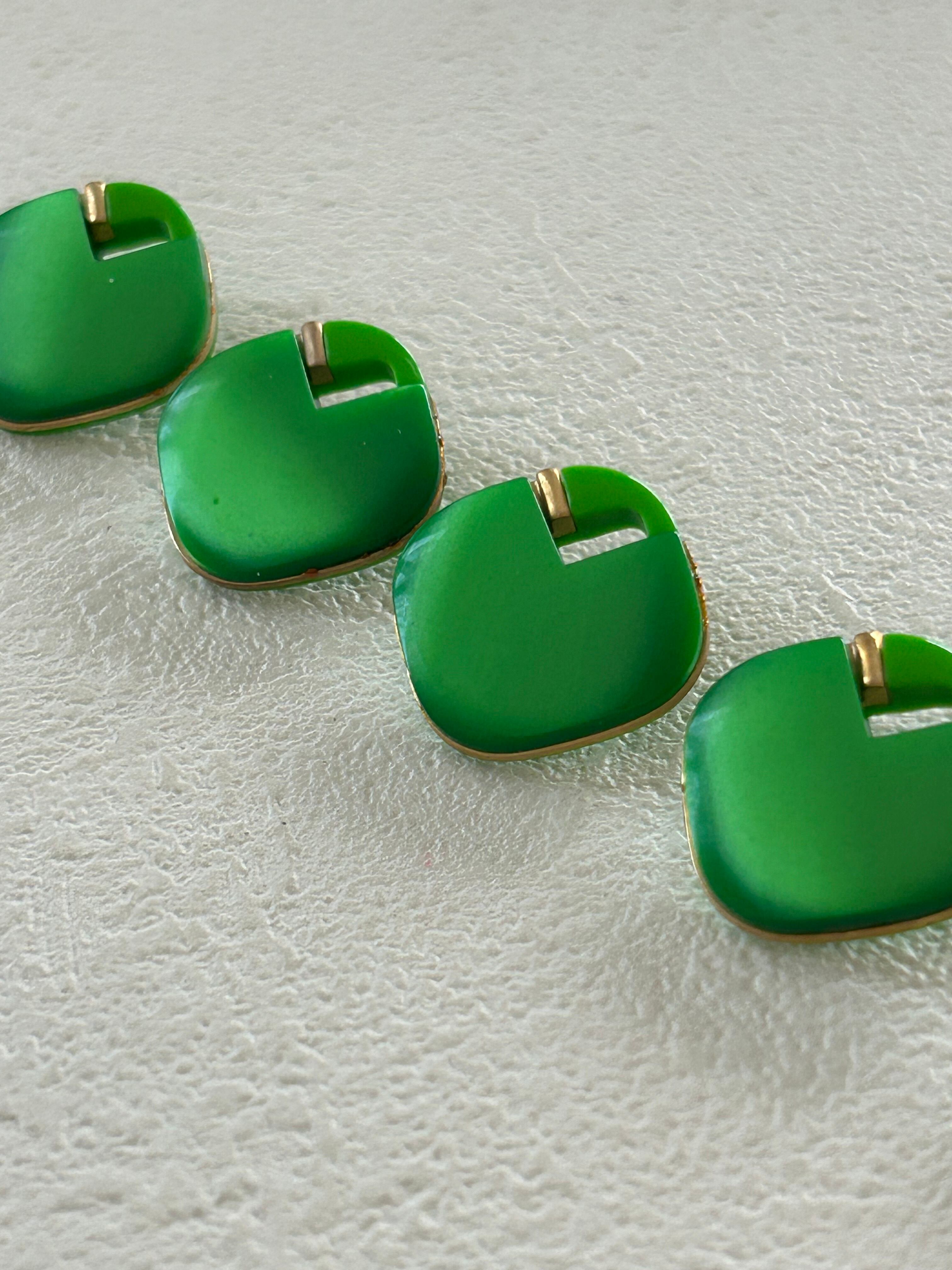 Japanese Vintage ボタン 角なしスクウェア グリーン 17mm 昭和レトロ アクセサリーパーツ 装飾材 カルトナージュ